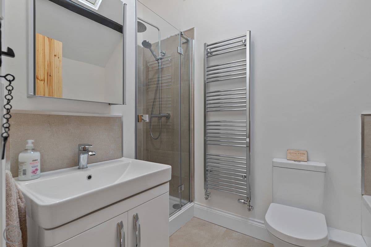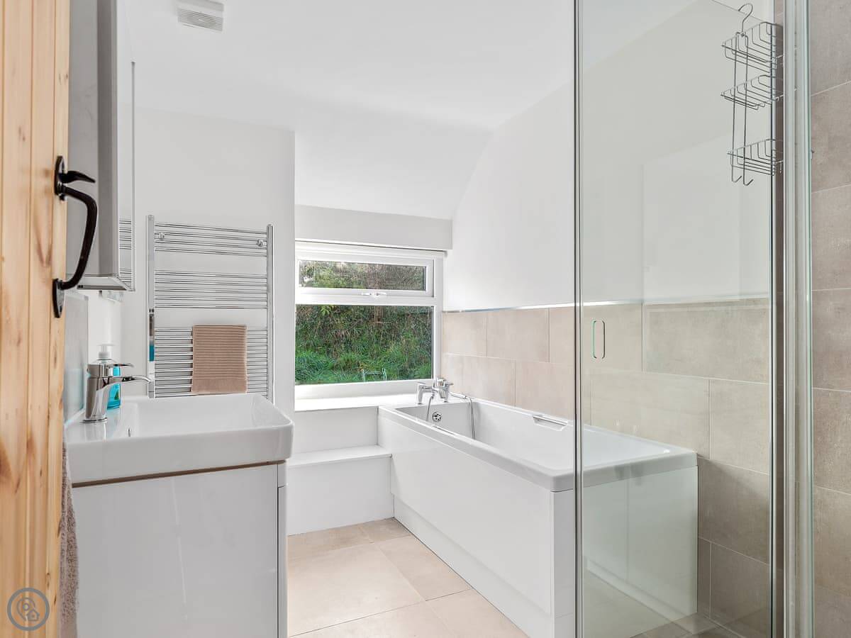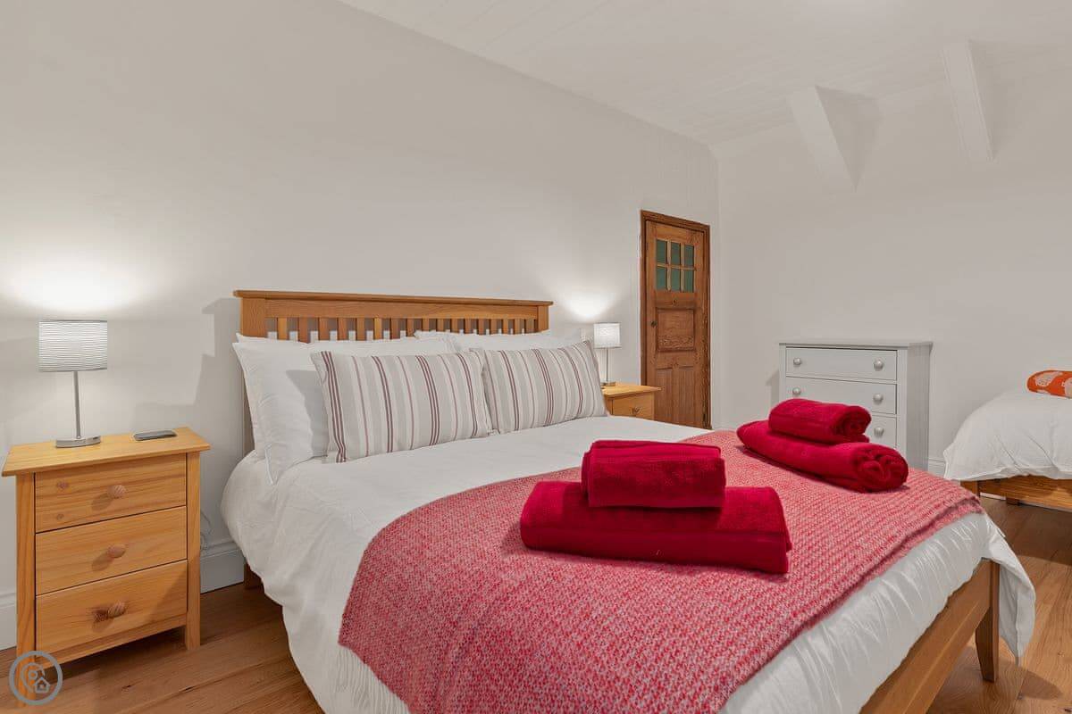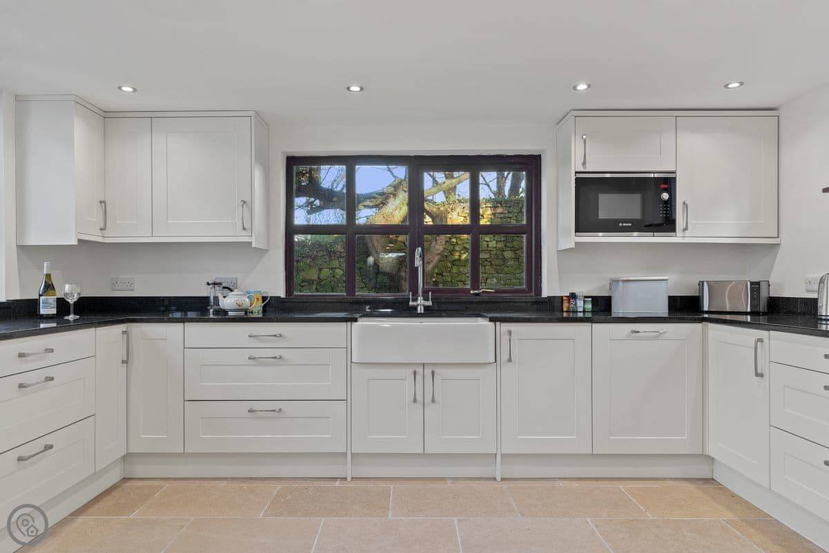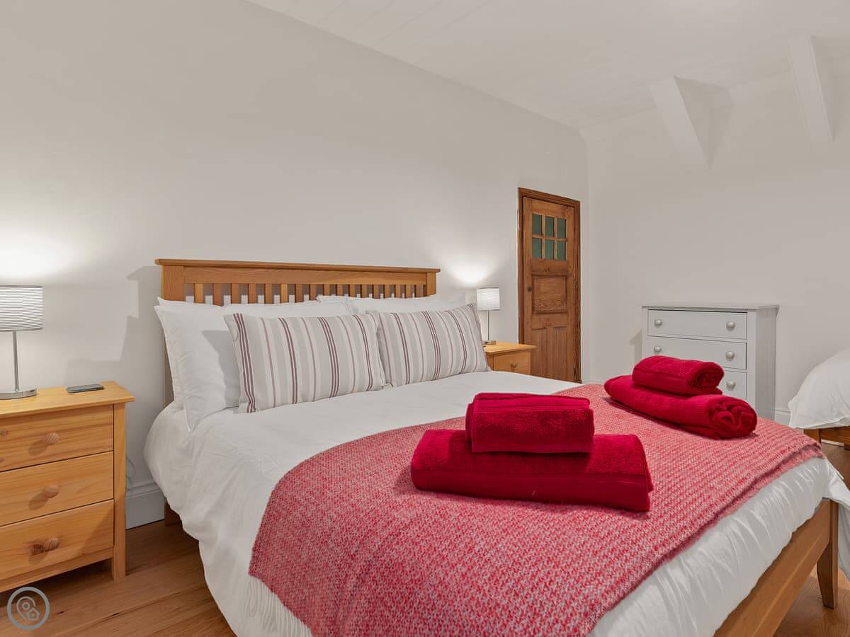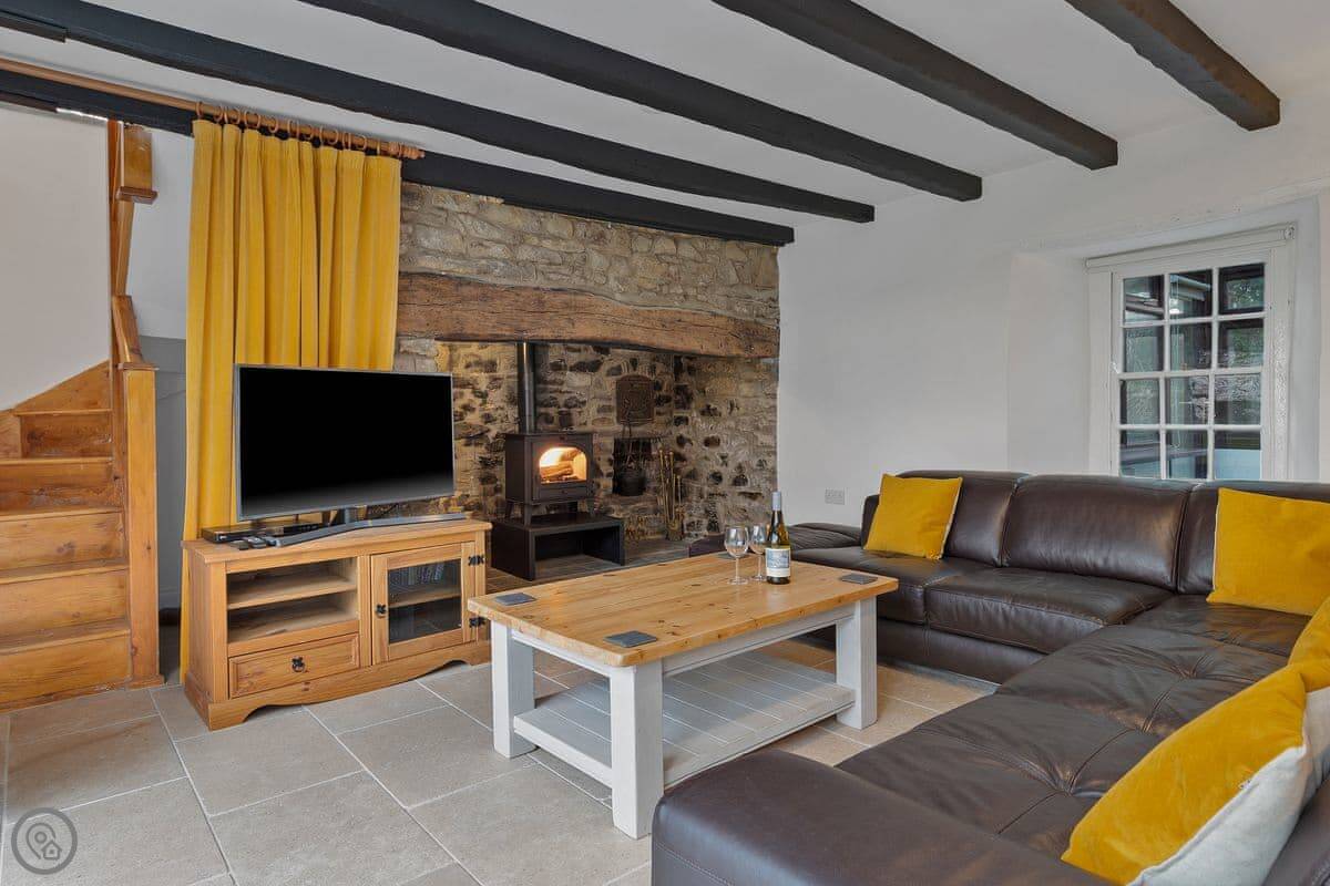 The kitchen is a decent size for cooking for everyone. It has a dishwasher and a washing machine. There's a wood burner in one of the living rooms. Bedding and towels are included. There's a cot and a highchair if you need them.