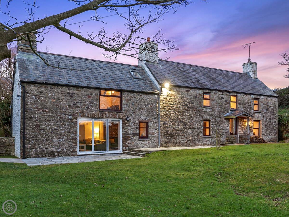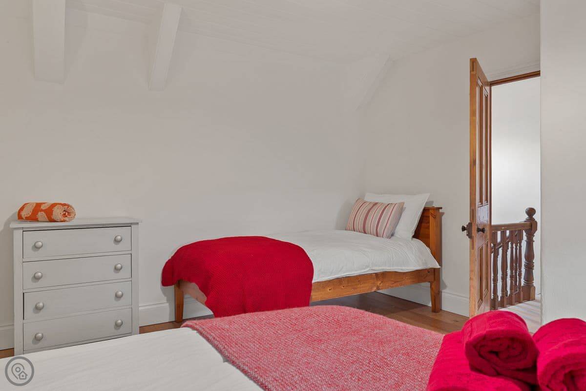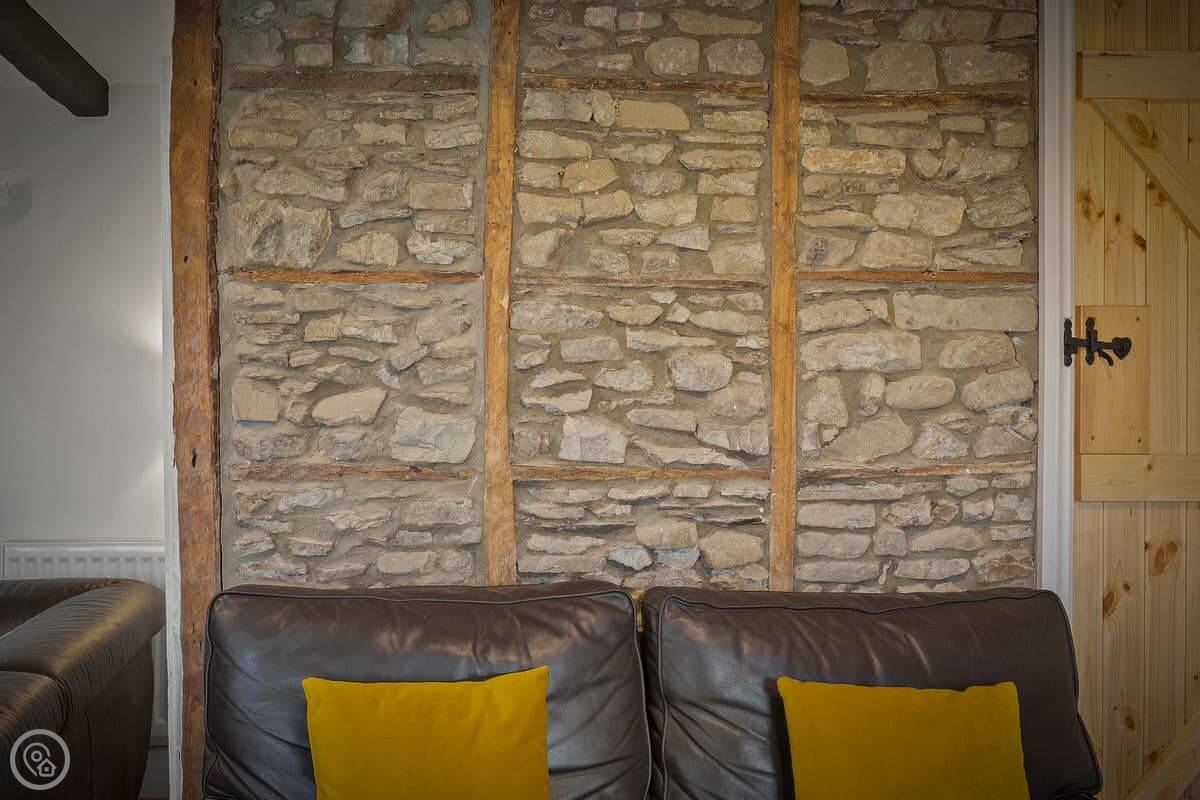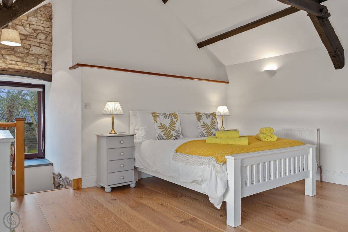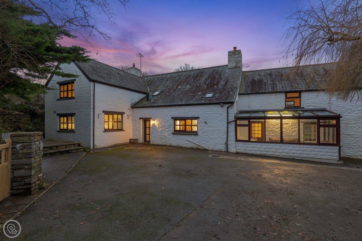 The house sleeps eleven, in five bedrooms. There are three bathrooms, one is ensuite to the main bedroom. It's got a 4 Star rating. The ceilings are beamed and quite high in some rooms. There are two living rooms and a conservatory, which is useful with a big group so people can spread out.