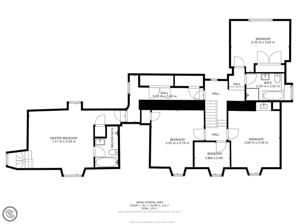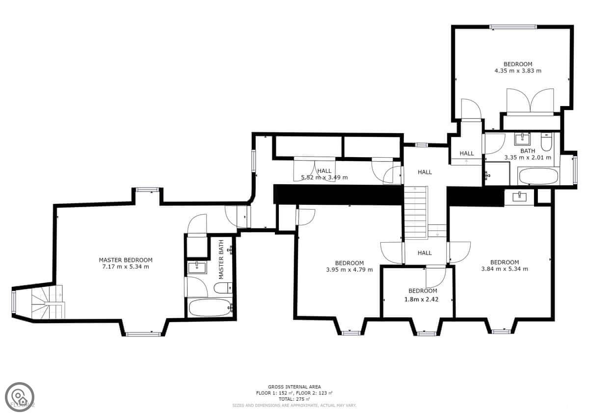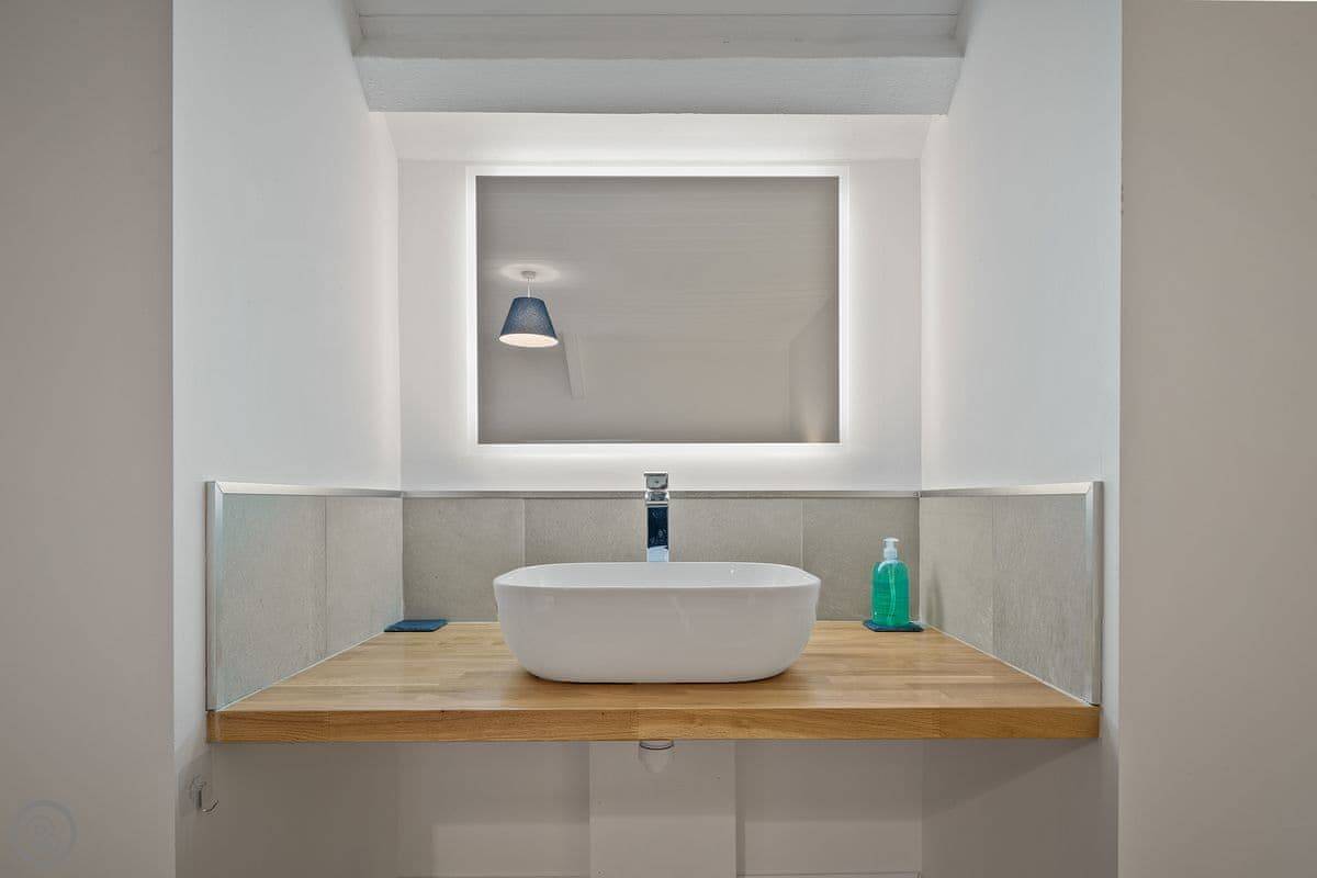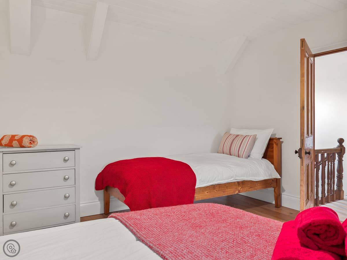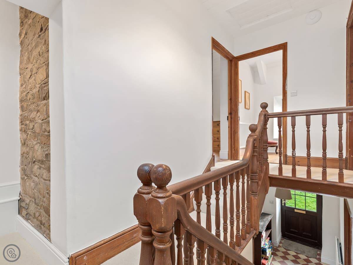 The house sleeps eleven, in five bedrooms. There are three bathrooms, one is ensuite to the main bedroom. It's got a 4 Star rating. The ceilings are beamed and quite high in some rooms. There are two living rooms and a conservatory, which is useful with a big group so people can spread out.