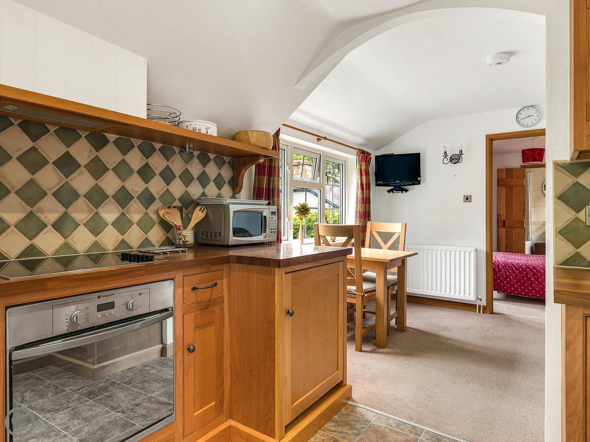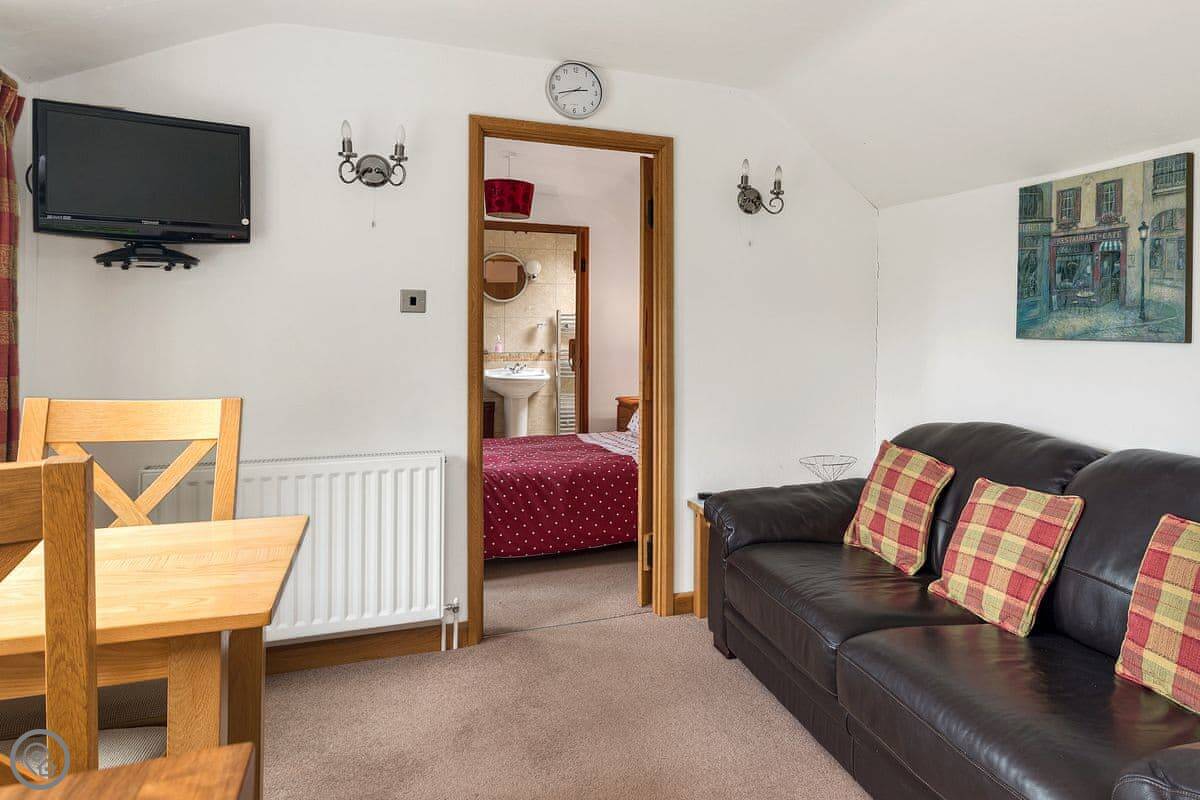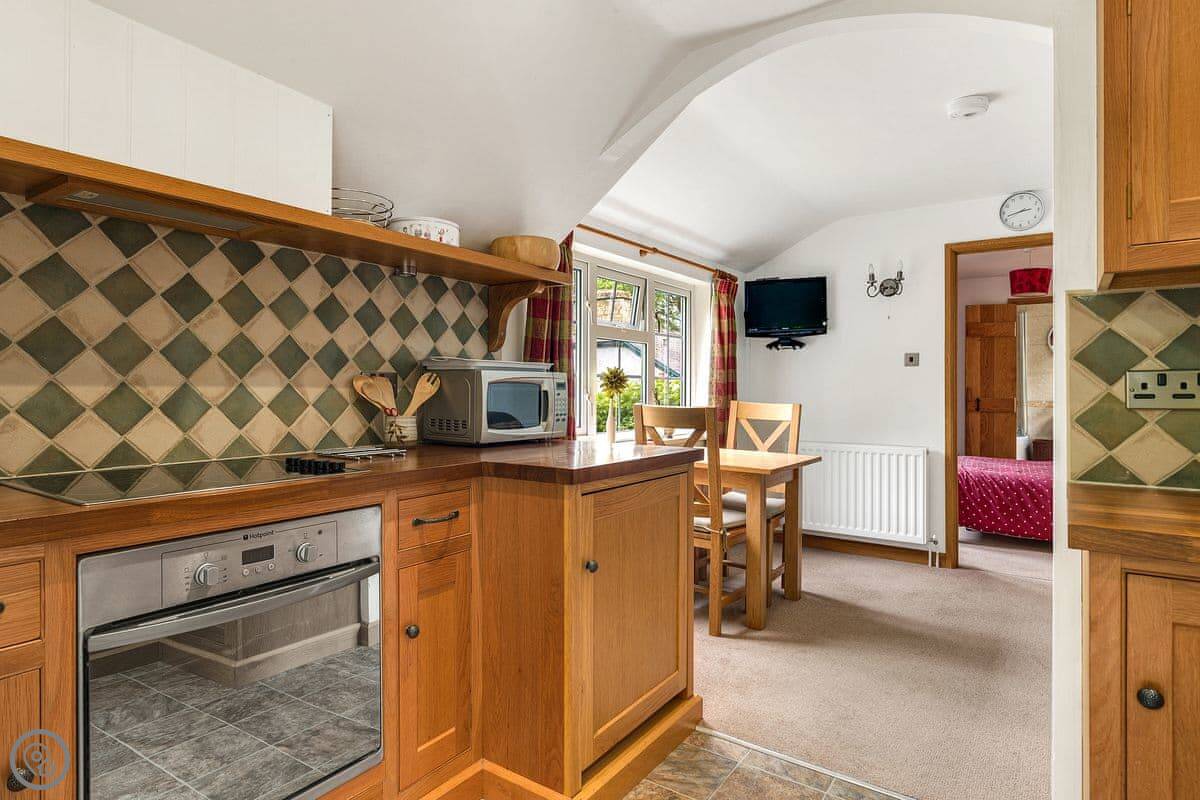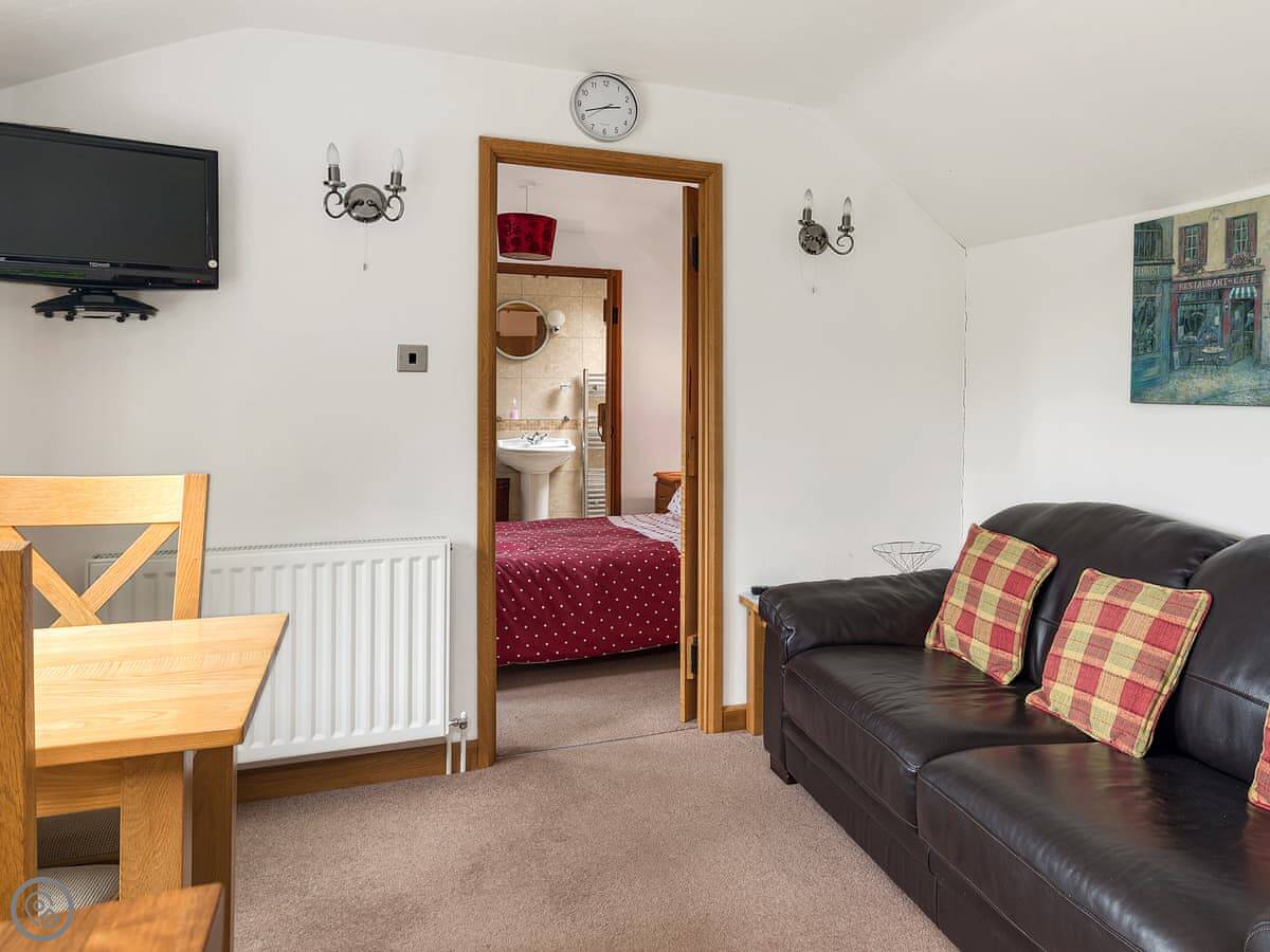 It's got a 4 Star rating. It's nice, not huge, but well put together. The main room is open plan with a kitchen. The bedroom has its own bathroom. There's a little balcony at the front with some honeysuckle on it.