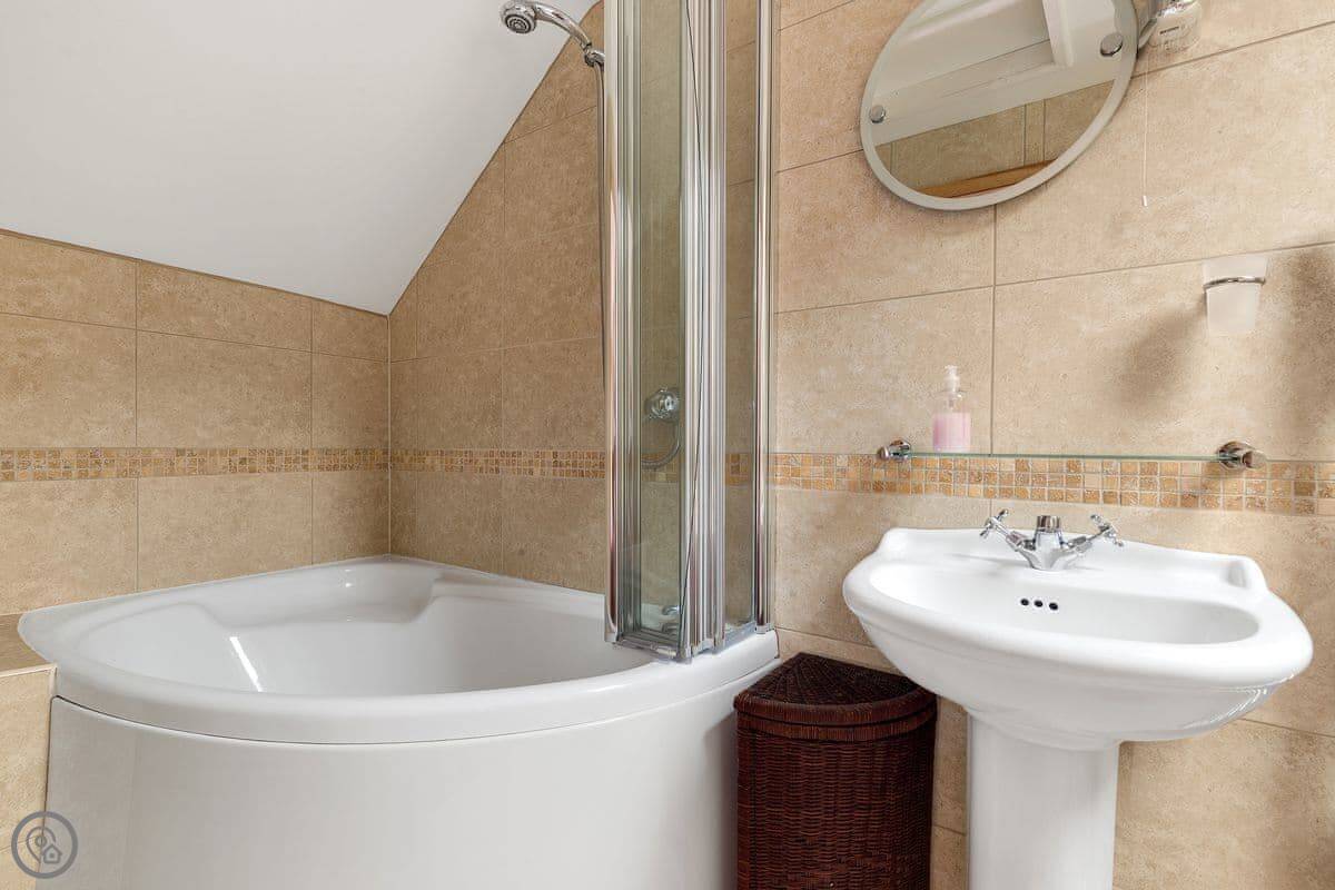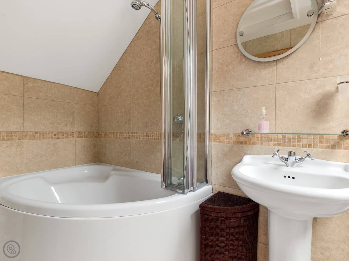 Inside, it's got what you'd expect: a washing machine, dishwasher, TV, and WiFi. Bedding is included. There's parking right outside. The garden bit is enclosed. It's also wheelchair accessible at the entrance.