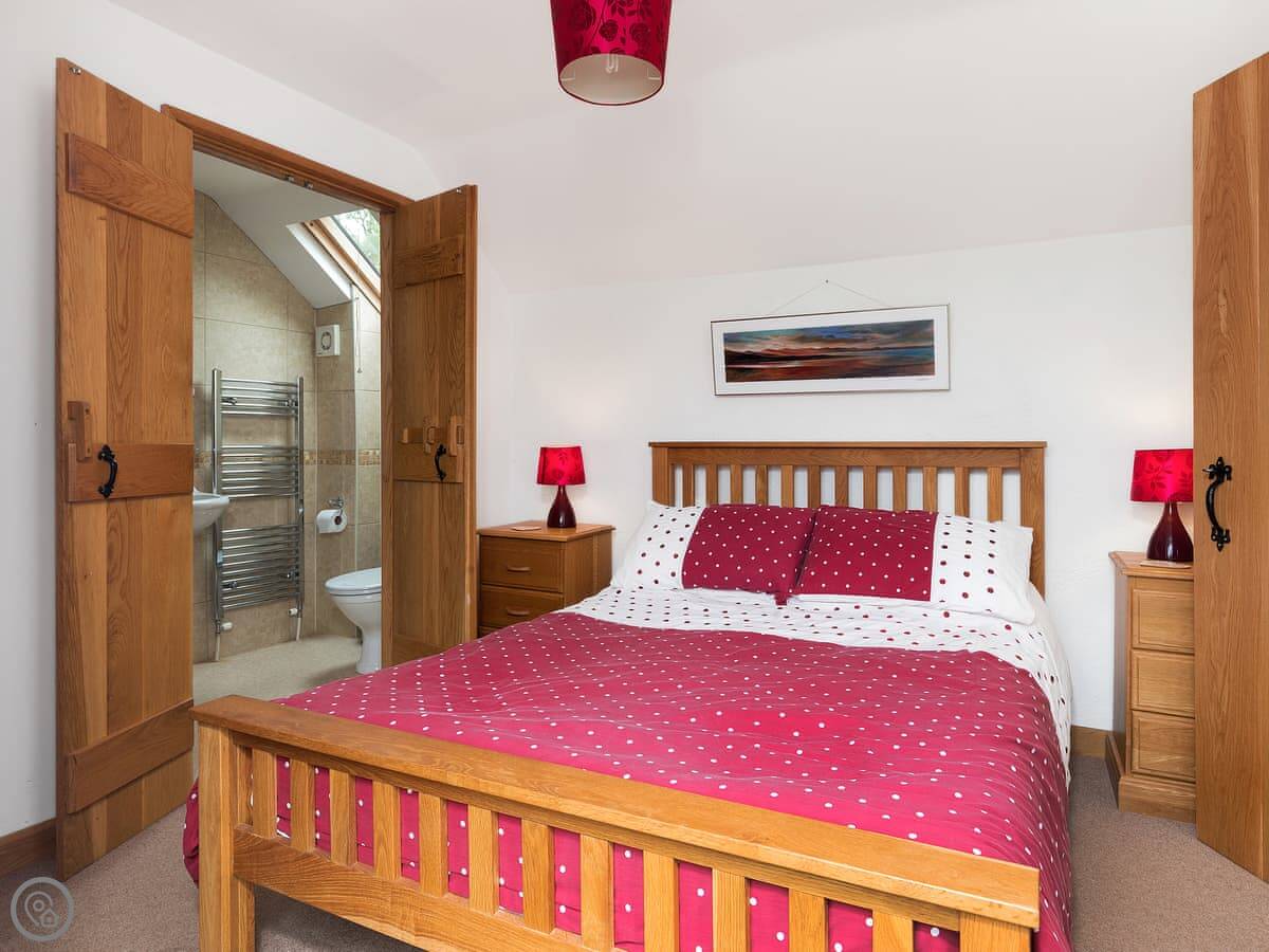 It's called Haybarn Cottage, up near Llwyndafydd. It's a one-bedroom place that sleeps two. It's part of a small group of cottages on an estate. You have your own space, but there are some shared grounds with gardens and a lake. The views from up there are good, over the valley.