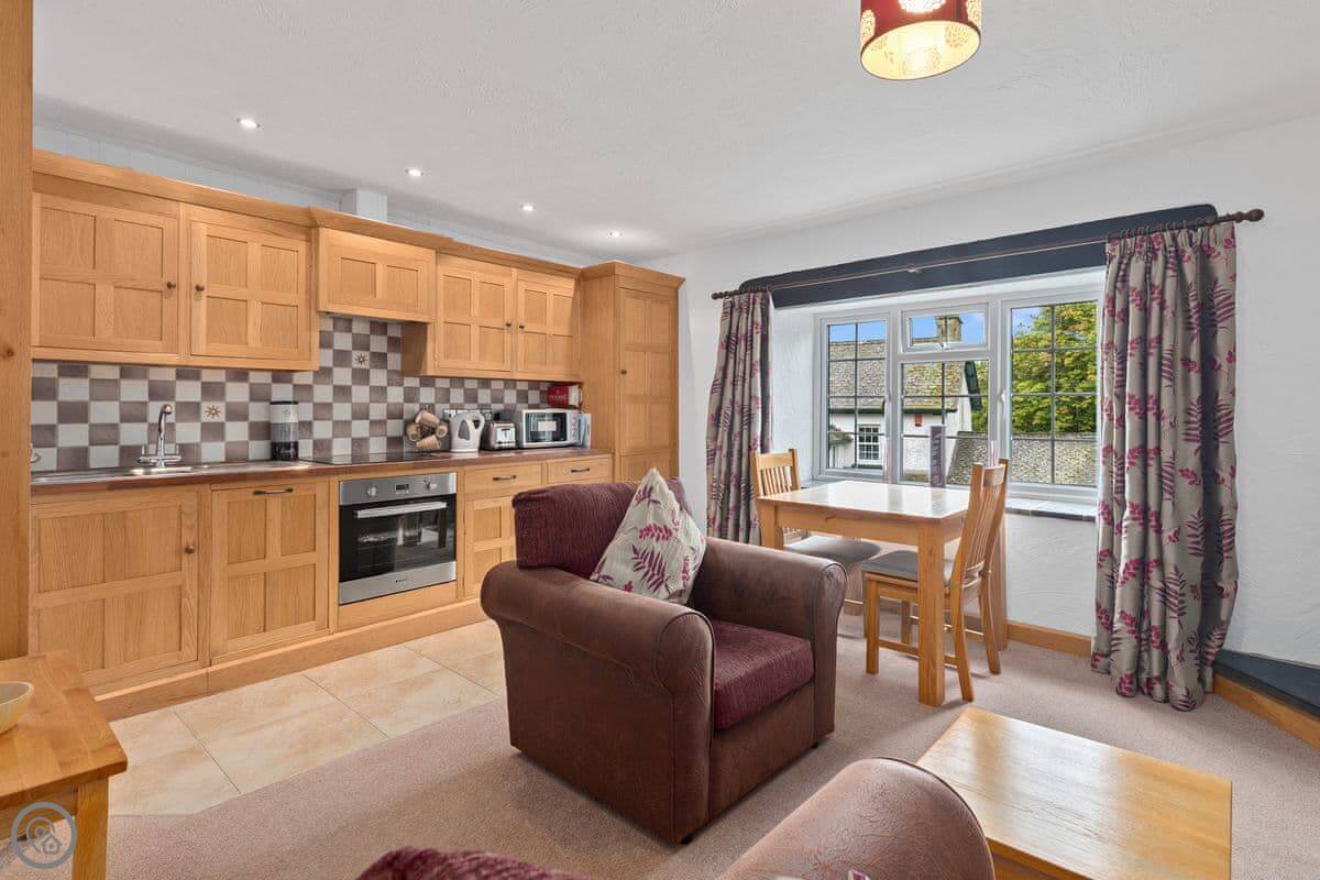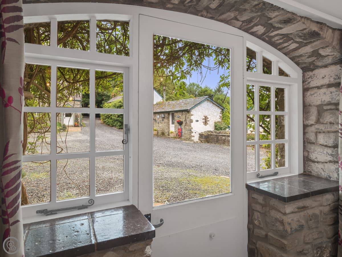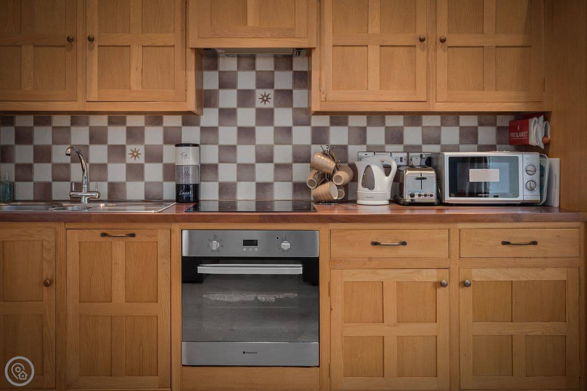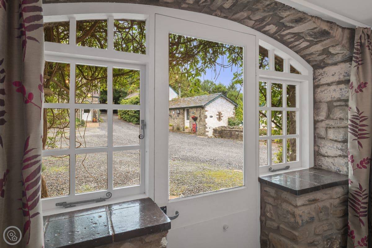 Inside, it's open plan. It has a washing machine, dishwasher, TV, and WiFi. Bedding is included. There's parking right outside. You can bring one well-behaved dog.