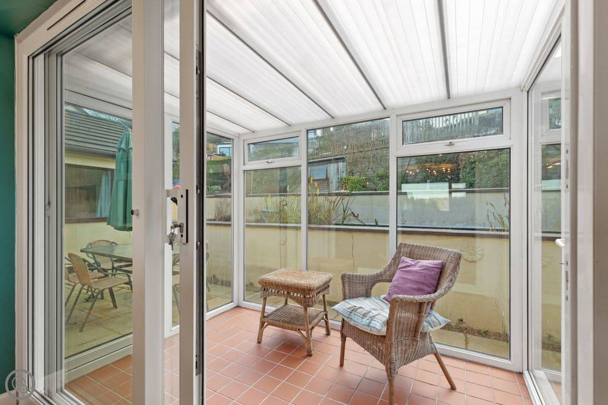 This pet-friendly home offers style, comfort and space and welcomes two dogs free of charge. There are three bedrooms, a master with kingsize bed and en-suite, a double and twin, providing ample space for six adults. The house benefits from a stylish newly fitted ensuite and family bathroom and a well-equipped kitchen to prepare the family meals. Spacious lounge with fire and two large sofas ideal to relax and unwind, with dining table, chairs and benefitting from a sunny conservatory in which to while away the hours with a book. Outside, discover a pretty, three-level patio garden with bistro seating, the space receives the afternoon and evening sun and is perfect for alfresco meals or relaxing as you unwind after an activity-filled day.