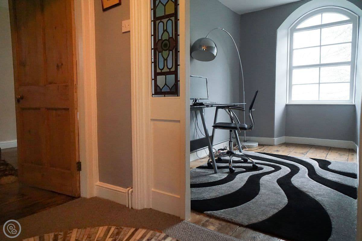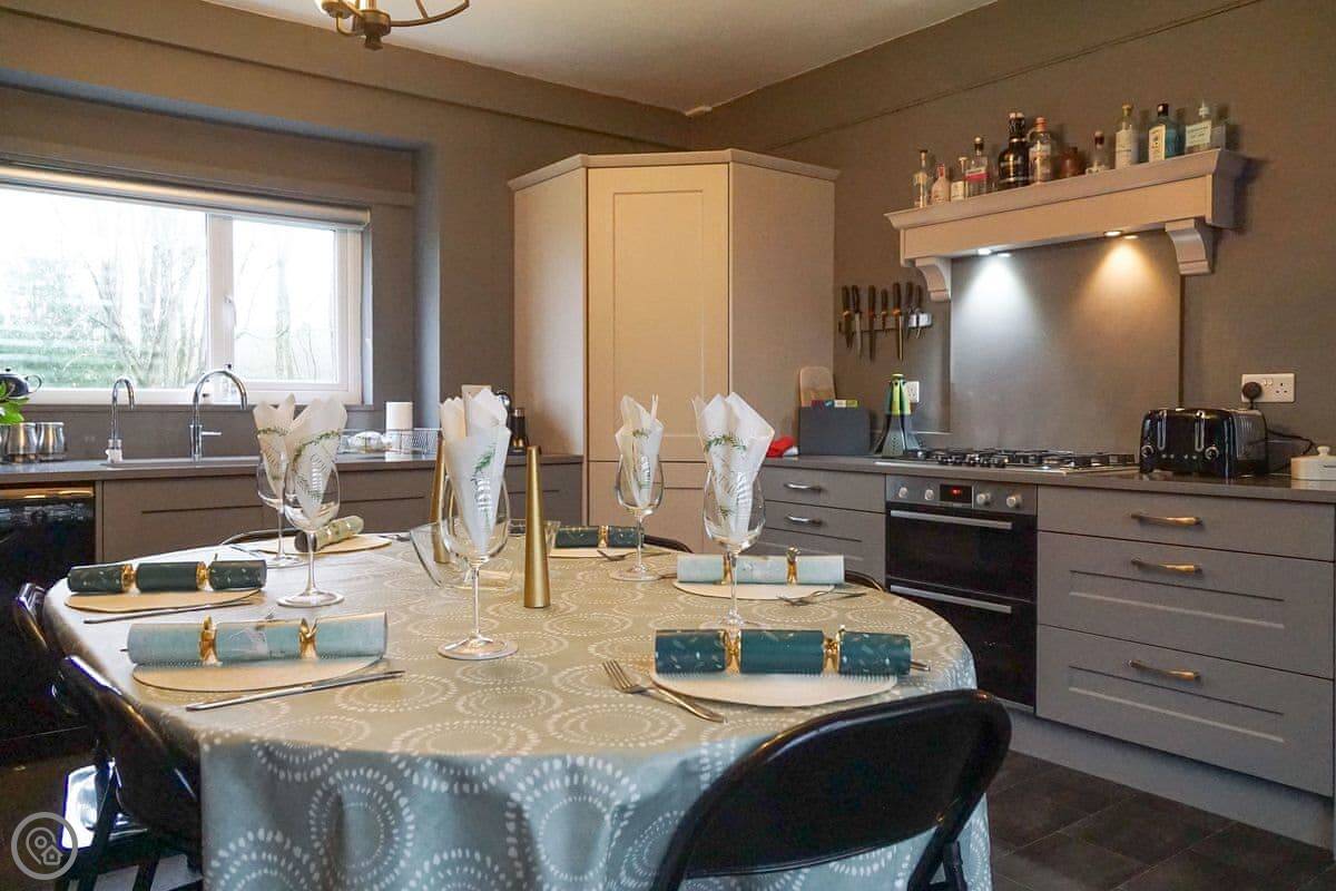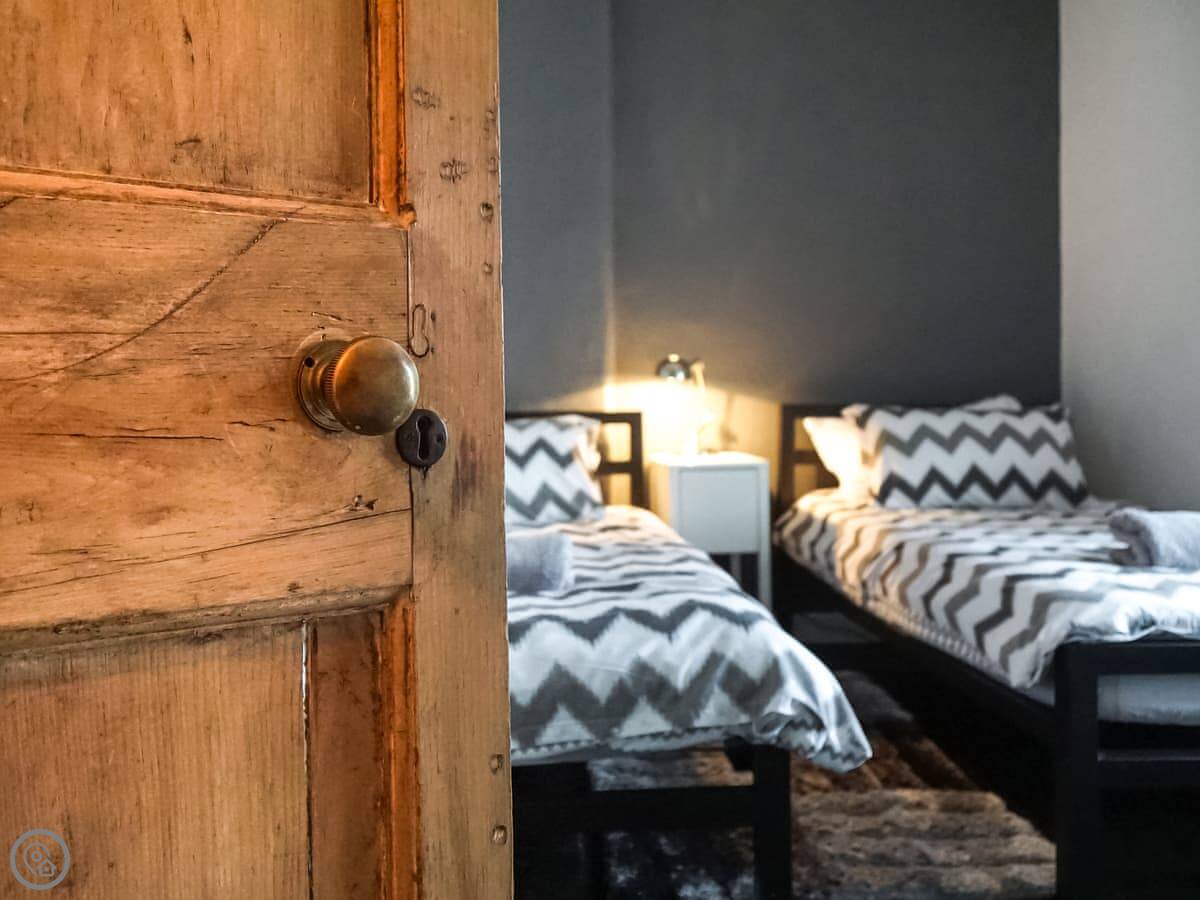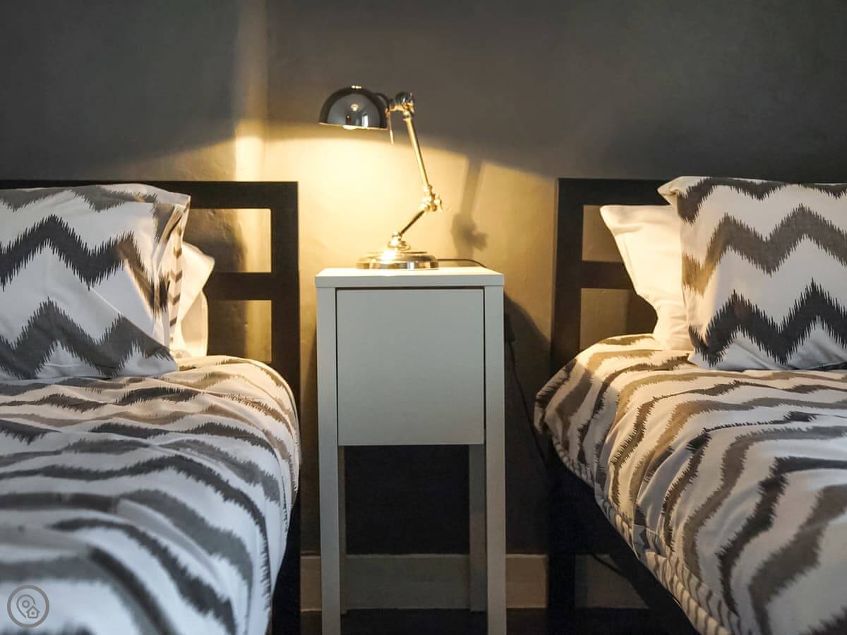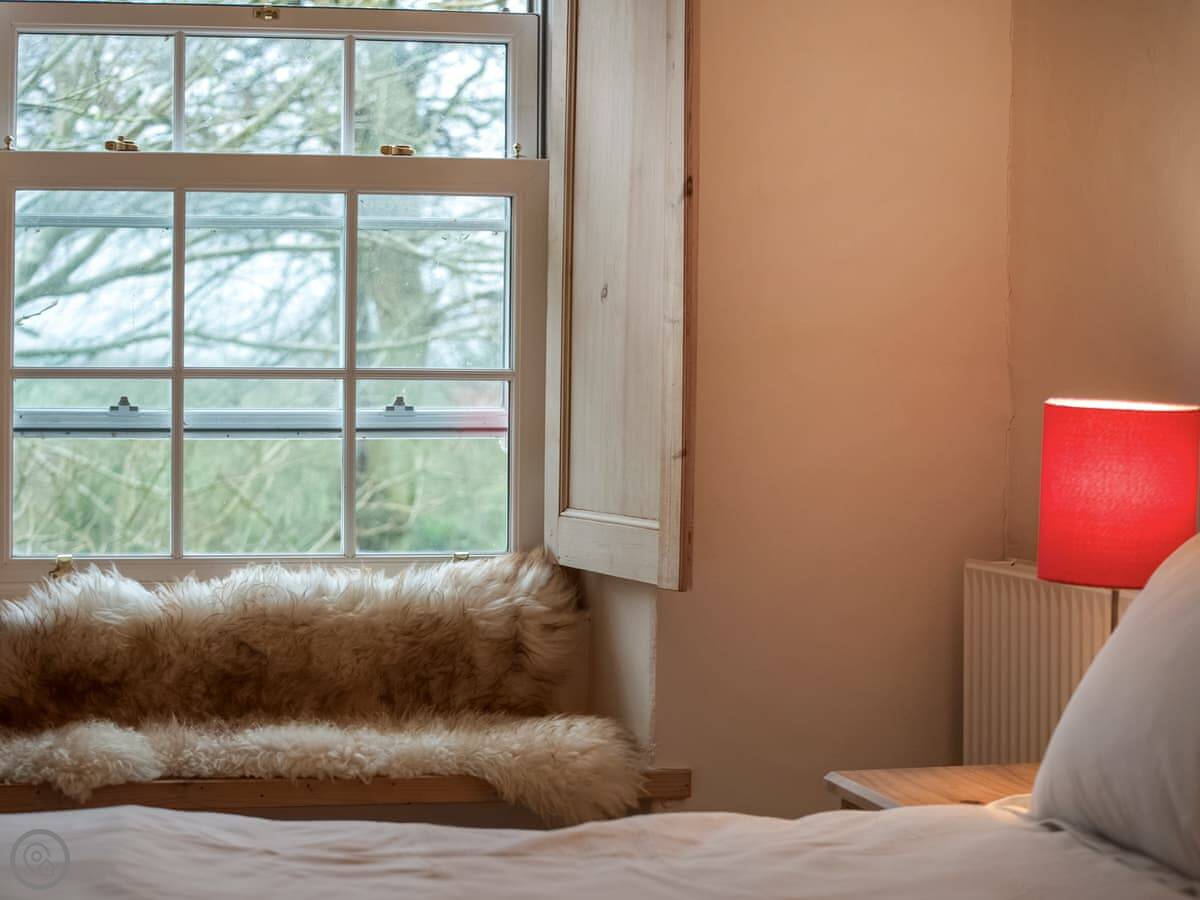 It’s got the basics: washing machine, dishwasher, wifi, TV. Bedding and towels are provided. Parking for a couple of cars right there. The entrance is step-free, so it works for wheelchairs or prams. Pets are welcome, up to two.