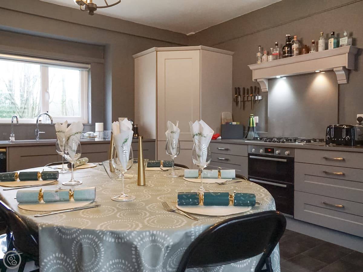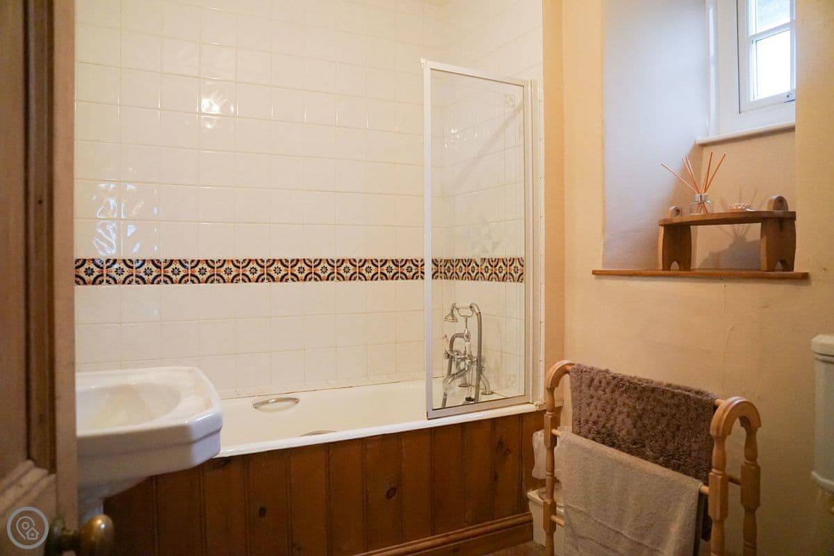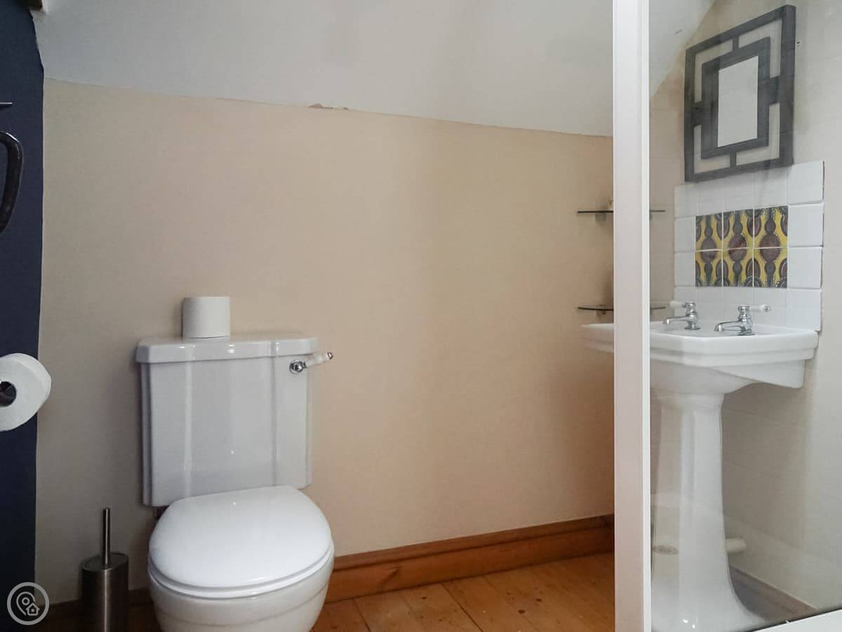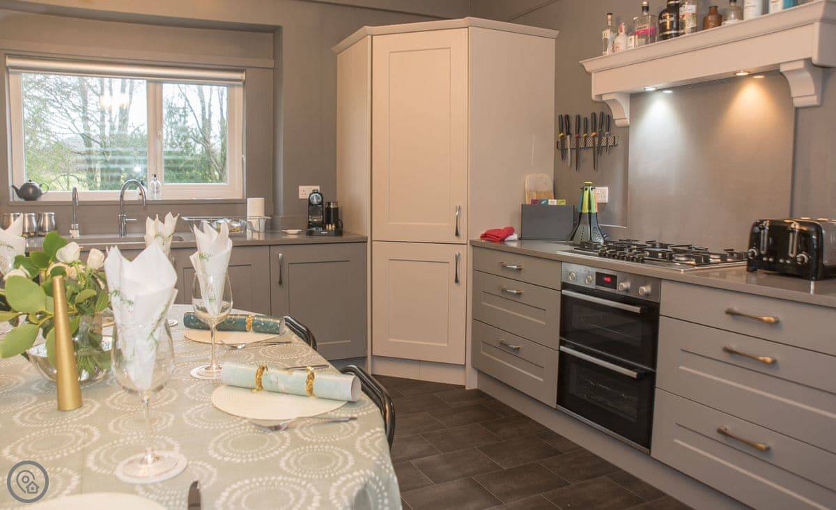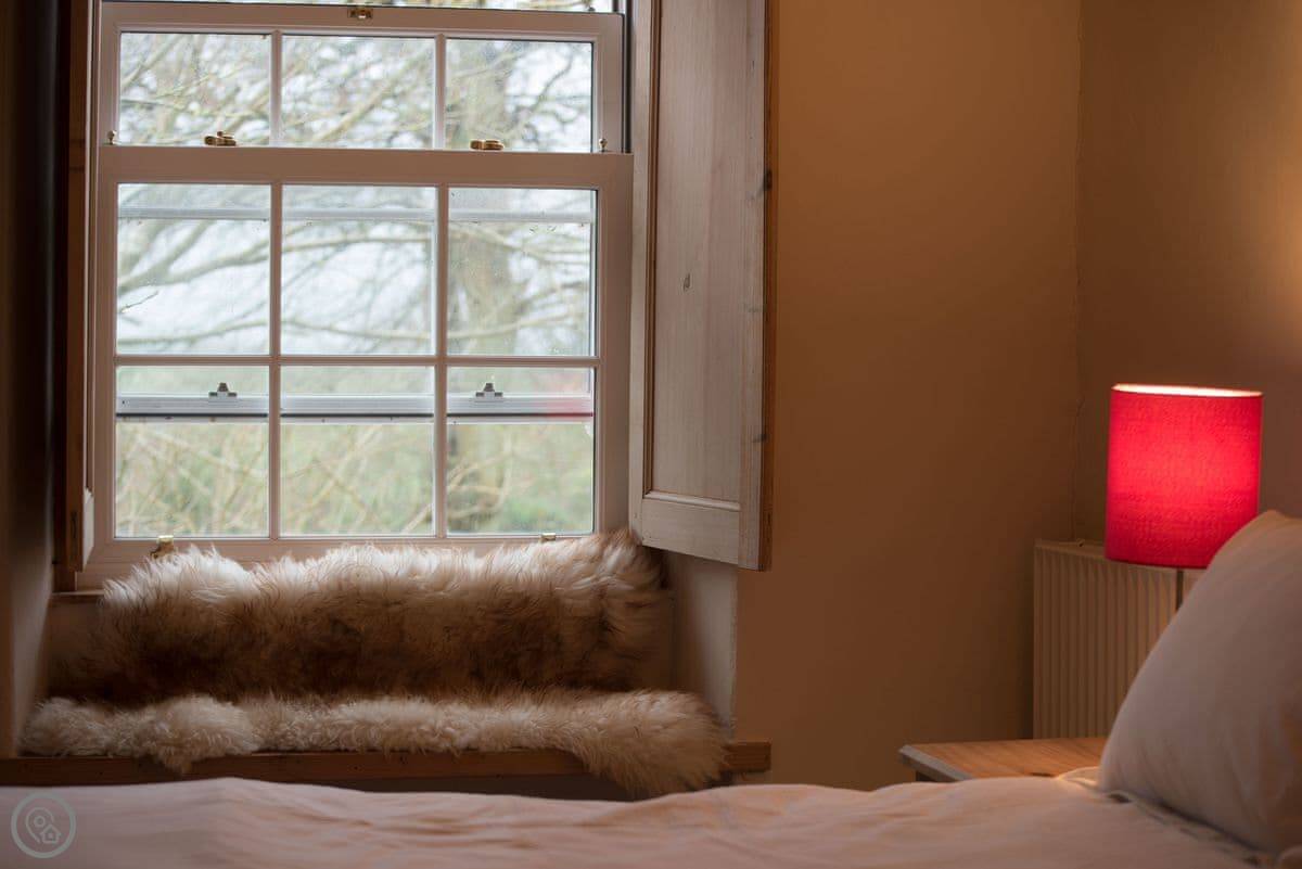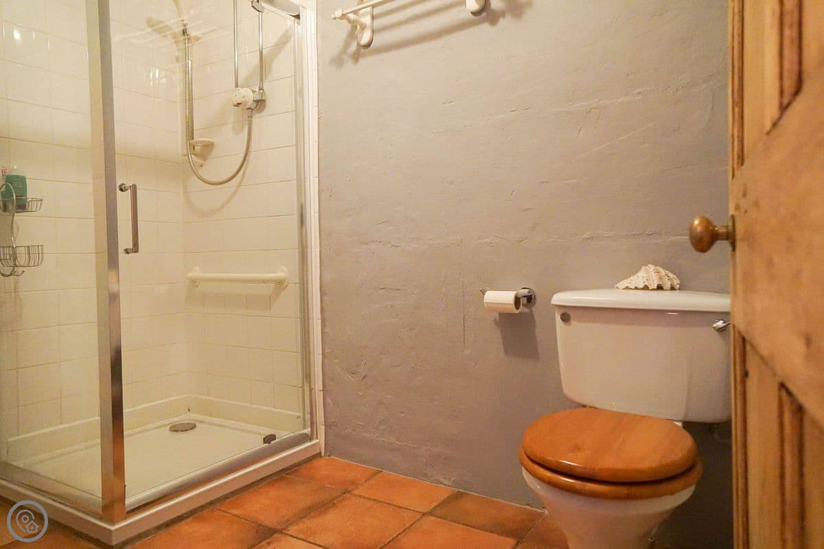 It’s got the basics: washing machine, dishwasher, wifi, TV. Bedding and towels are provided. Parking for a couple of cars right there. The entrance is step-free, so it works for wheelchairs or prams. Pets are welcome, up to two.