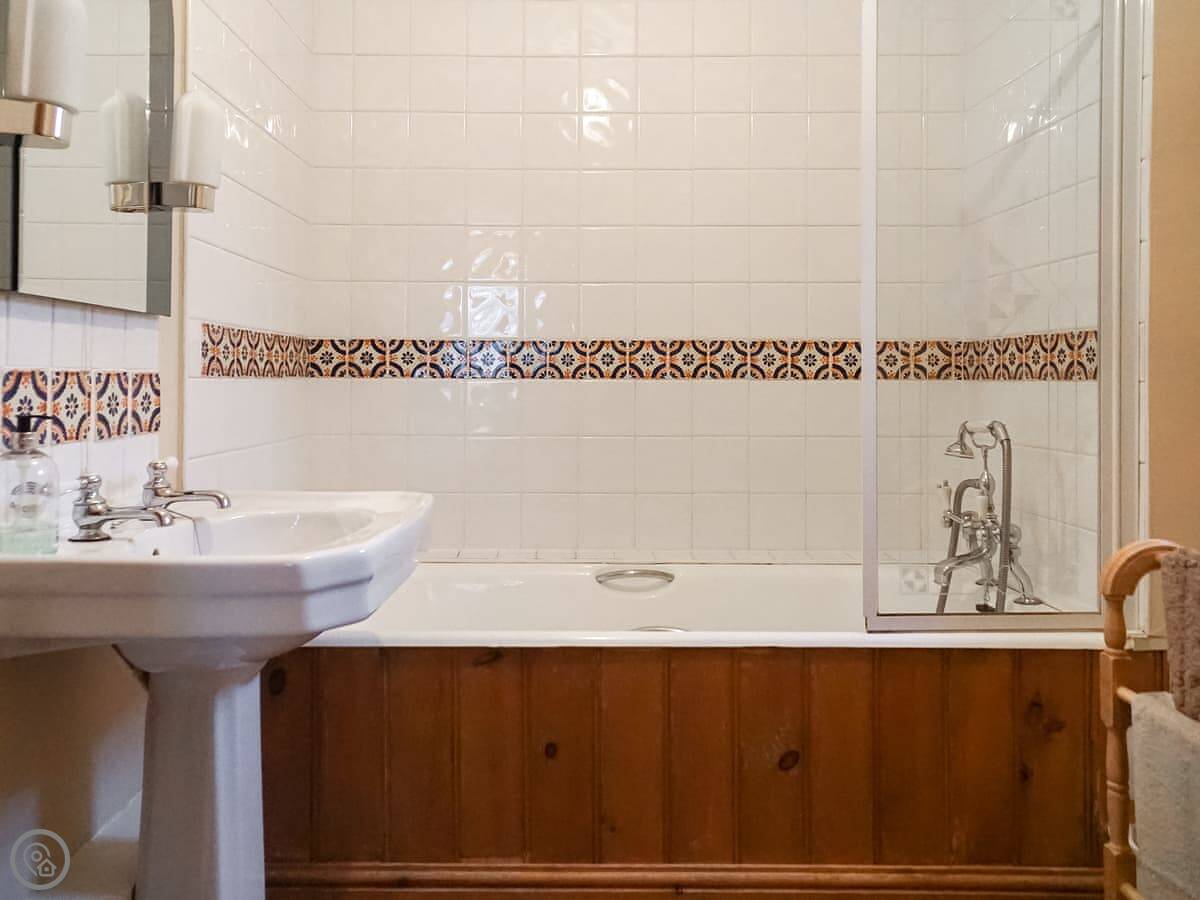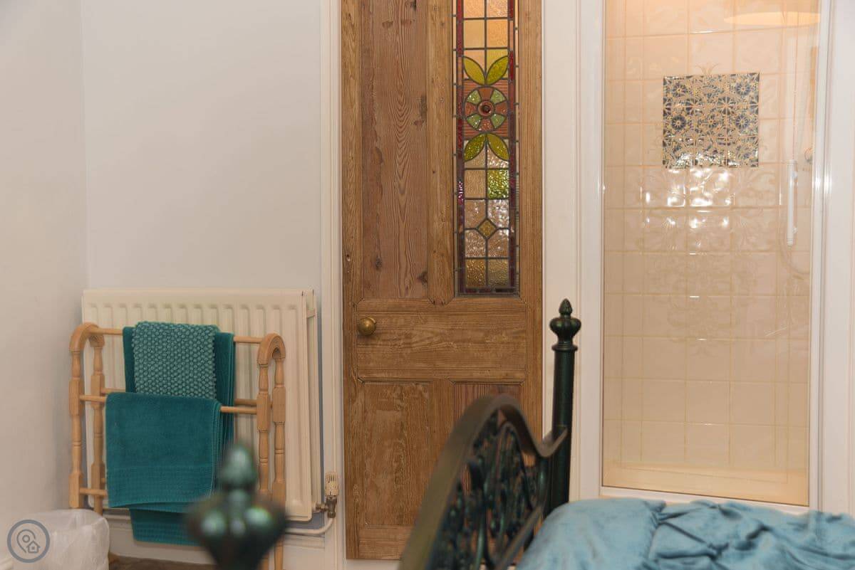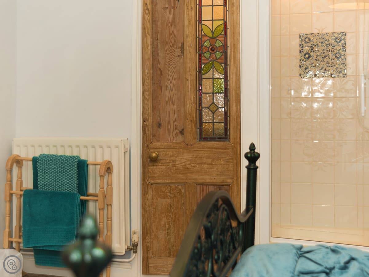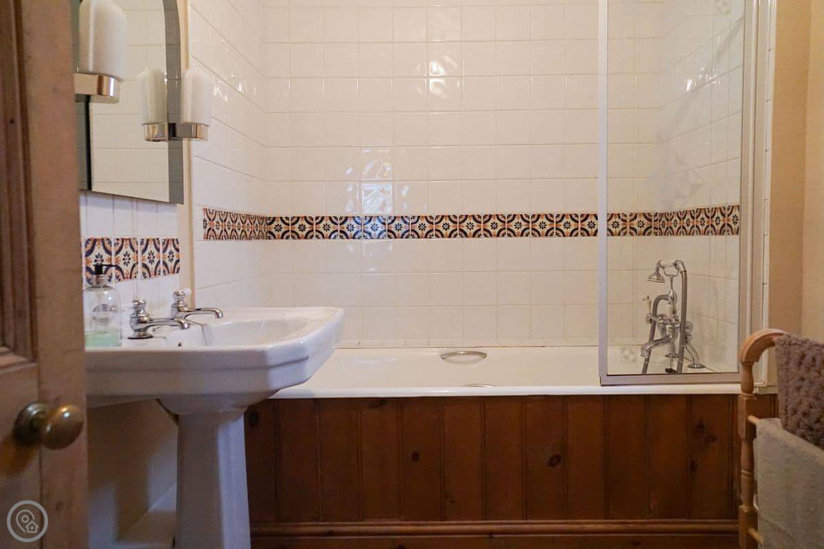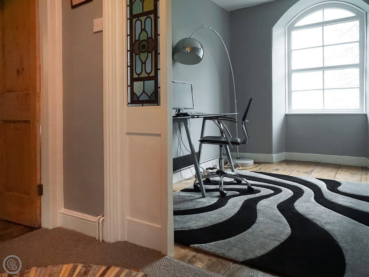 It’s got the basics: washing machine, dishwasher, wifi, TV. Bedding and towels are provided. Parking for a couple of cars right there. The entrance is step-free, so it works for wheelchairs or prams. Pets are welcome, up to two.
