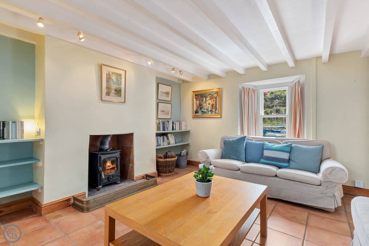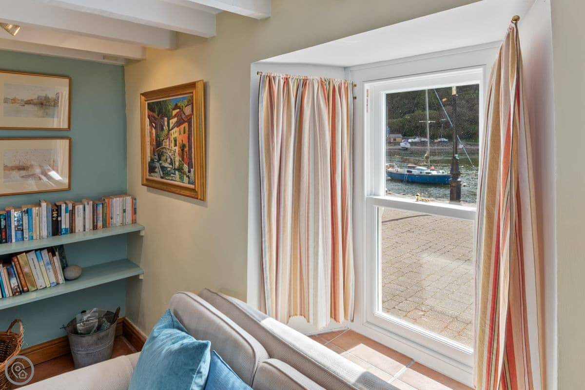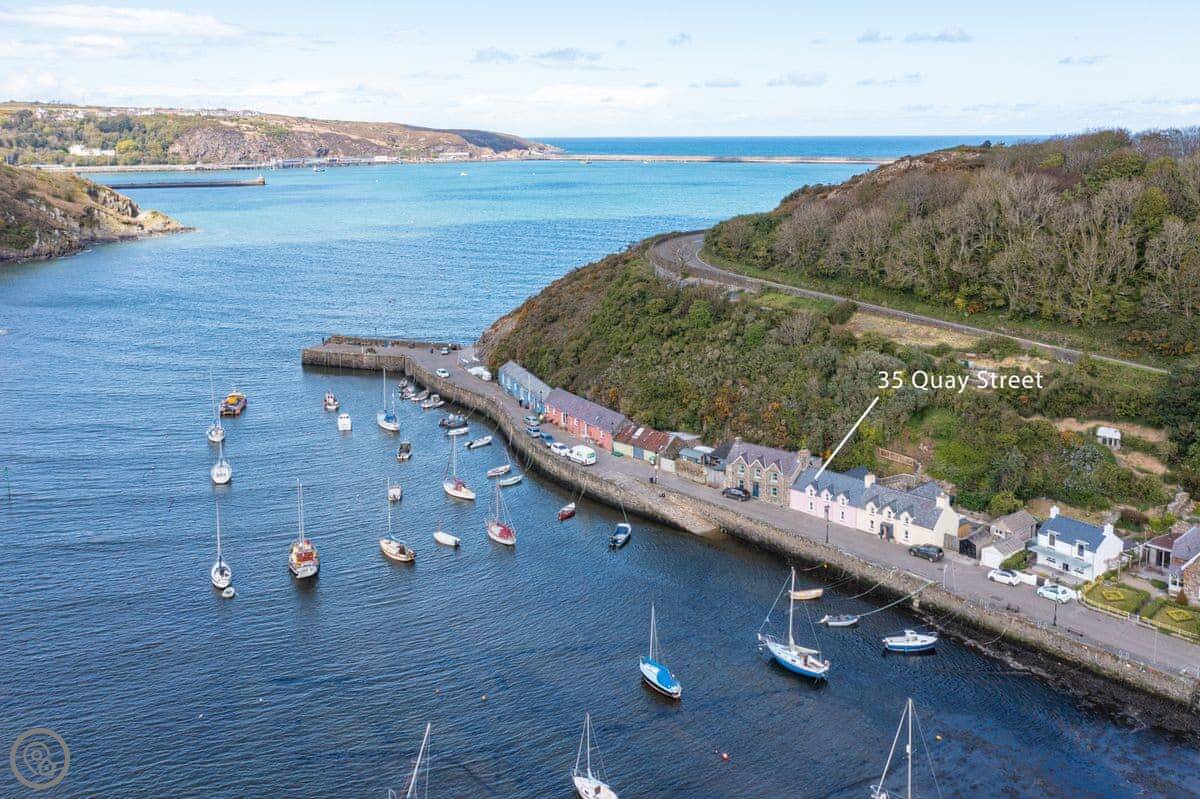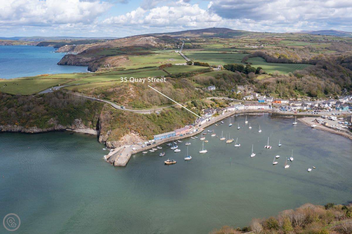35 Quay Street is on the quayside in the lower part of Fishguard. It's a terraced house that sits right on the harbour wall. So the view from the front room is directly across the water, with boats and ducks and the river mouth.
