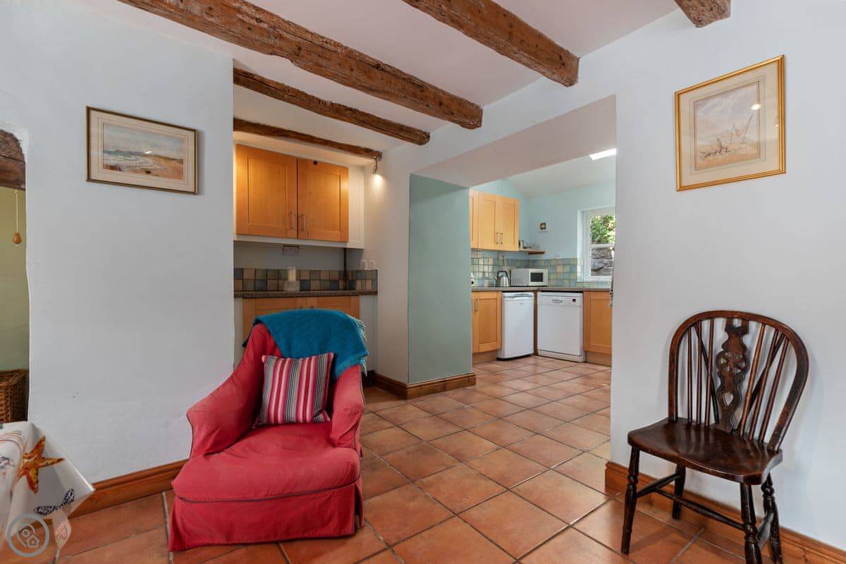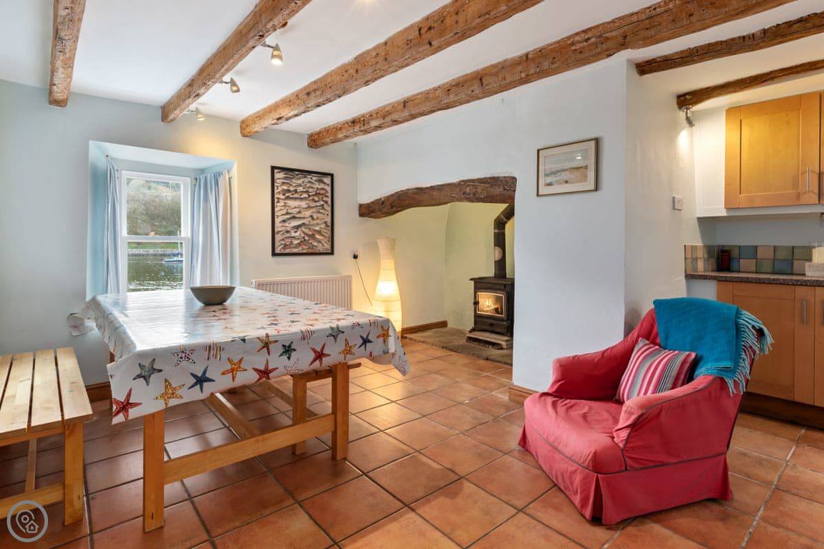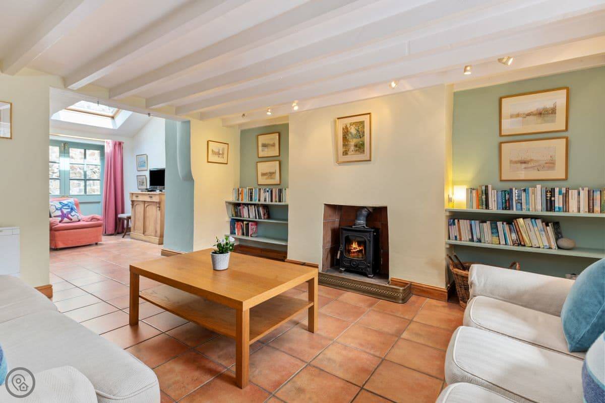 The living room has the view and a wood burner. There's a small second sitting room, which is a bit more tucked away. The kitchen diner is at the back. Out the back door there's an enclosed yard area, which is handy for dogs.