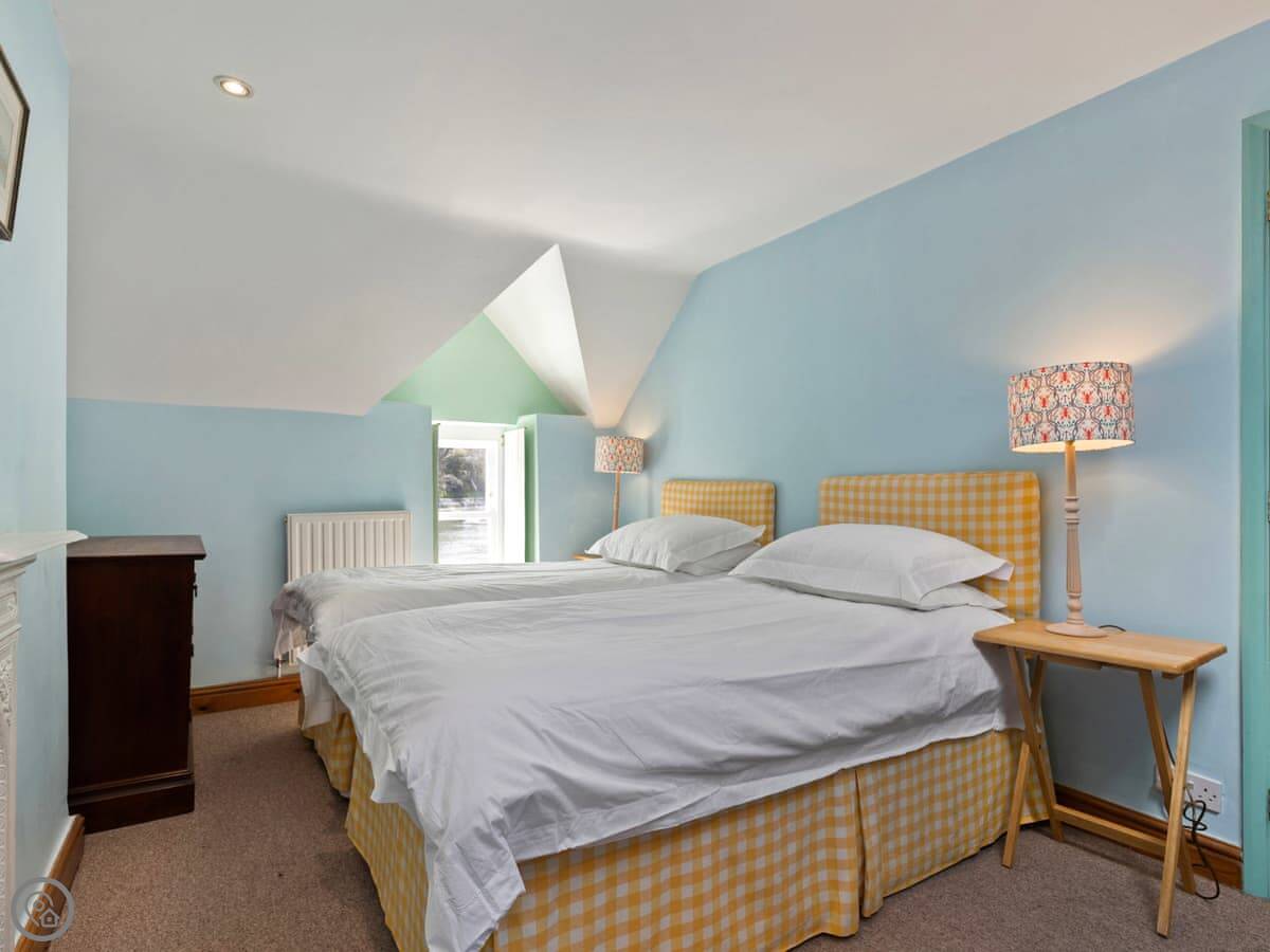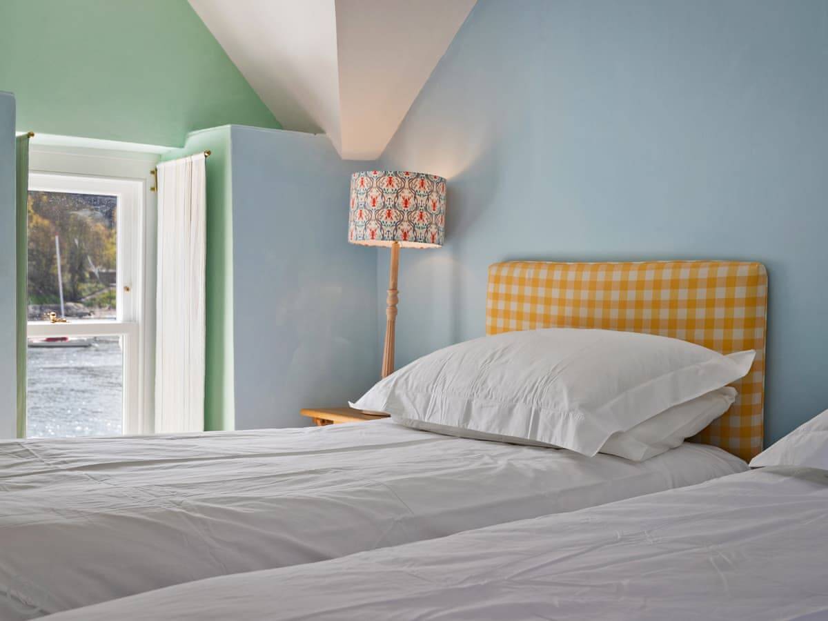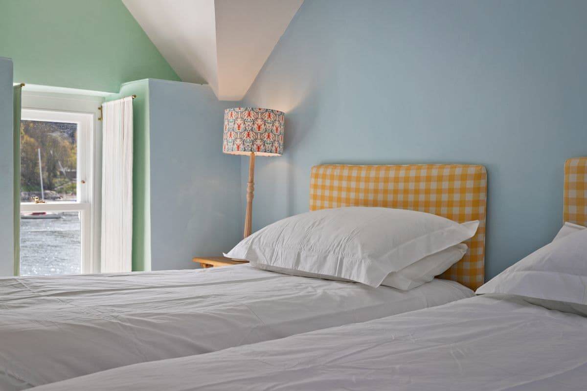 It sleeps six people. Three bedrooms, two bathrooms. One bathroom is a ground floor wet room. The front door is level from the quay, so it's accessible for wheelchairs or if stairs are difficult.