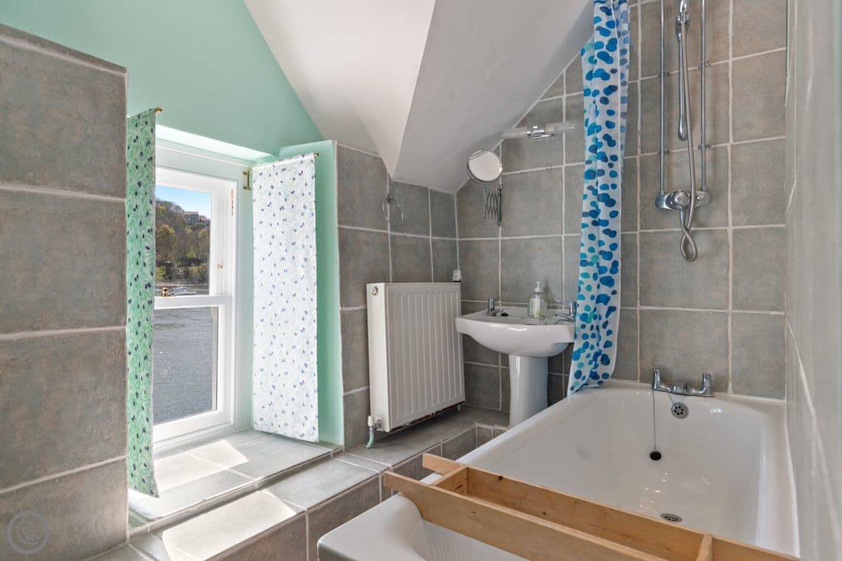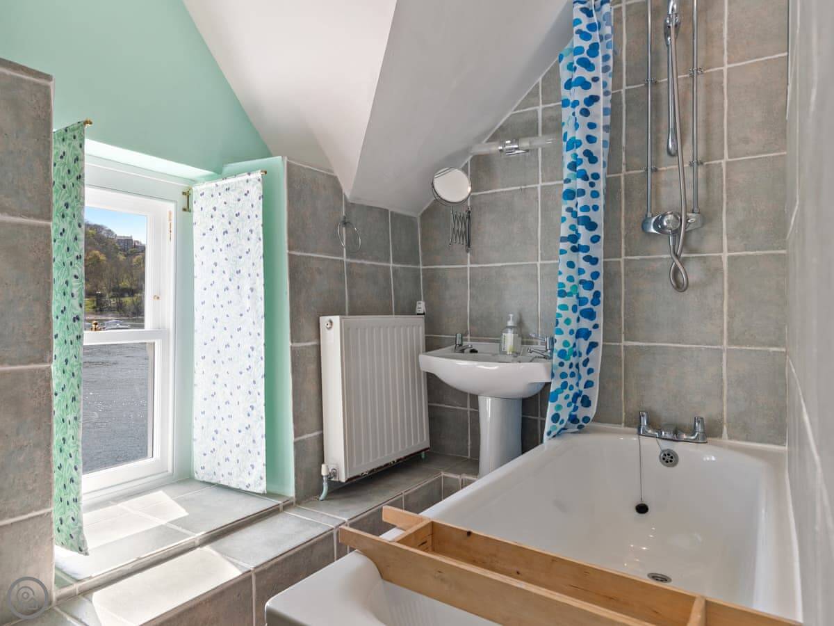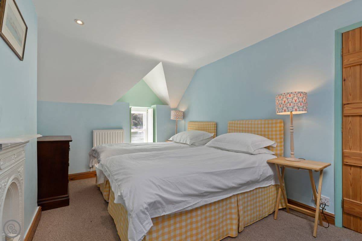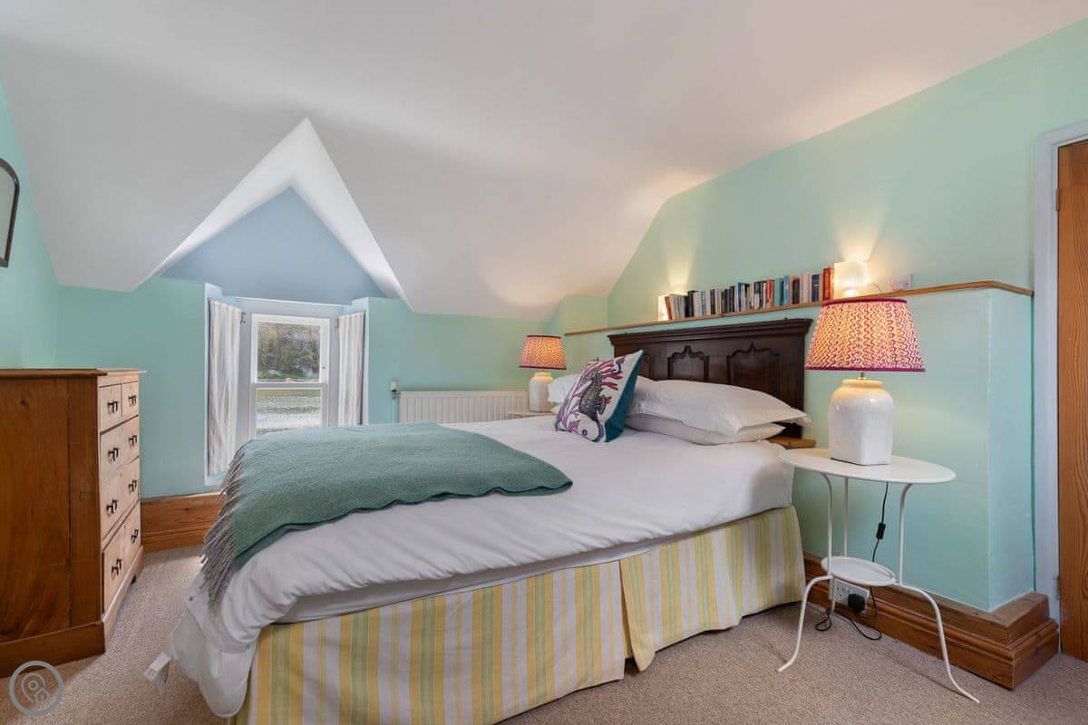 It sleeps six people. Three bedrooms, two bathrooms. One bathroom is a ground floor wet room. The front door is level from the quay, so it's accessible for wheelchairs or if stairs are difficult.