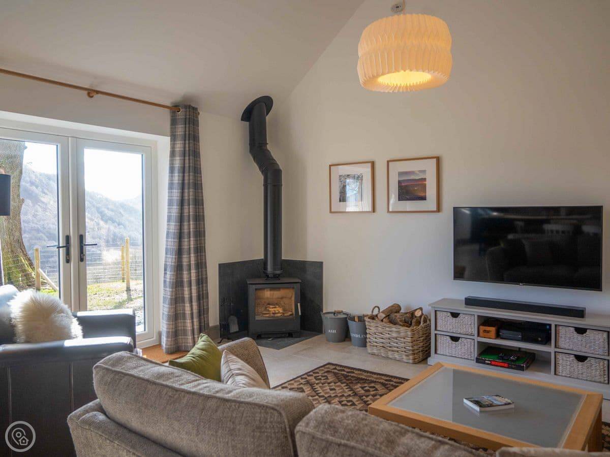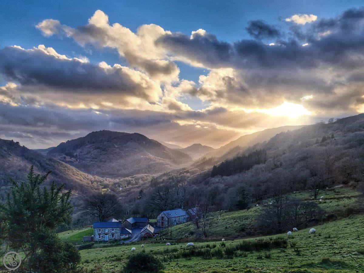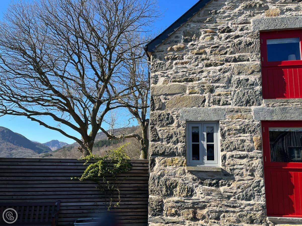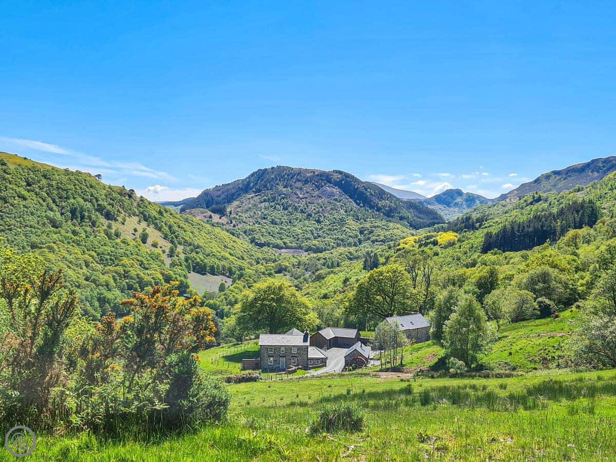 The Barn is in Trefriw, which is a village north of Betws-y-Coed. It's on a hillside, so the views over the Conwy Valley are very good. It's detached.