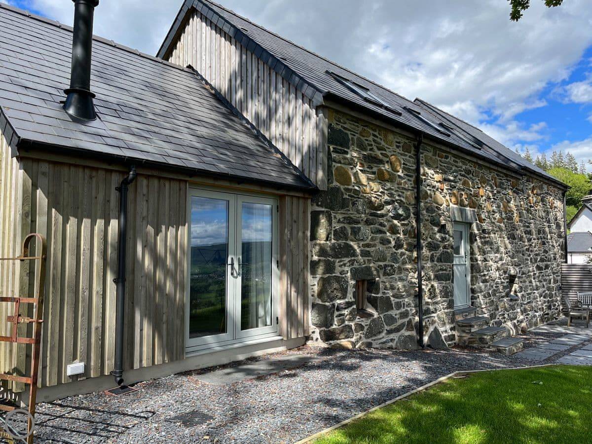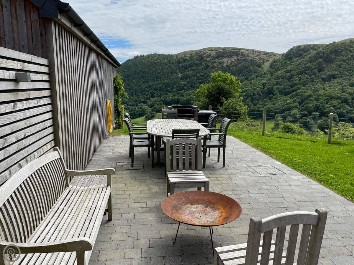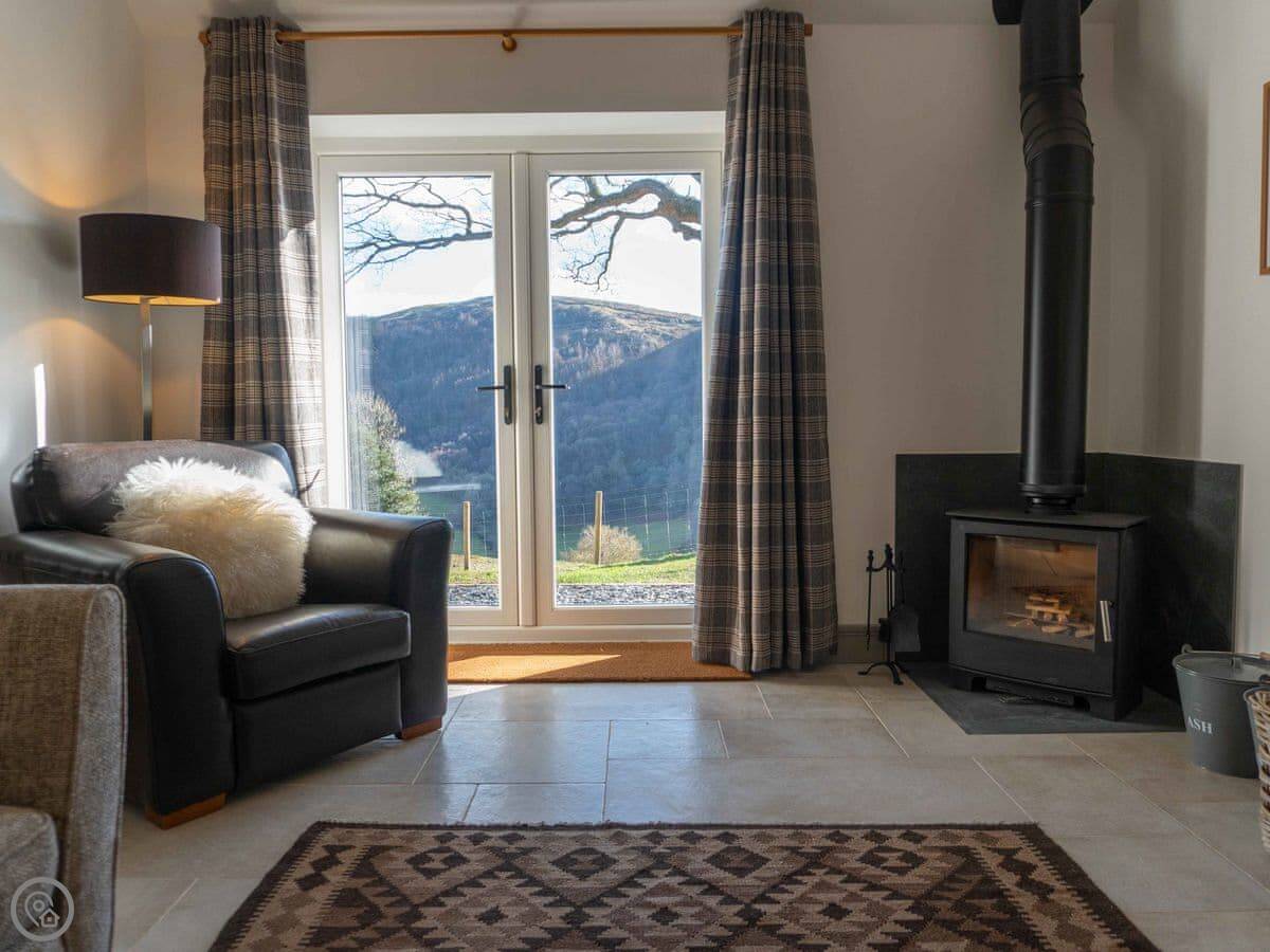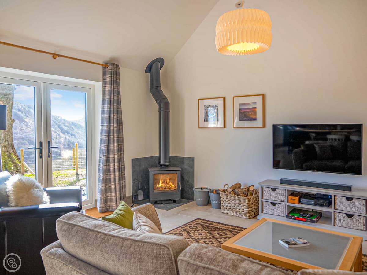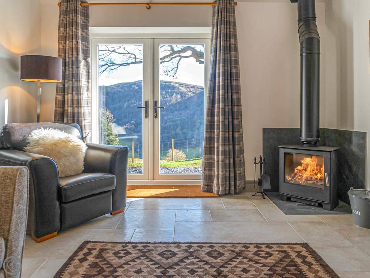 The Barn is in Trefriw, which is a village north of Betws-y-Coed. It's on a hillside, so the views over the Conwy Valley are very good. It's detached.