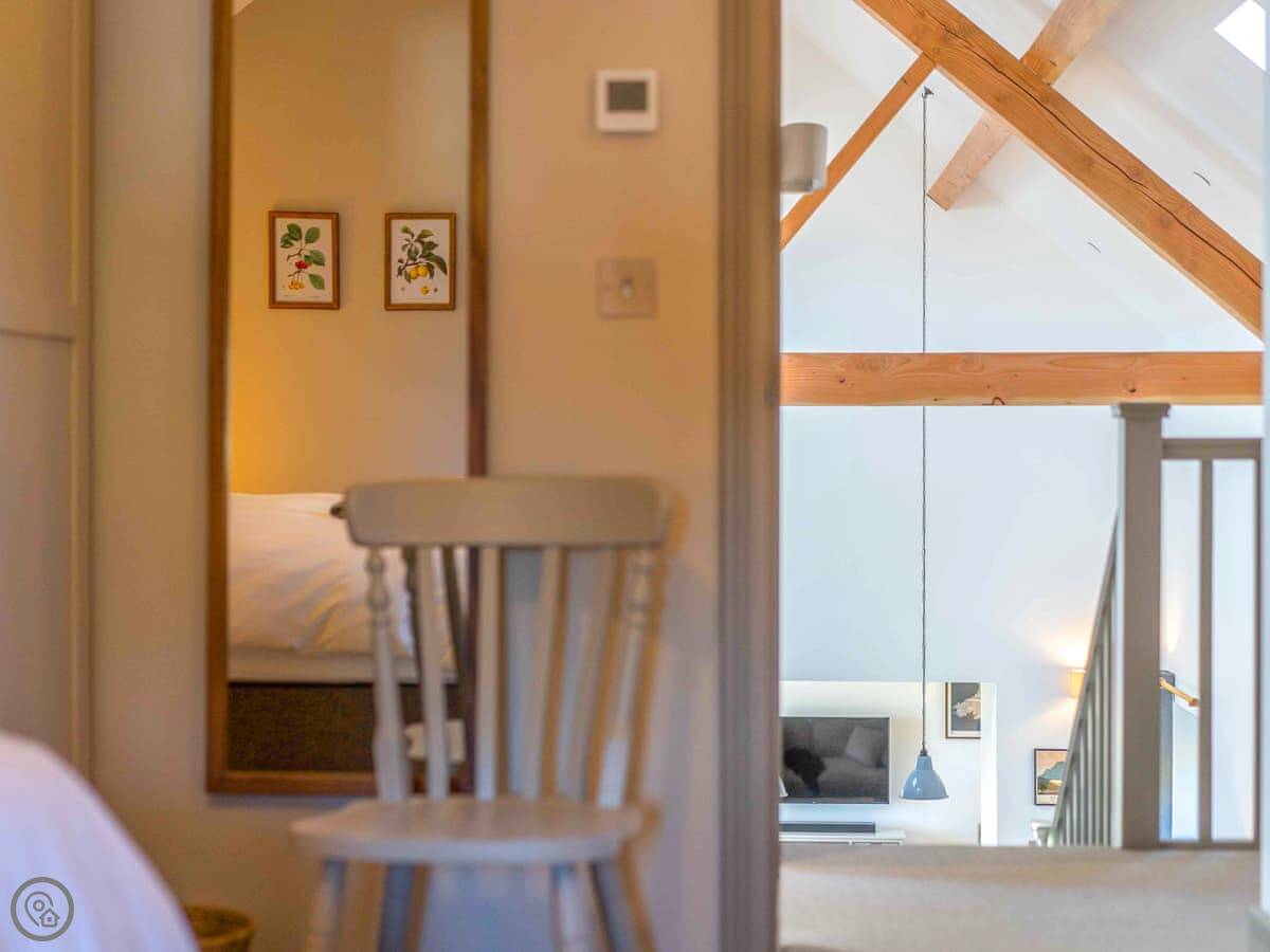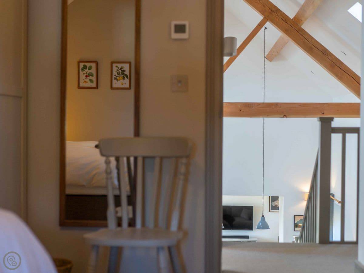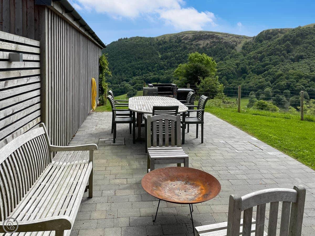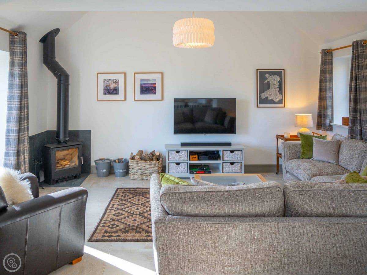 The Barn is in Trefriw, which is a village north of Betws-y-Coed. It's on a hillside, so the views over the Conwy Valley are very good. It's detached.