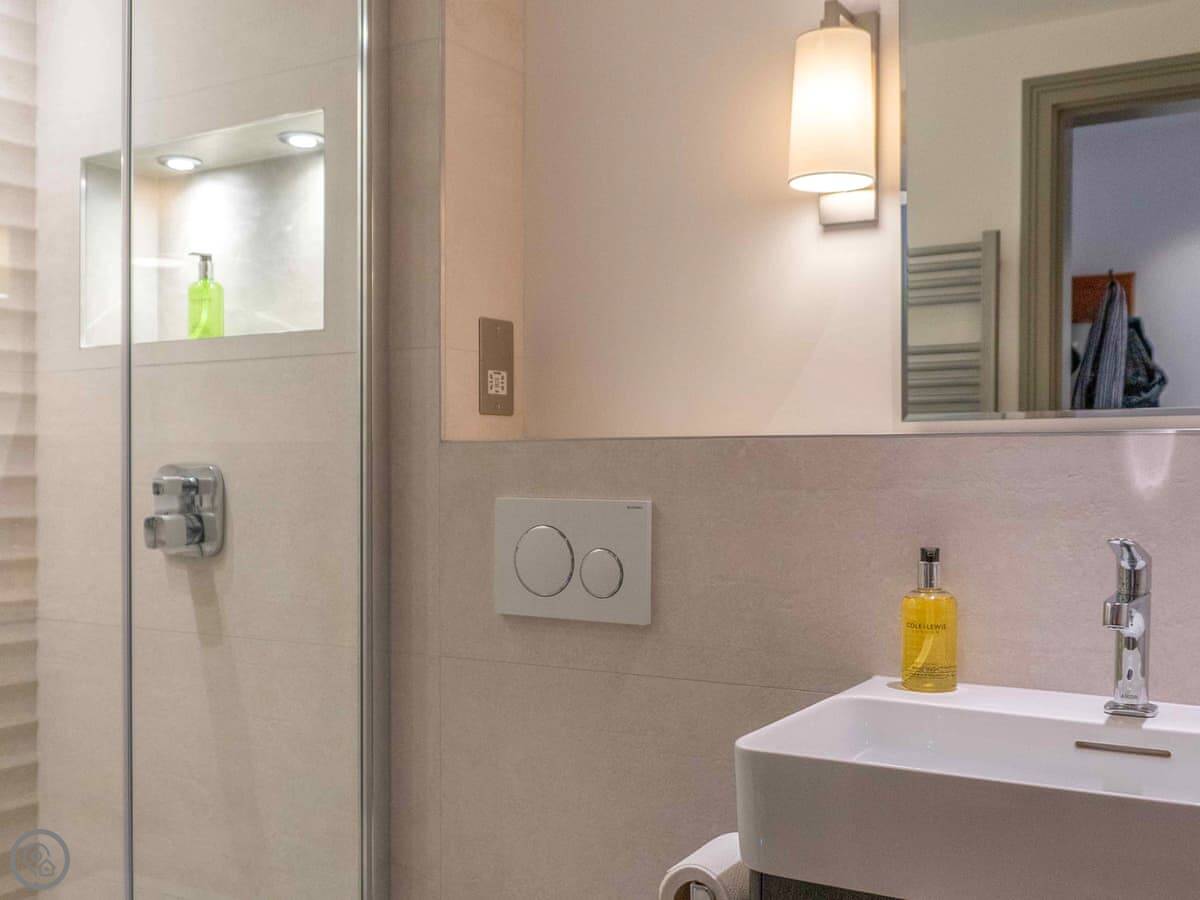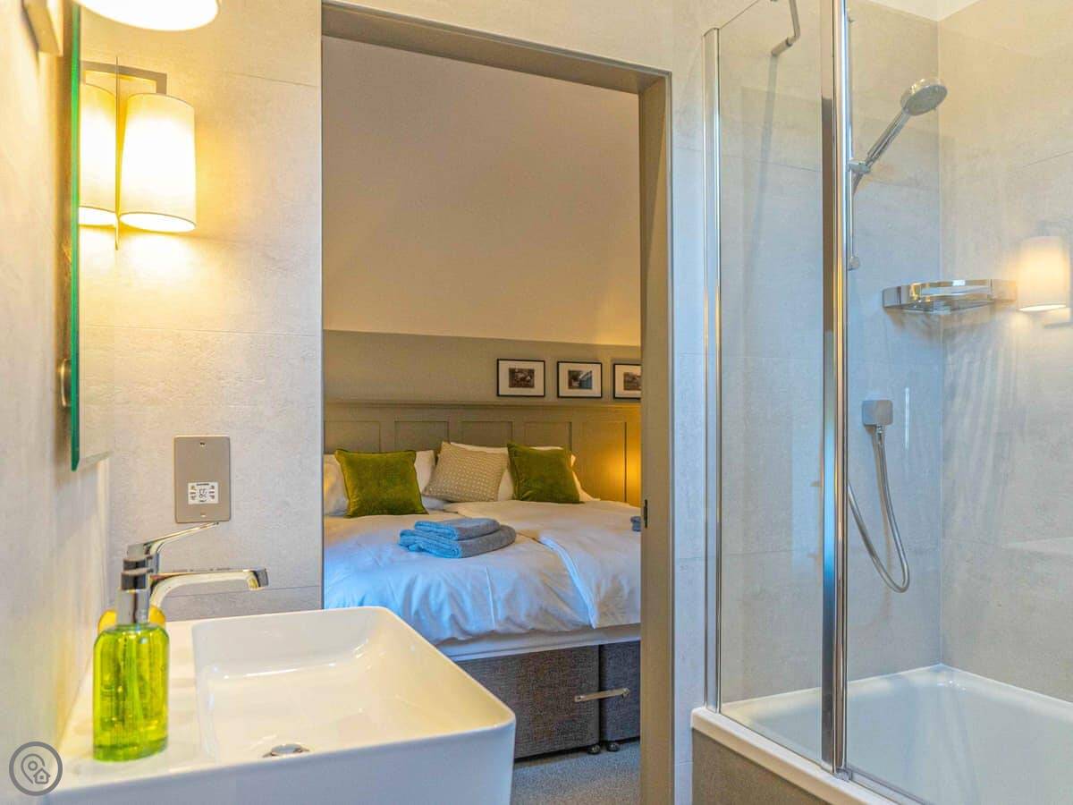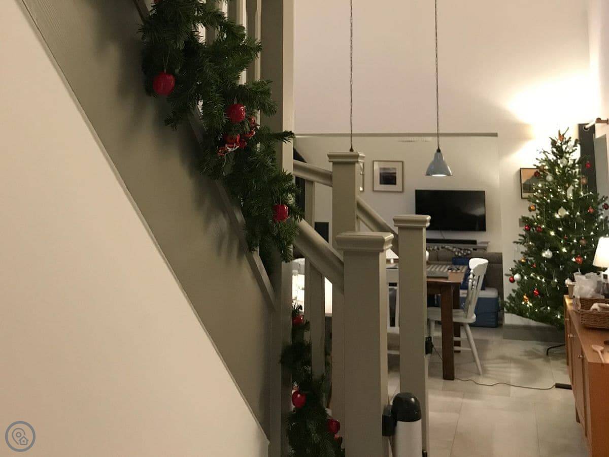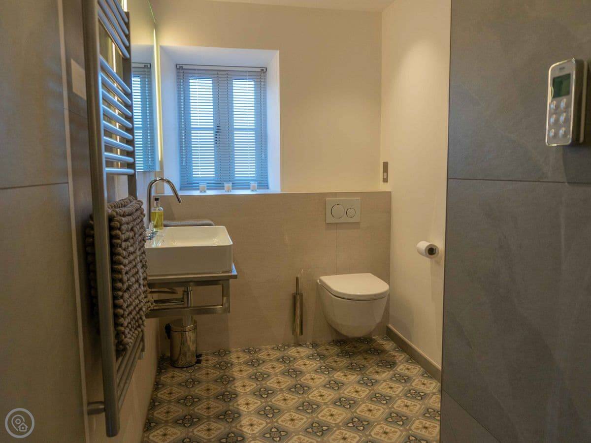 It sleeps seven. Three bedrooms, and three bathrooms, which is useful. One bedroom and a wet room are on the ground floor. The stairs are fine.