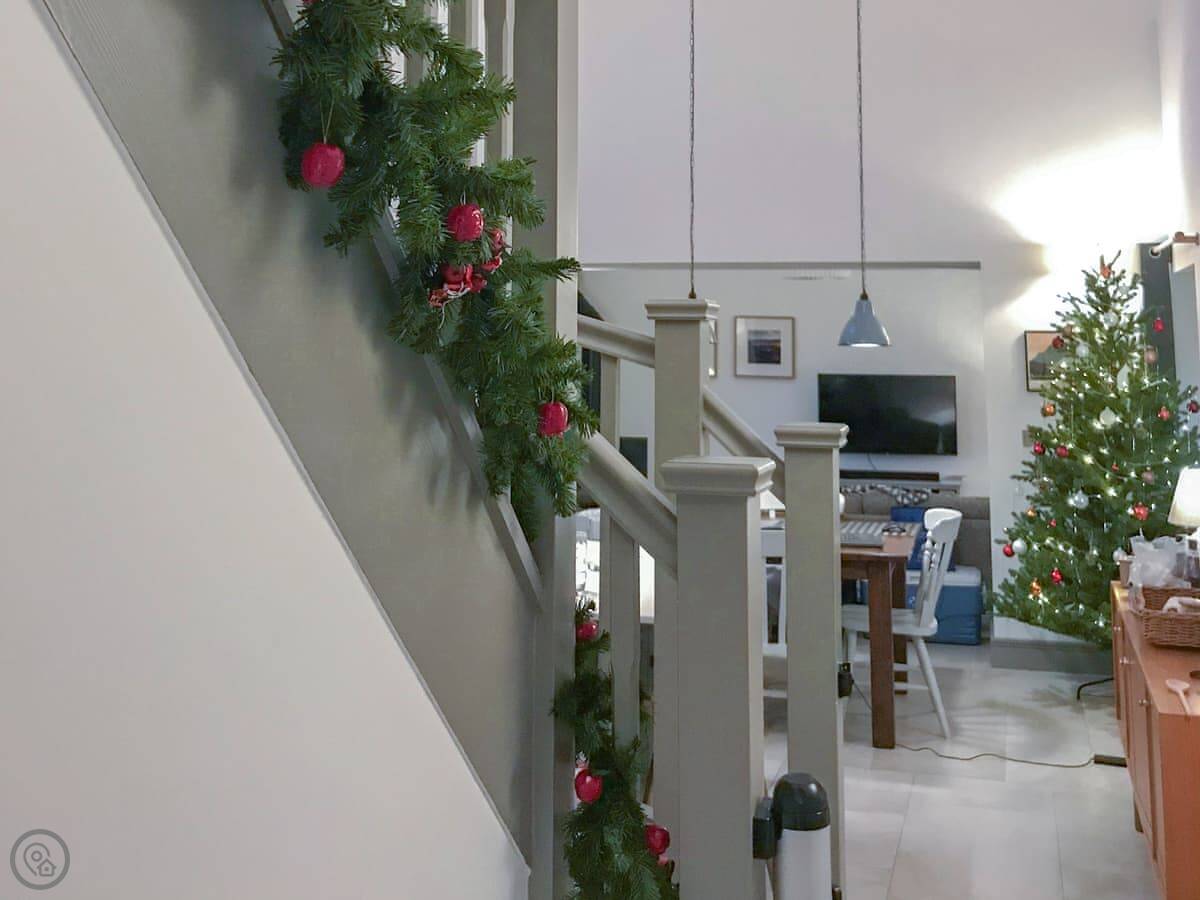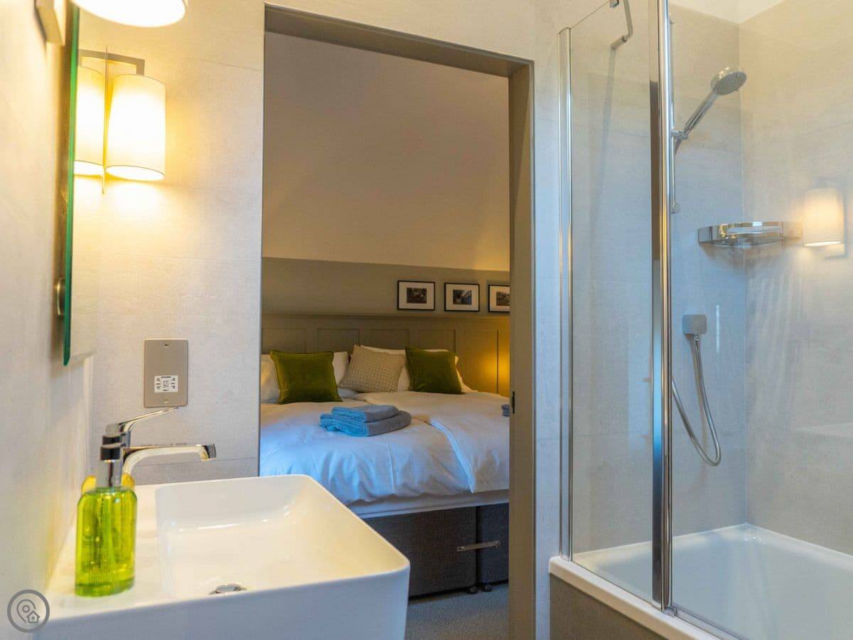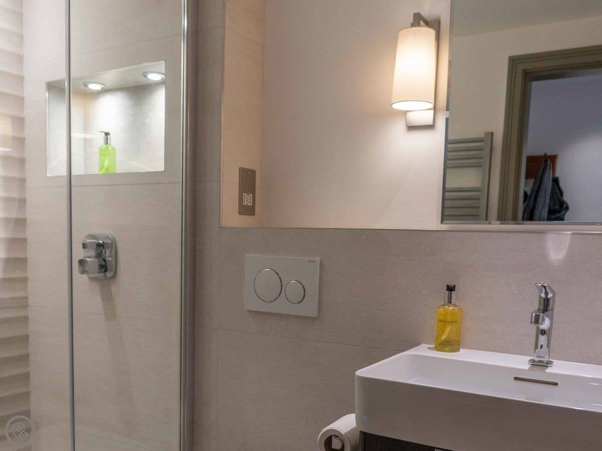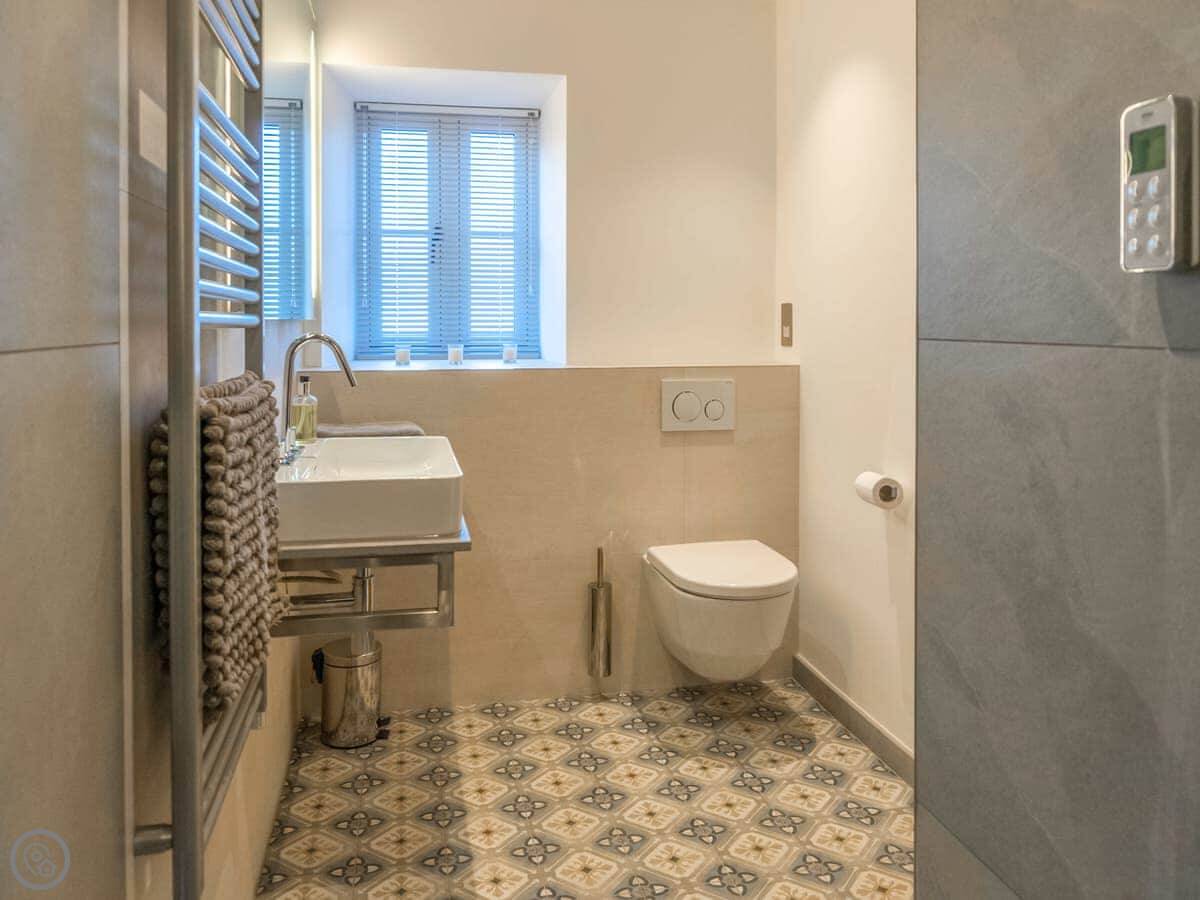 It sleeps seven. Three bedrooms, and three bathrooms, which is useful. One bedroom and a wet room are on the ground floor. The stairs are fine.