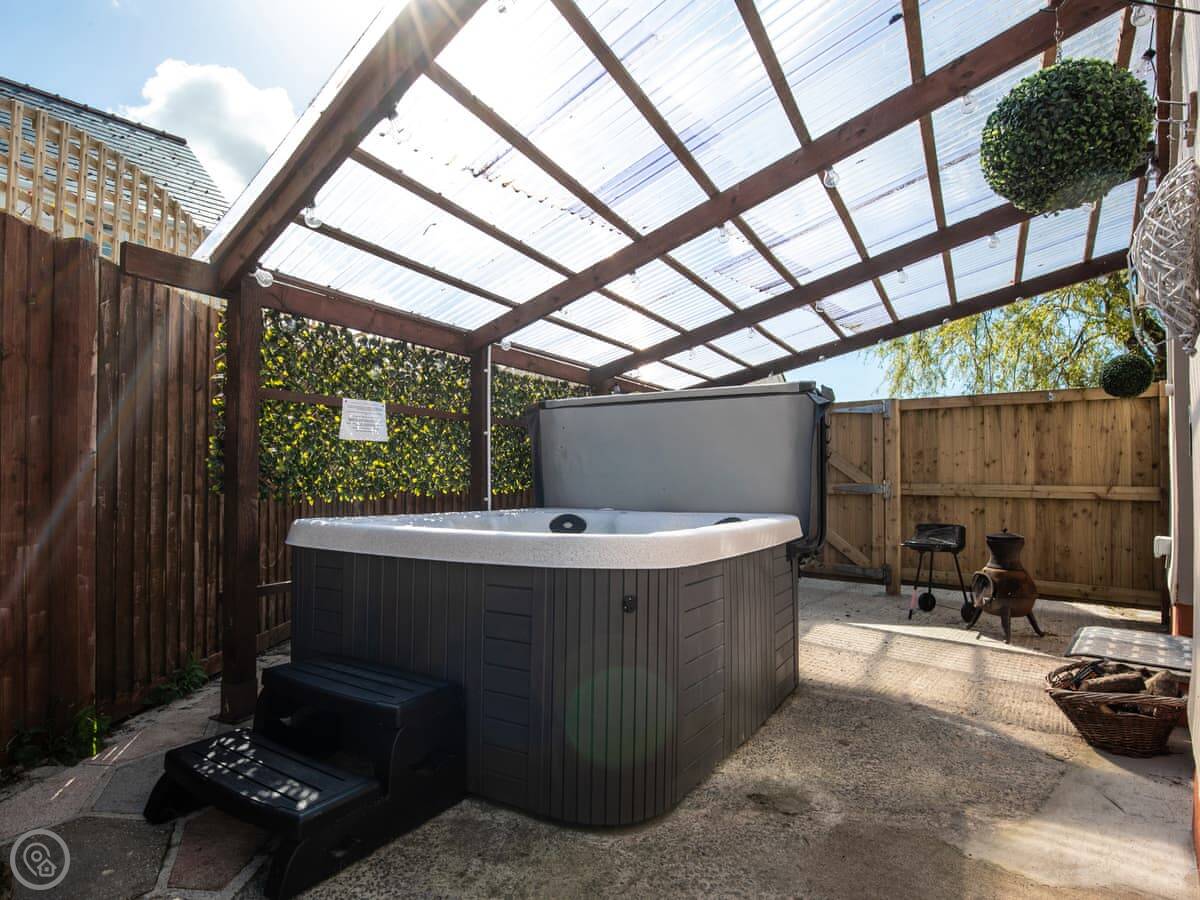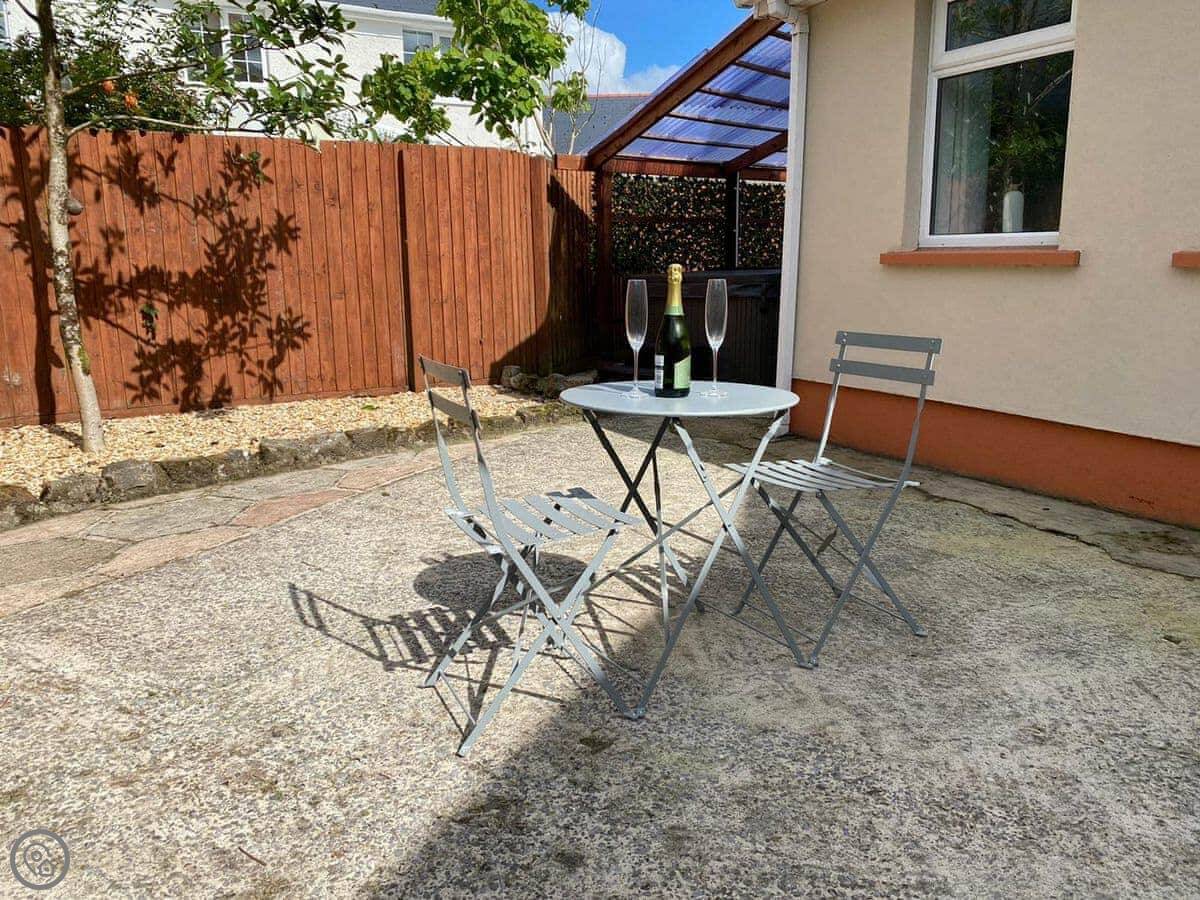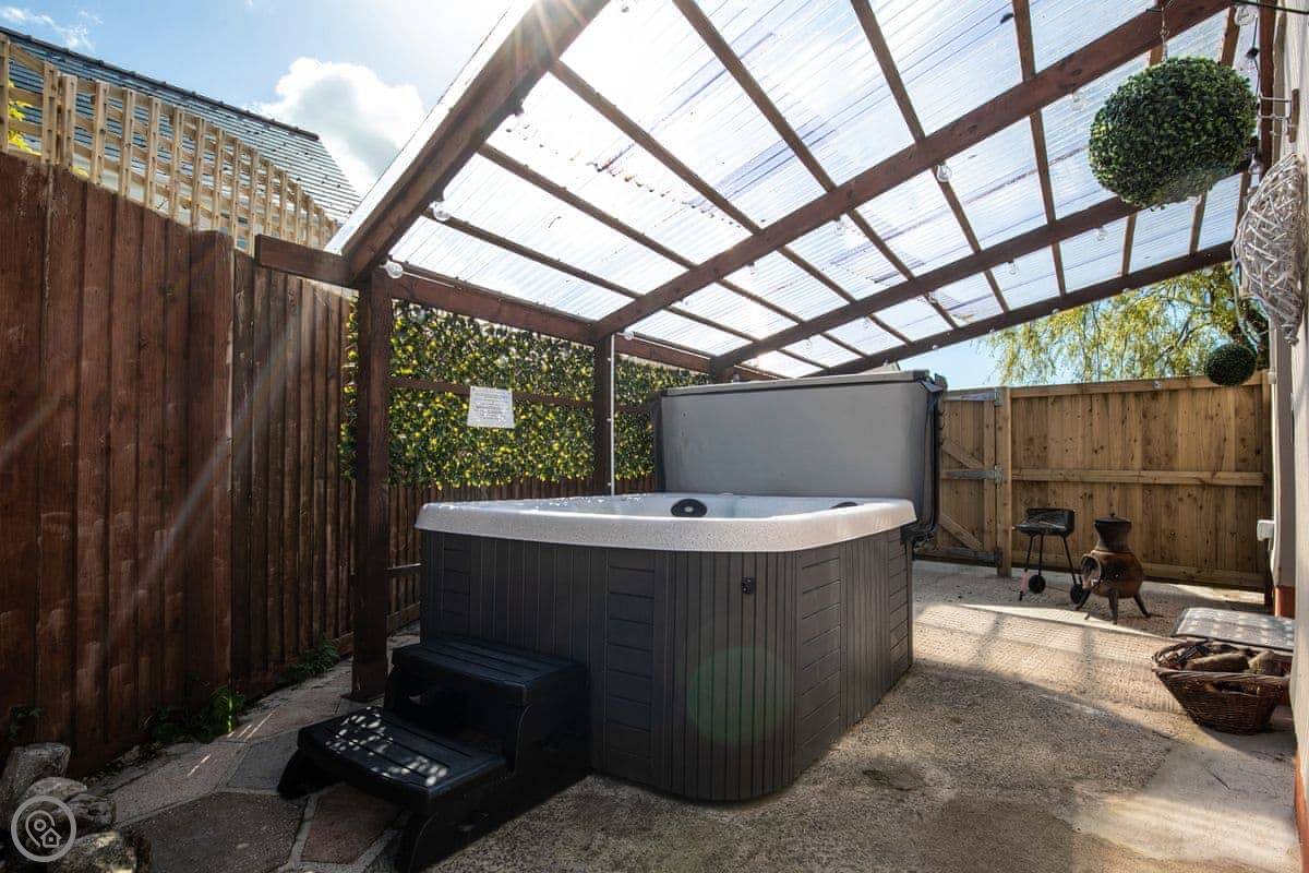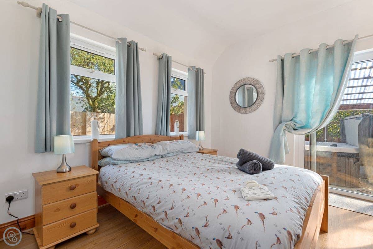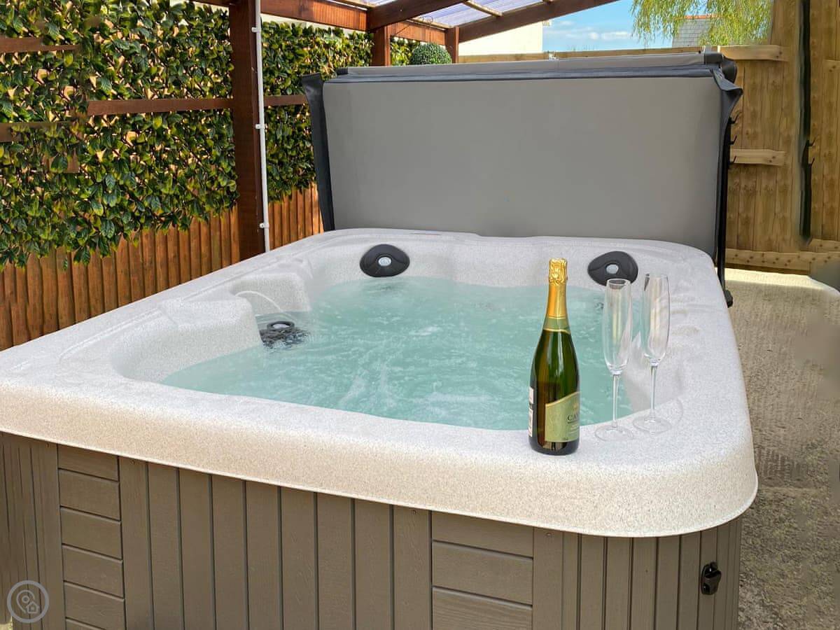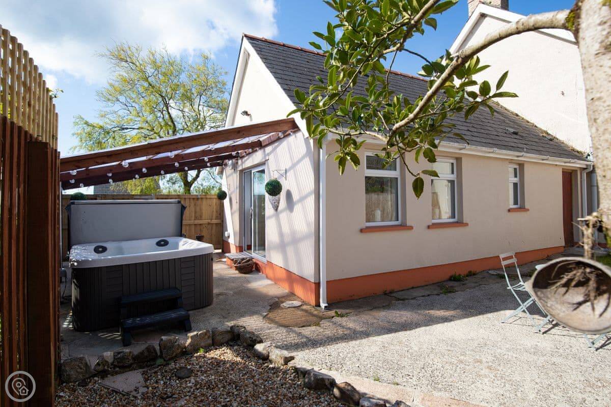 The Cwtch offers an open plan, contemporary kitchen and dining area, with a table and three chairs. The bedroom/living space is a well designed and stylish area, which has been dressed with, a king-size bed and has a large TV, elegant electric heater and comfortable two-seater sofa. The separate en-suite shower room is a bright area which has a stylish finish. Sliding doors lead out to a delightful, private courtyard with a hot tub which is romantically lit with with lights above. You’ll also find a table and chairs along with a firepit, perfect for some alfresco dining. The property has been finished to a high standard throughout.