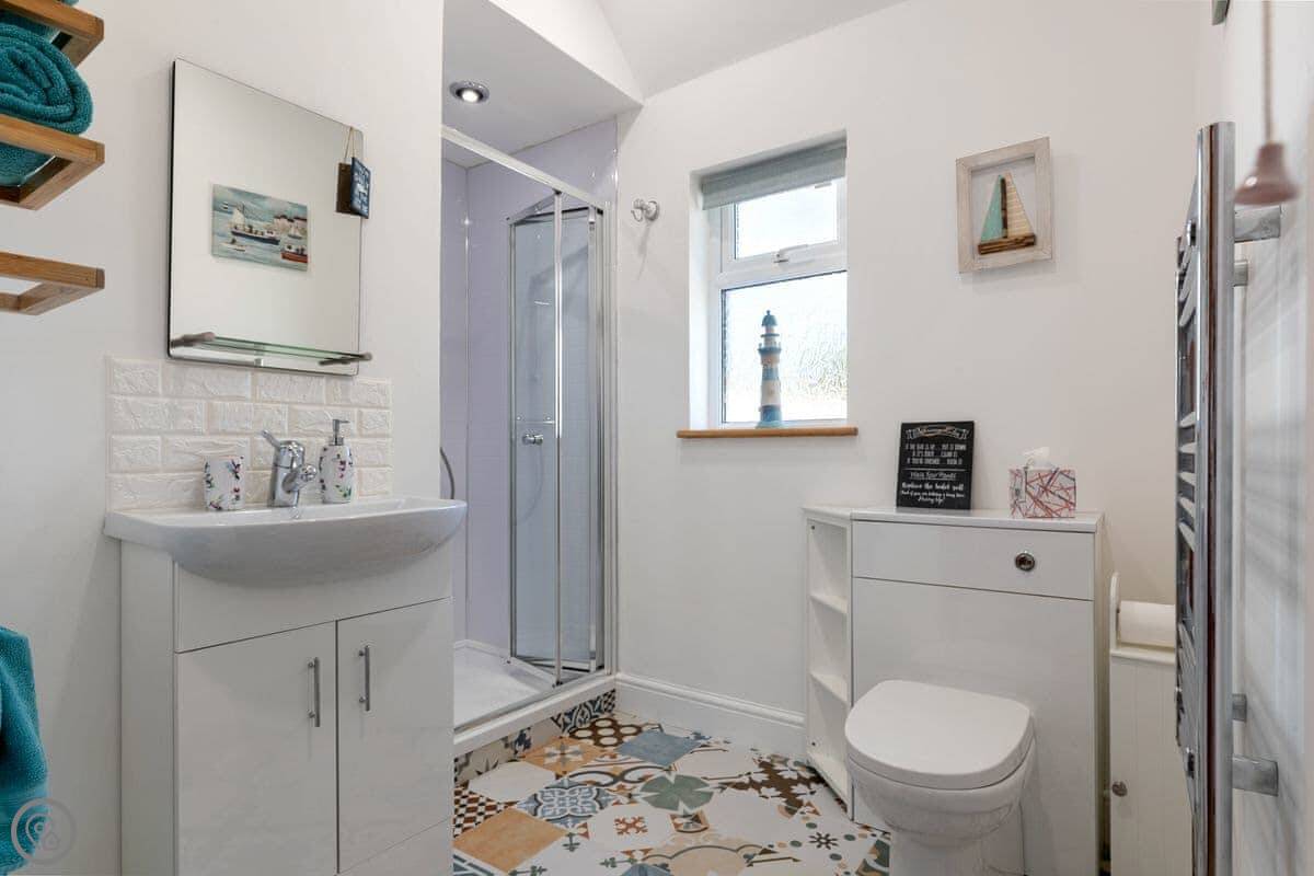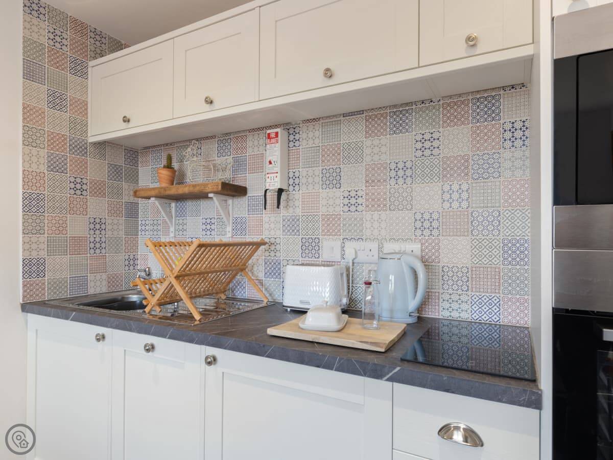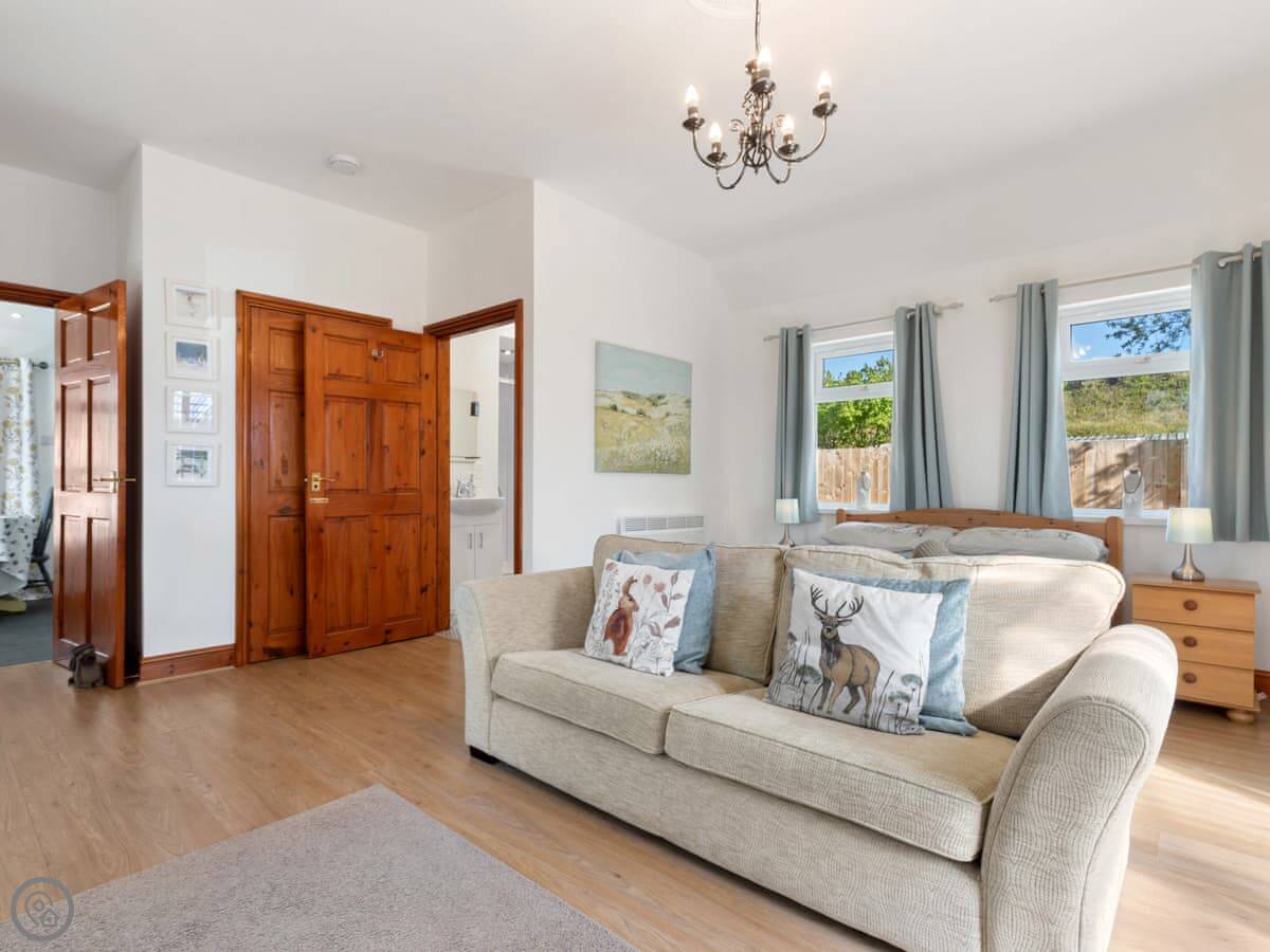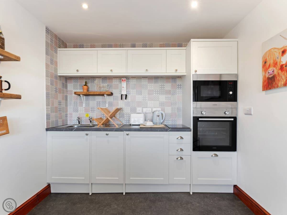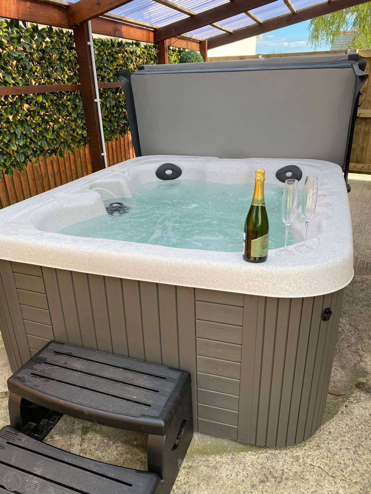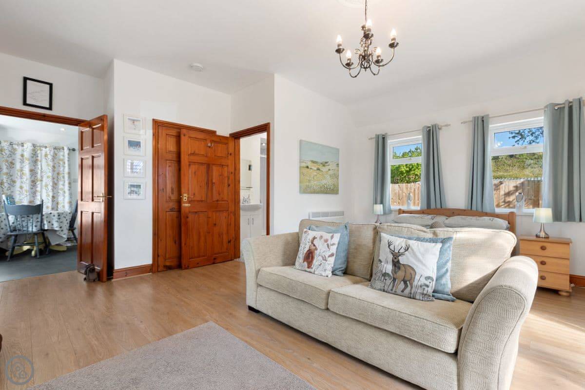 The Cwtch offers an open plan, contemporary kitchen and dining area, with a table and three chairs. The bedroom/living space is a well designed and stylish area, which has been dressed with, a king-size bed and has a large TV, elegant electric heater and comfortable two-seater sofa. The separate en-suite shower room is a bright area which has a stylish finish. Sliding doors lead out to a delightful, private courtyard with a hot tub which is romantically lit with with lights above. You’ll also find a table and chairs along with a firepit, perfect for some alfresco dining. The property has been finished to a high standard throughout.