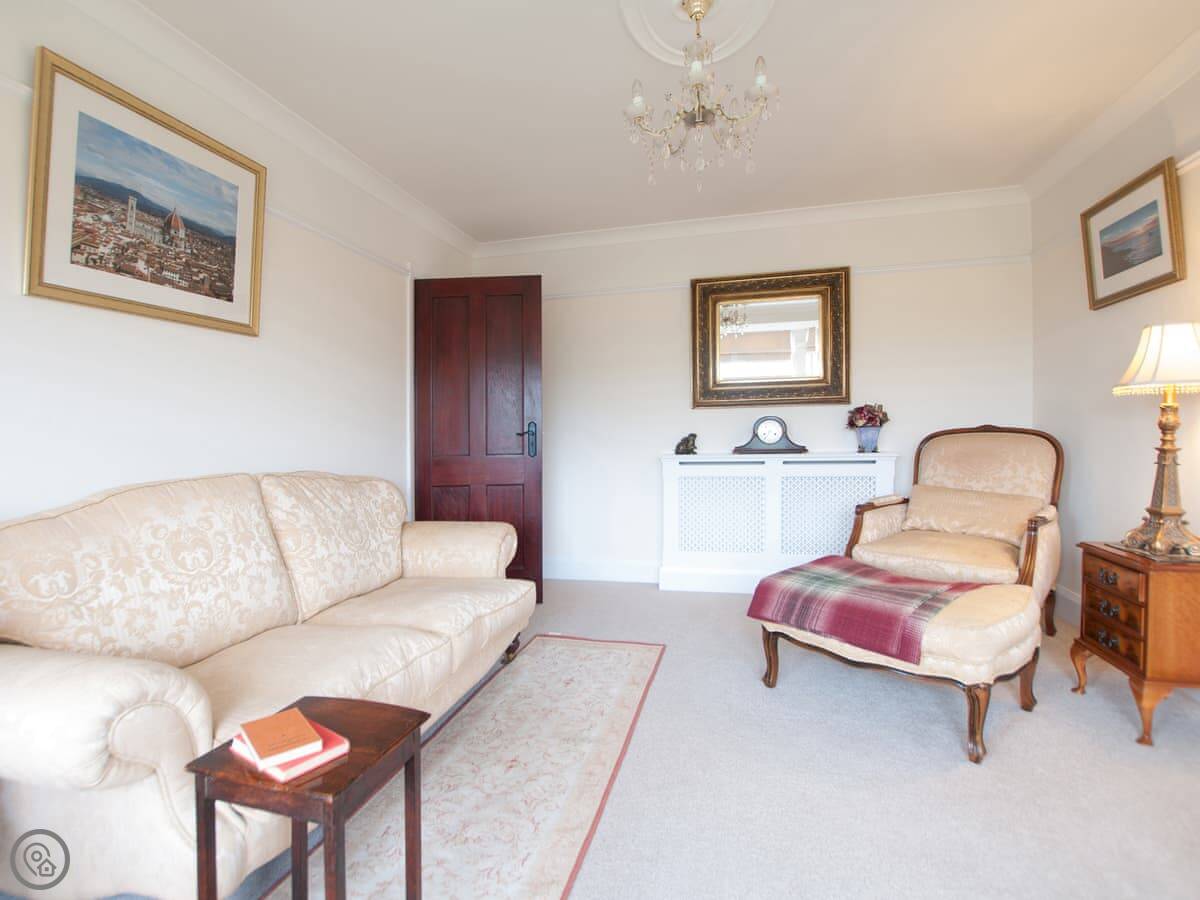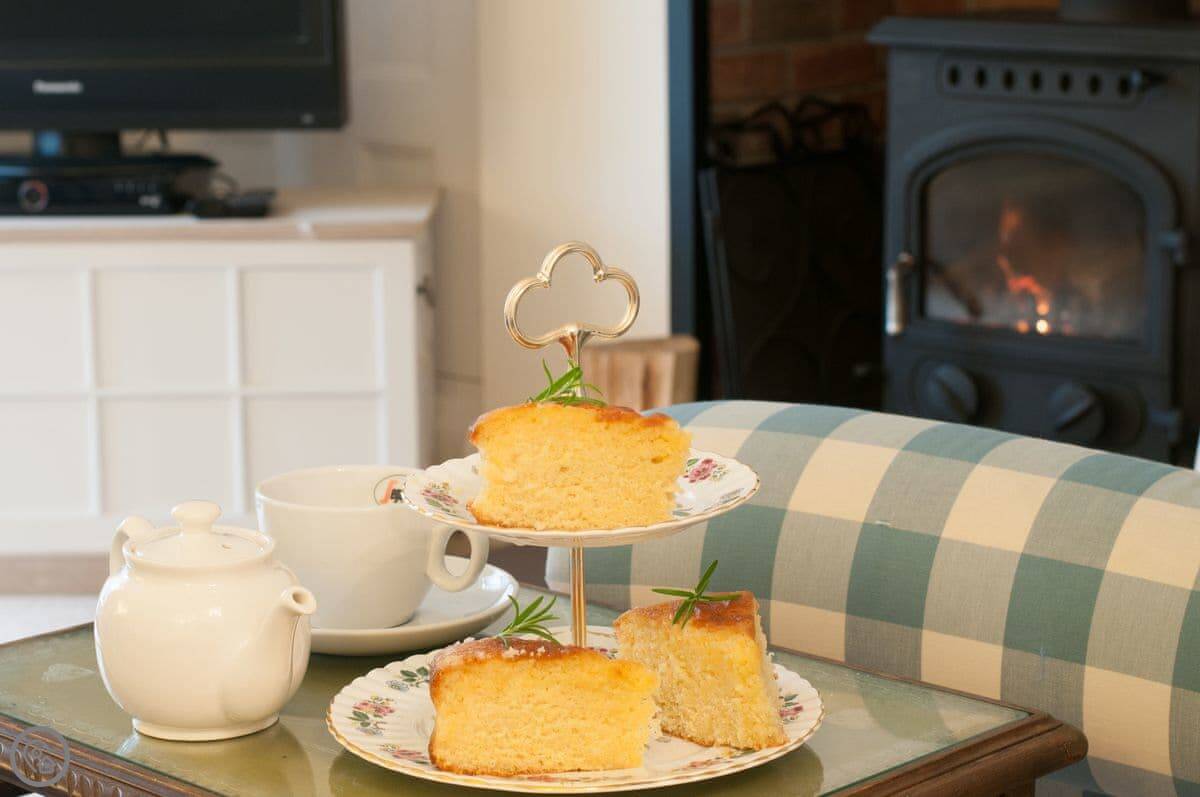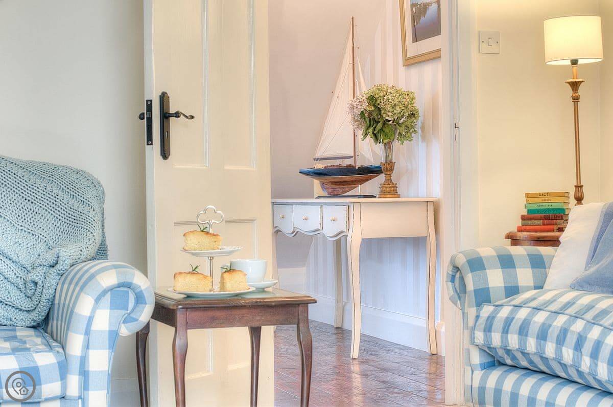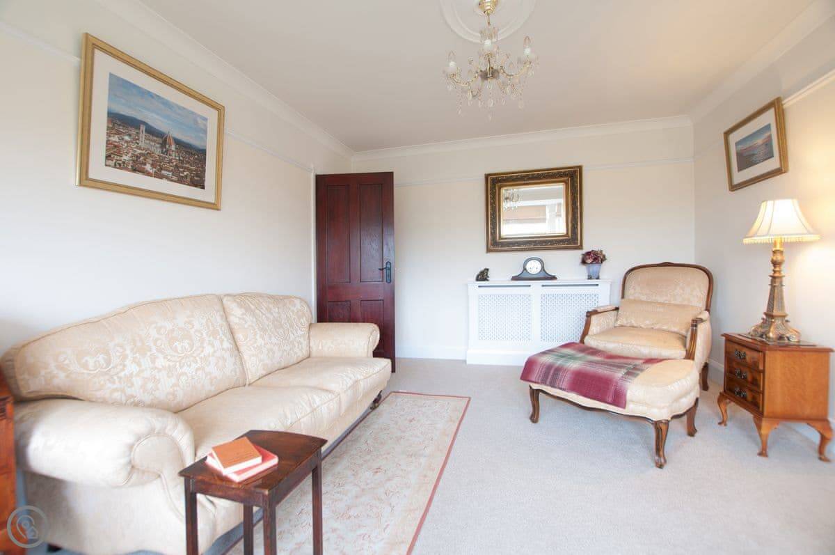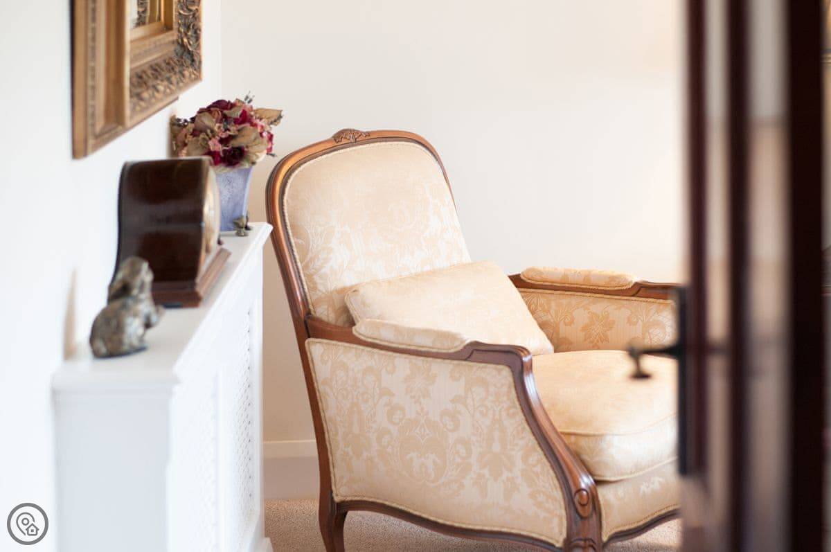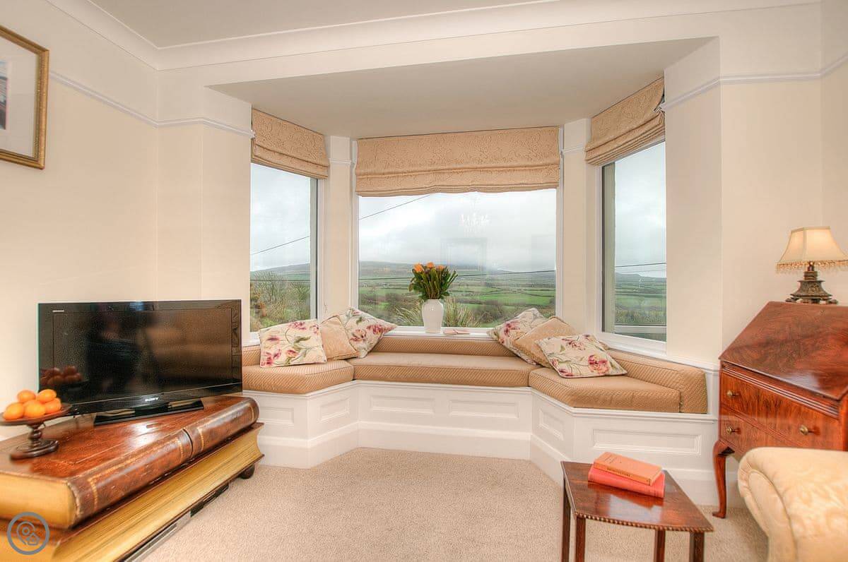 The house is warm. It's got a wood-burner in the snug and a new heat pump system for the central heating. There are two living areas: one with a bay window and another that leads into a conservatory. The kitchen has a Range cooker. Outside, there's a decked balcony off the conservatory and a garden with a lawn and a big outdoor table.