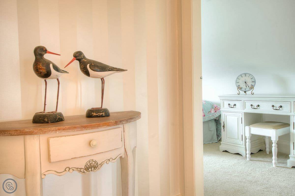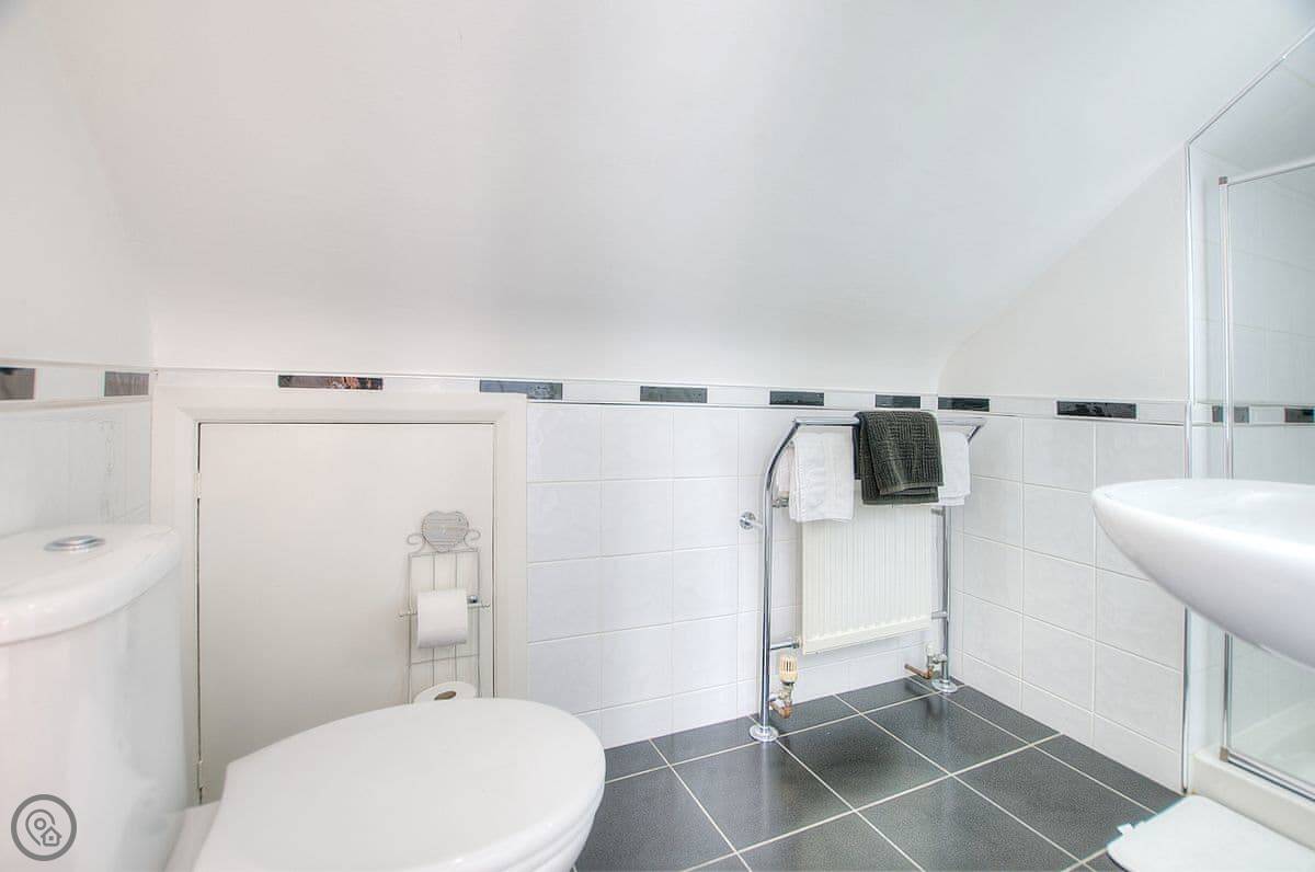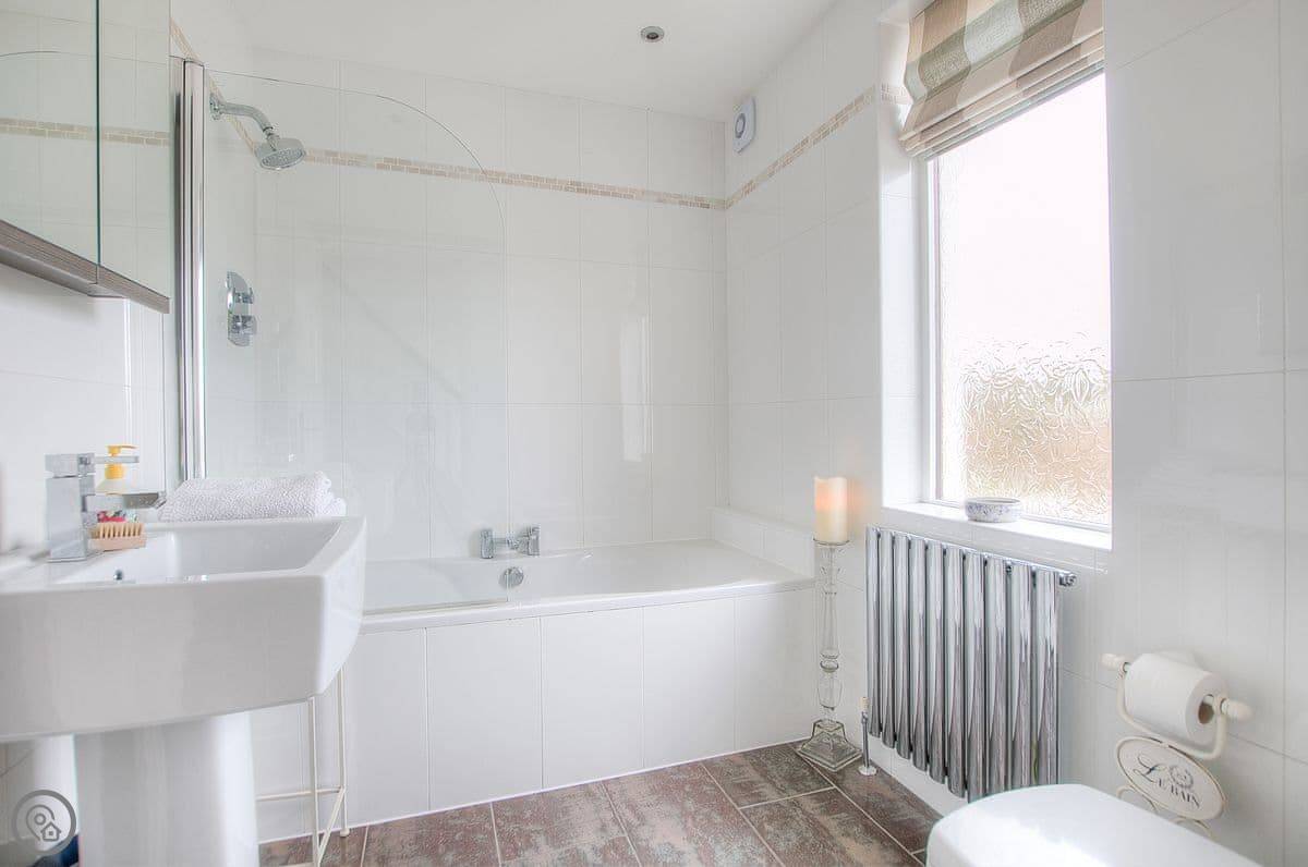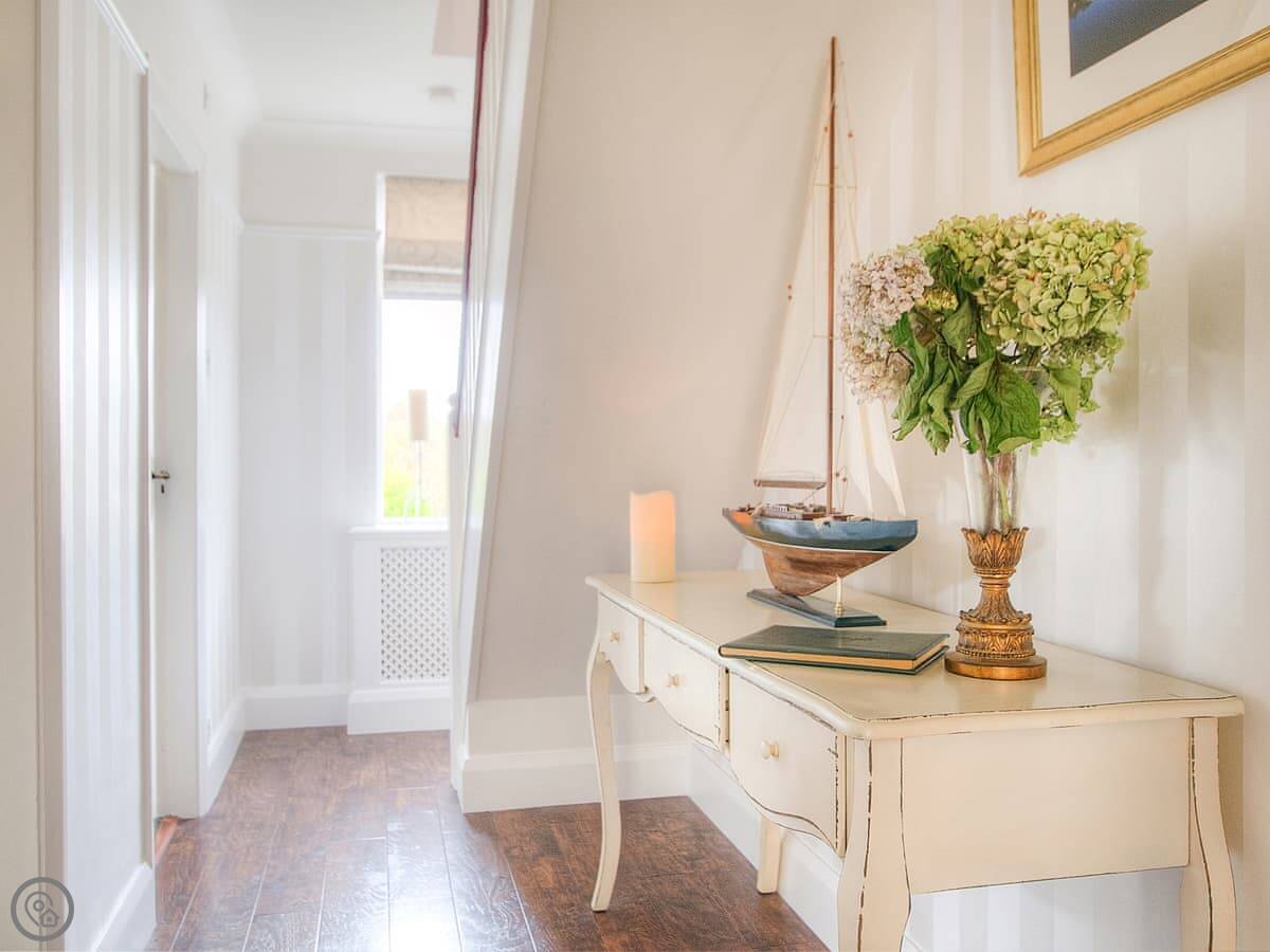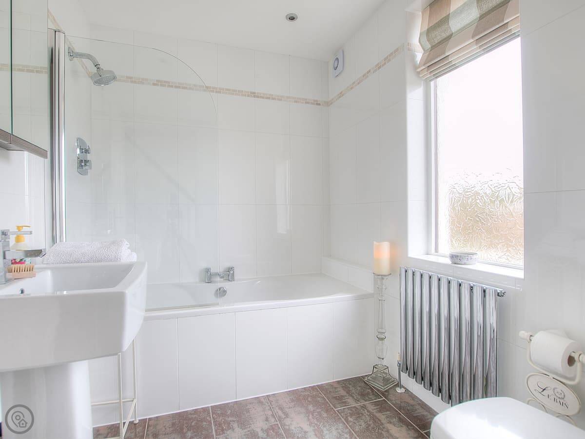 It sleeps six. Three bedrooms, two bathrooms. One bedroom is on the ground floor, which is handy. It's got a 4 Star rating. It's a well-kept, modern place.