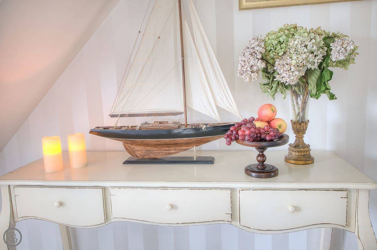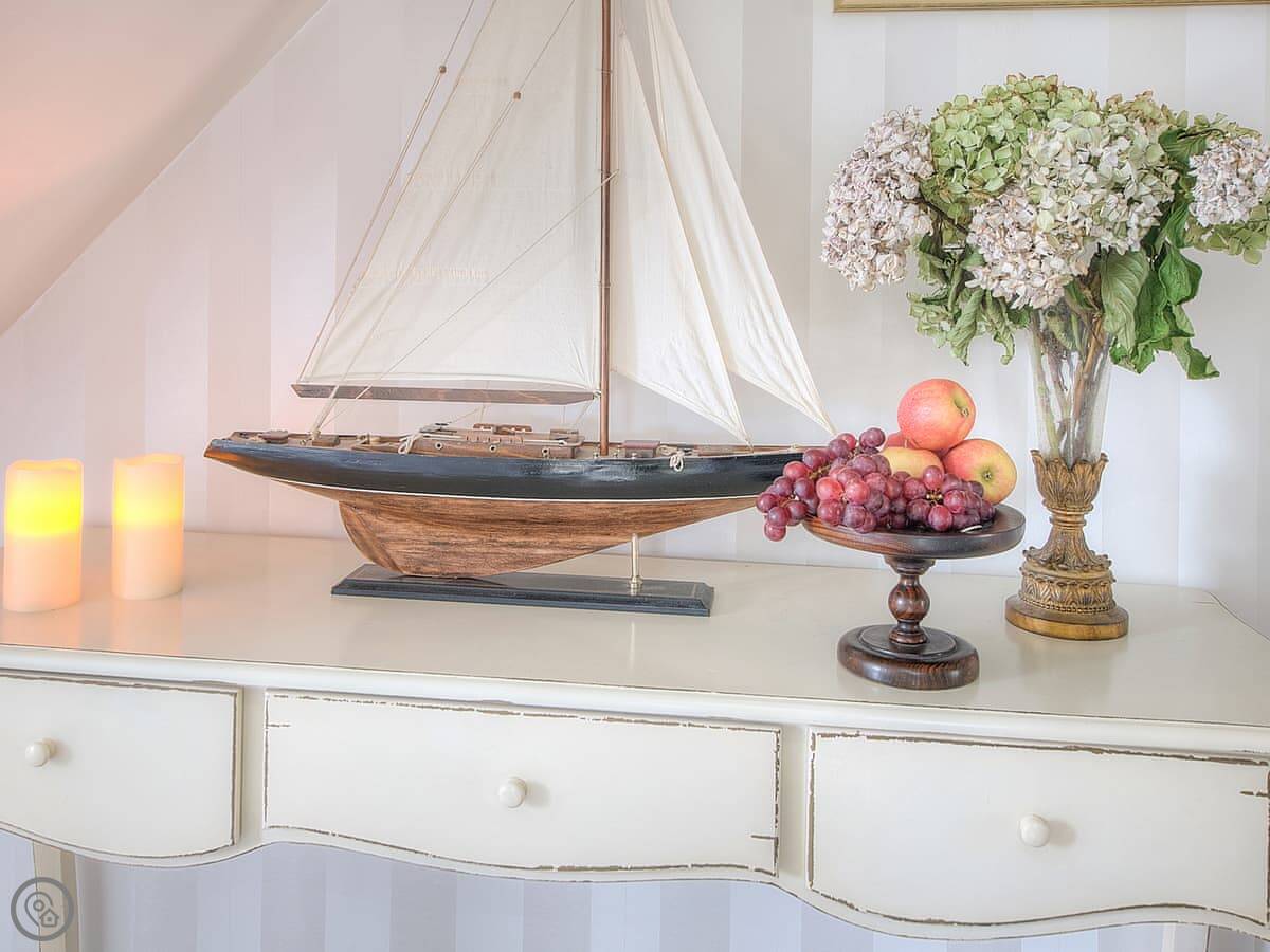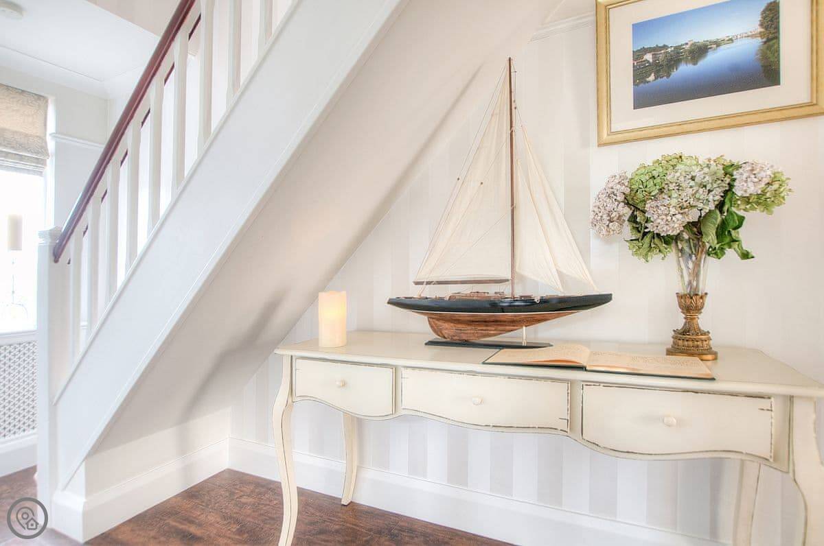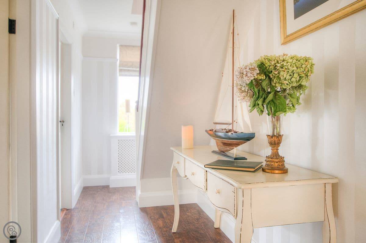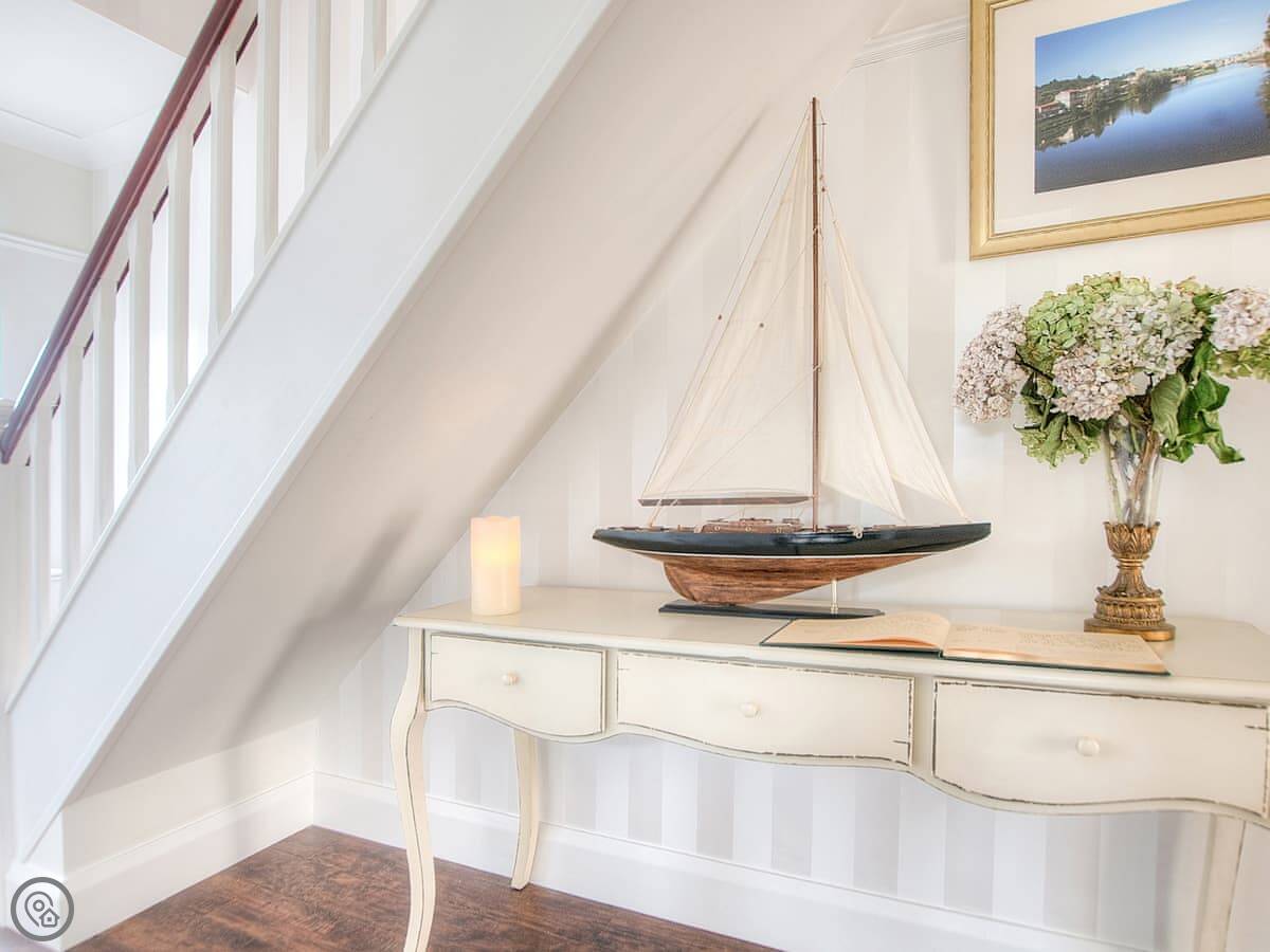 It sleeps six. Three bedrooms, two bathrooms. One bedroom is on the ground floor, which is handy. It's got a 4 Star rating. It's a well-kept, modern place.