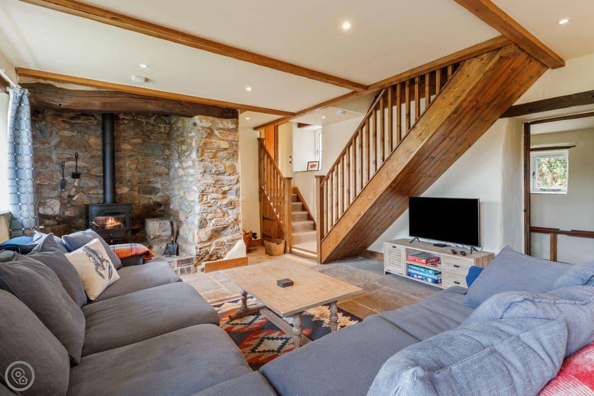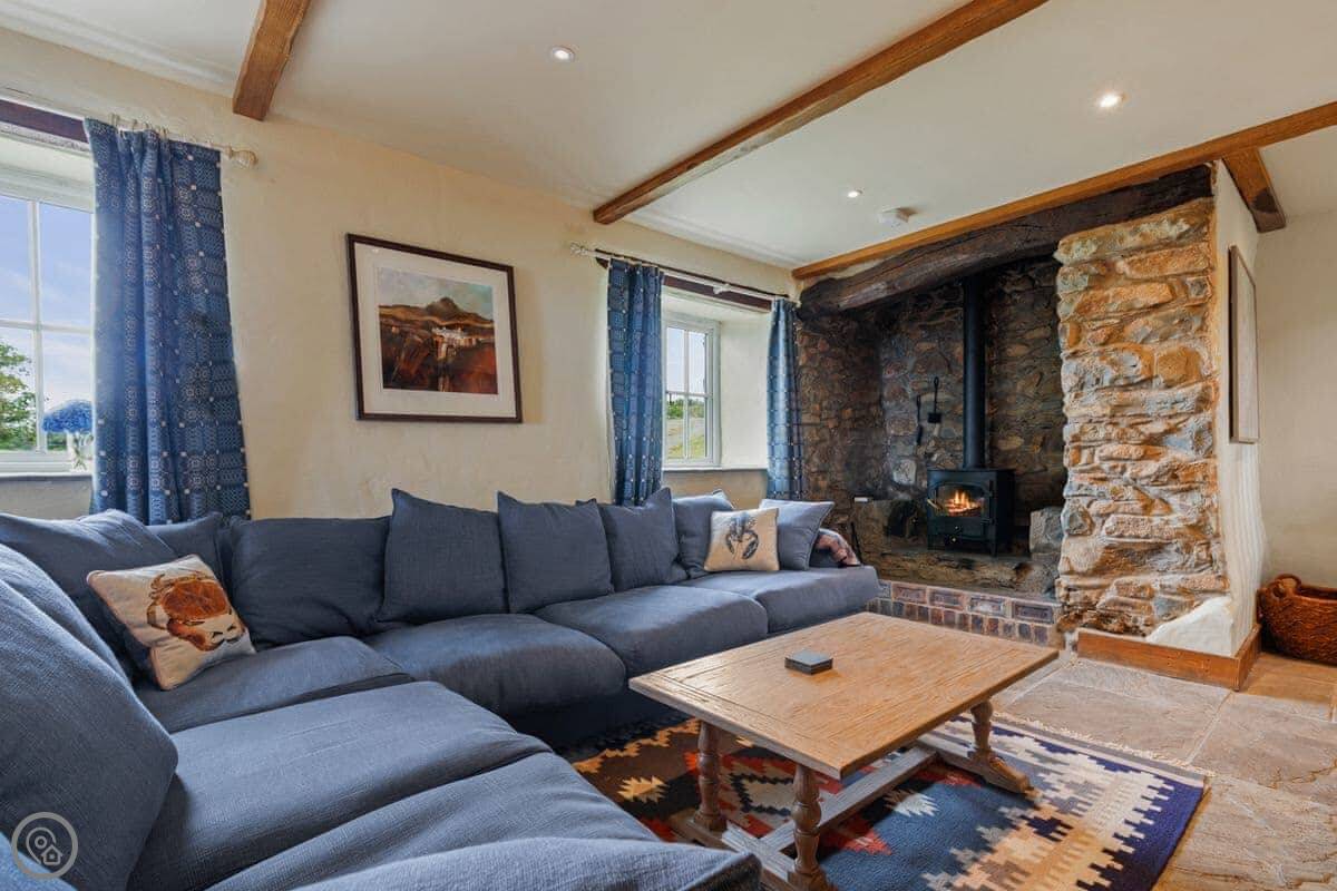 A rural retreat just 2. 4 miles from the coast at Cwm yr Eglwys and 2 miles from Pwllgwaelod. Exposed stone walls, an inglenook fireplace with wood burner, a large comfy L shaped sofa, television and a two-way staircase set the tone for rest and relaxation. Holiday cooking is a joy in the well-equipped farmhouse kitchen with a Nespresso coffee maker, food processor, electric oven, microwave, Range, gas hob, fridge and dining area.