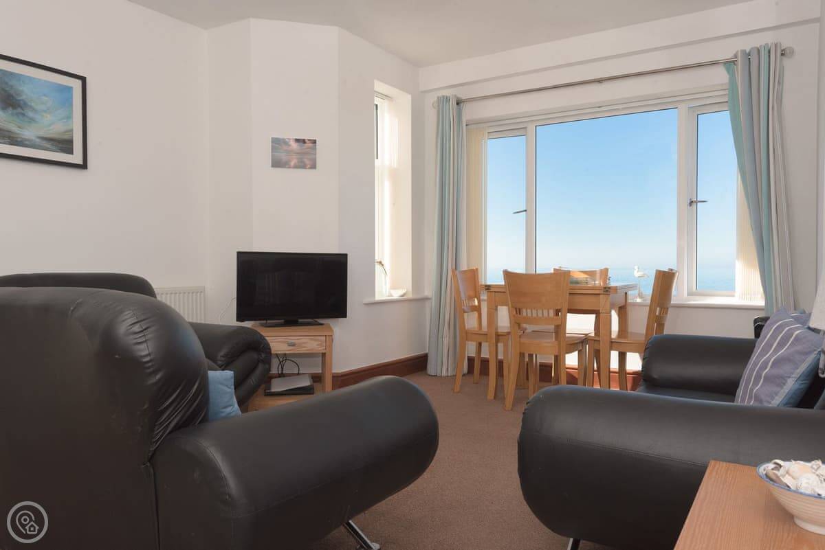 Shells is part of a five apartment complex. It offers well-equipped accommodation throughout, with two bedrooms, one double and one single, sleeping a maximum of three people. The budding chef on holiday will find the cupboards well stocked with everything you need to cook up some tasty homemade meals if you choose to eat in. Fresh eggs are available on site - perfect to whip up a delicious breakfast! Take a seat at the dining table and enjoy the wonderful sea views alongside your meal. The bathroom, with views across the hills from the bath, is ideal for a long soak after a day adventuring outside. For those evenings when you want to hide away inside the living area comes with a TV and DVD player, just remember to bring your favourite DVDs with you. There is a communal enclosed grass garden at the rear of the property, shared with the other apartments on site. Here, you can sit back and relax on the furnished patio and enjoy a BBQ in the summer months.