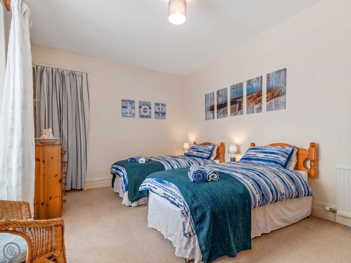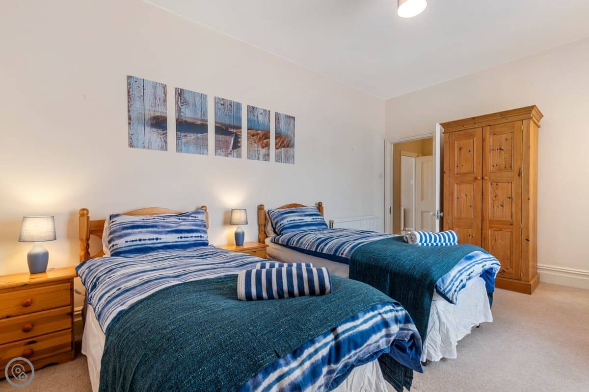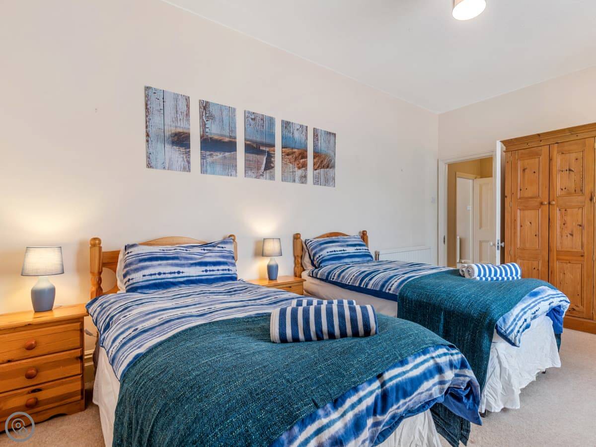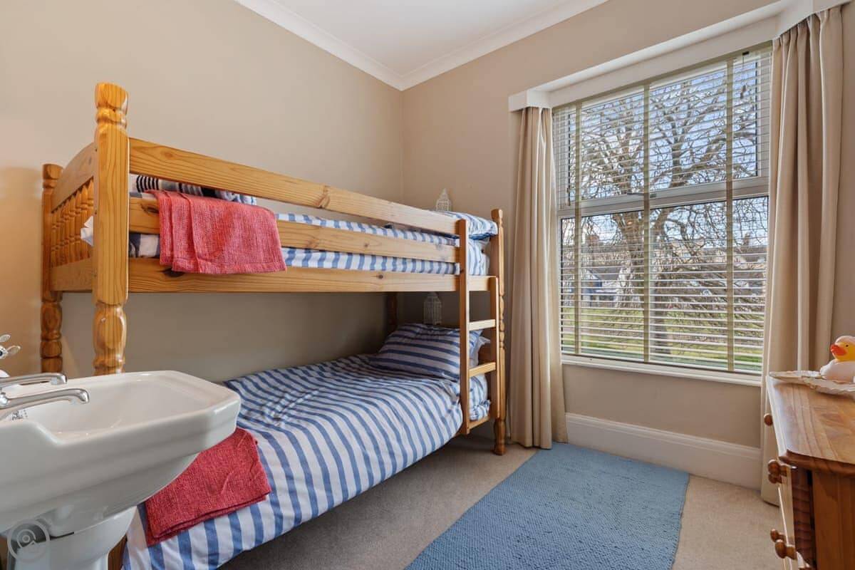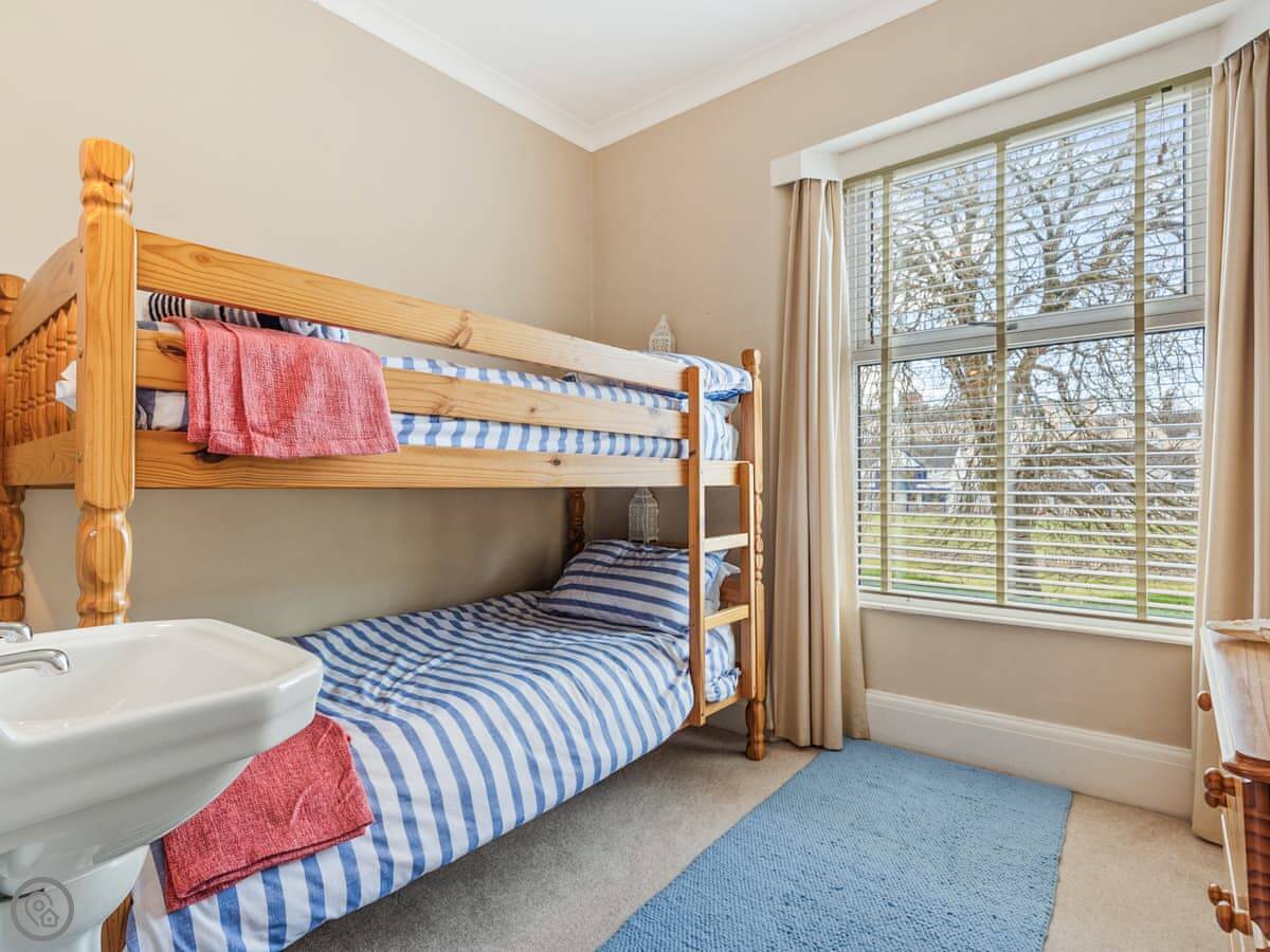 It sleeps eight in four bedrooms. Two doubles, a twin, and a bunk room. There are two bathrooms, one upstairs and a small shower room downstairs. It's got a 4 Star rating.