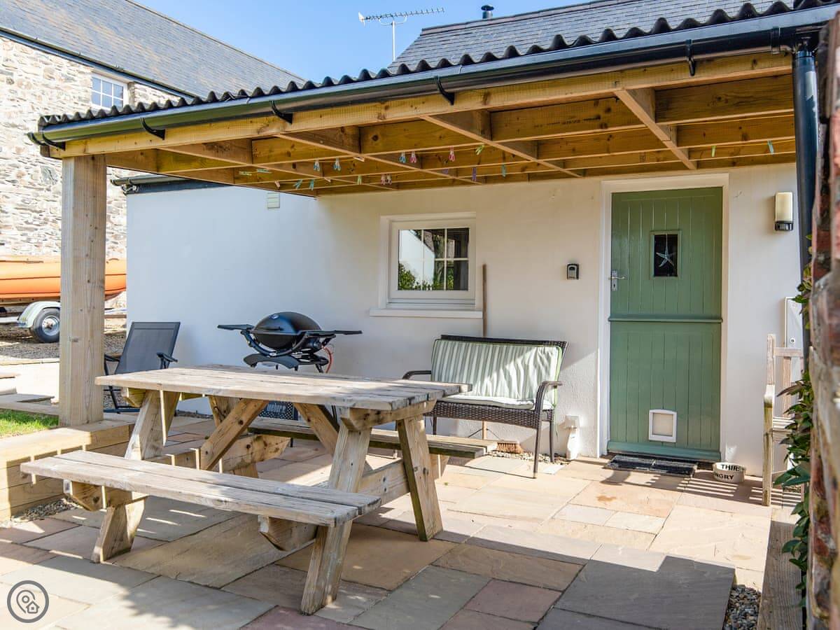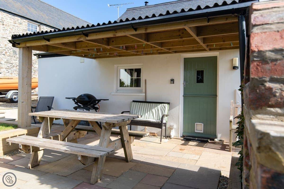 The place is clean and comfortable. The kitchen has what you’d need, including a dishwasher and washing machine. There’s a wood burner for cooler evenings. Outside is a south-facing patio with a table. There’s a gas BBQ and a pizza oven. Instructions for the oven are in the cottage.
