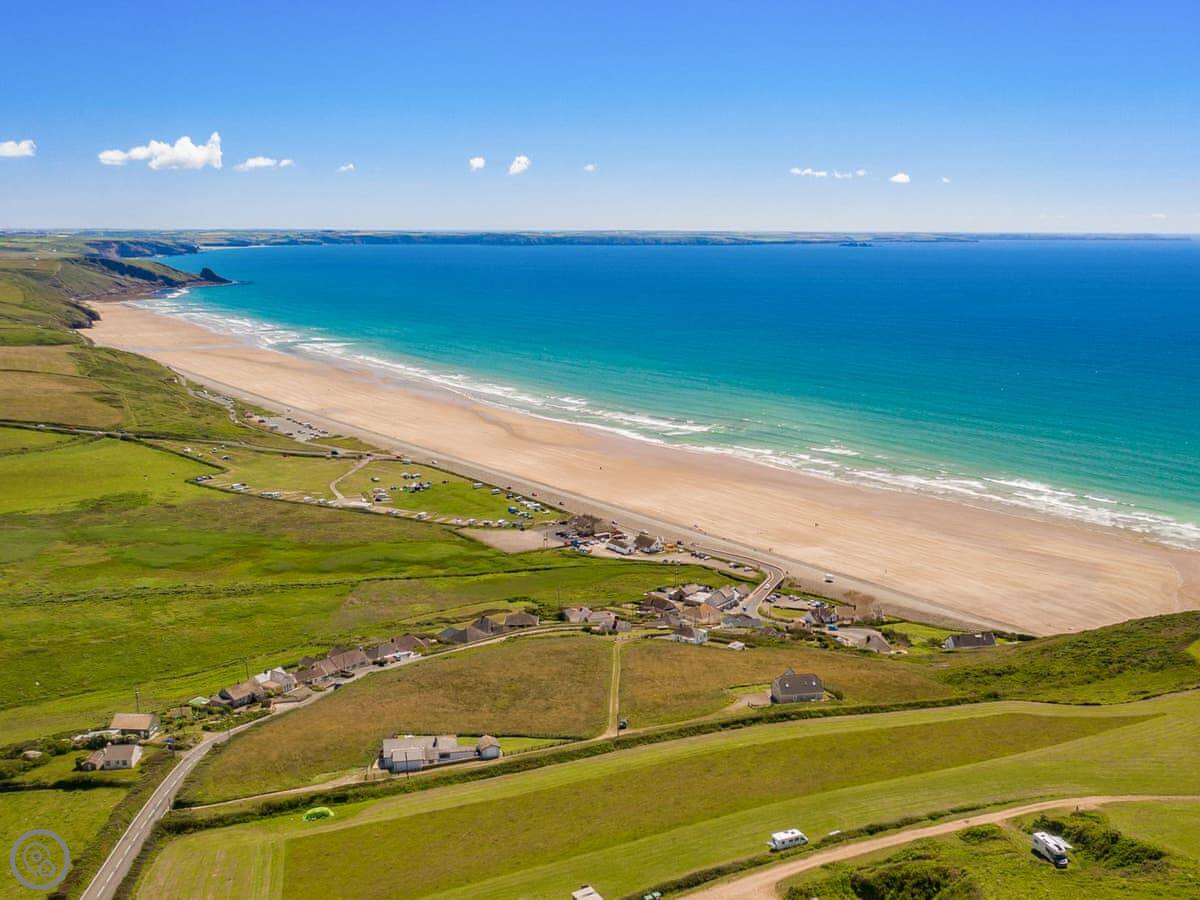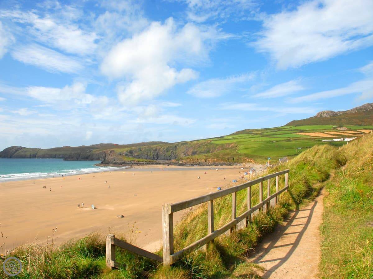 You’re up in the village. There’s a local pub a short walk away. The coast is about six miles down the hill. Good beaches like Whitesands and Abermawr are within a fifteen minute drive. The Pembrokeshire Coast Path is easily accessible from there.