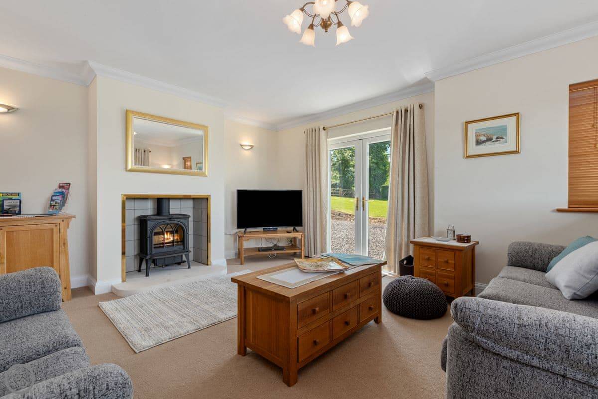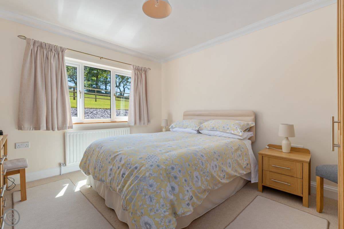 Four bedrooms - two king-size rooms and a single at the back of the property with views over the lawn and fields beyond, and another smaller single room with countryside views, suitable for children or adults. The bedrooms are flanked either side by well thought out living spaces. The living room is to the right-hand side of the property and is a calming, relaxing space, as well as comfy sofas and a large TV for movie nights. The new kitchen has a distinct countryside vibe, with modern wooden units upgrading this from the kitsch to the contemporary. This property perfectly combines practicality and luxury.