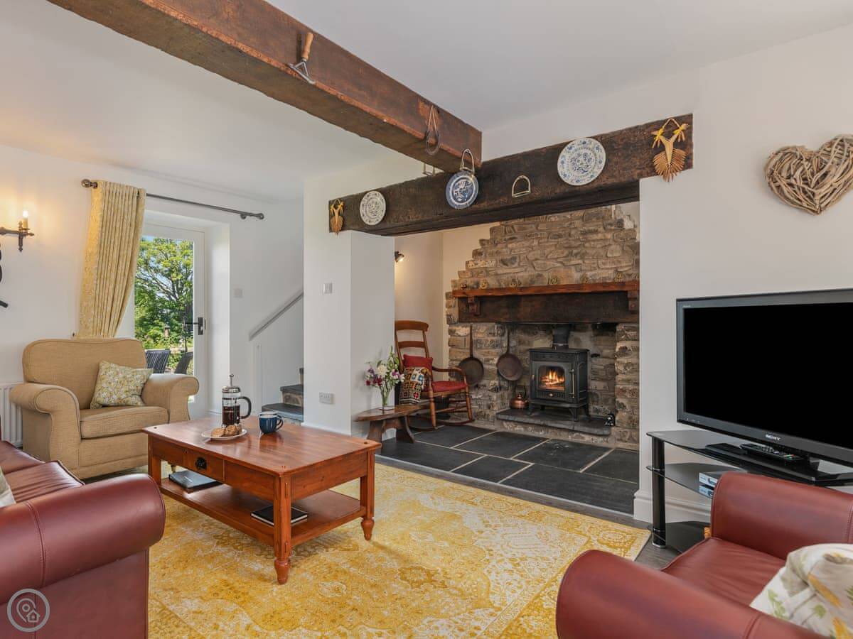 The downstairs accommodation provides a spacious open plan living space with a modern kitchen along with great Wi-Fi. The living area has comfortable good quality sofas and armchairs and a magnificent Inglenook fireplace with a wood-burning stove for cosy evenings all year round. There is a cloakroom with toilet on the ground floor. Upstairs there are three bedrooms sleeping up to 6 people, a double, a king and a twin, plus a family bathroom and a separate shower room.