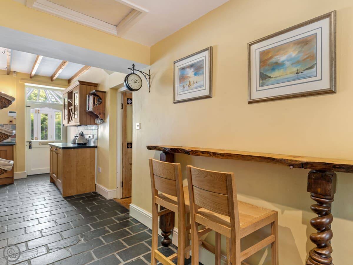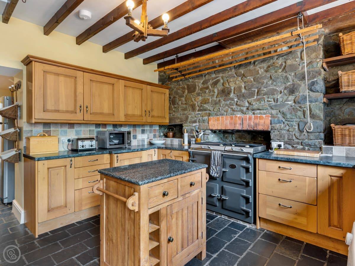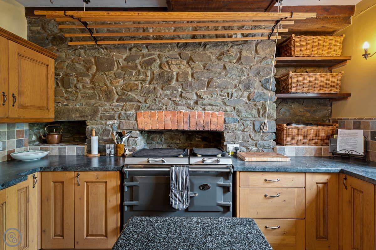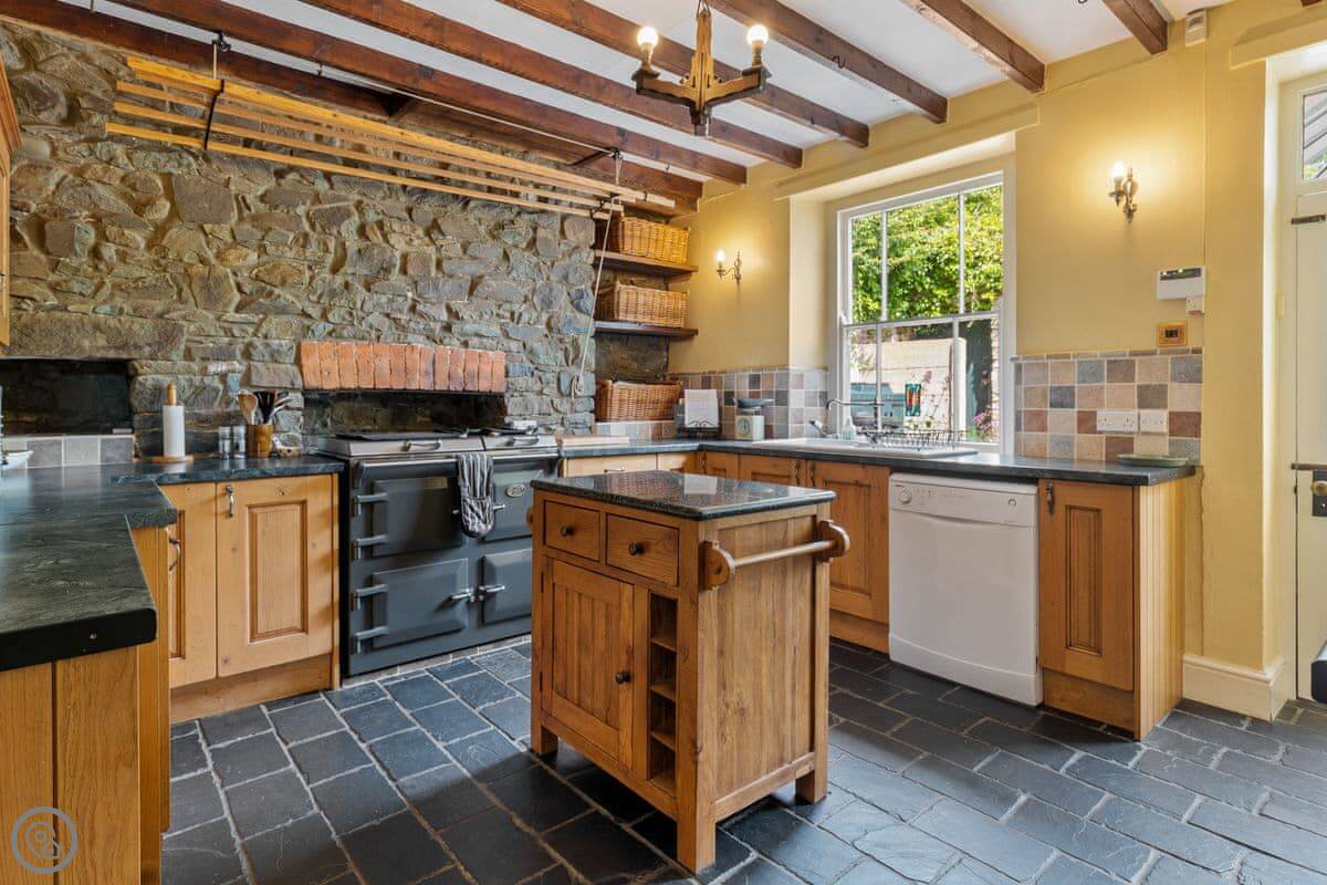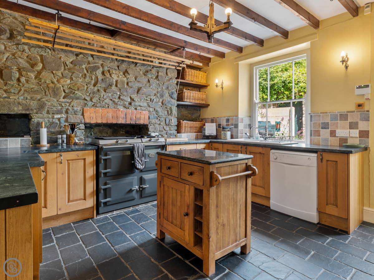 A great choice for families or friends looking for a spacious place to stay this pristinely presented period property makes a perfect base to explore this spectacular section of the Ceredigion coast and countryside. Plenty of hot water, comfy beds, a well-tuned piano, great wifi, and a fabulous kitchen, you’ll be delighted with all of it! The property sits above the small village of Llwyndafydd and is elevated above a secluded ancient wooded valley that links the village with the sea at Cwmtydu cove. You can walk to Cwmtydu beach in 30 minutes. A super choice of kitchen equipment and appliances to make your stay a culinary pleasure if you love to cook. There is an additional breakfast bar off the main kitchen area with a Welsh dresser. The living room has an open fire with comfy sofa seating and there’s an additional sitting room/garden room with a further two sofas, a work desk with an internet point and French doors that lead onto the garden terrace. Great for families looking for some peaceful separation during their holiday!