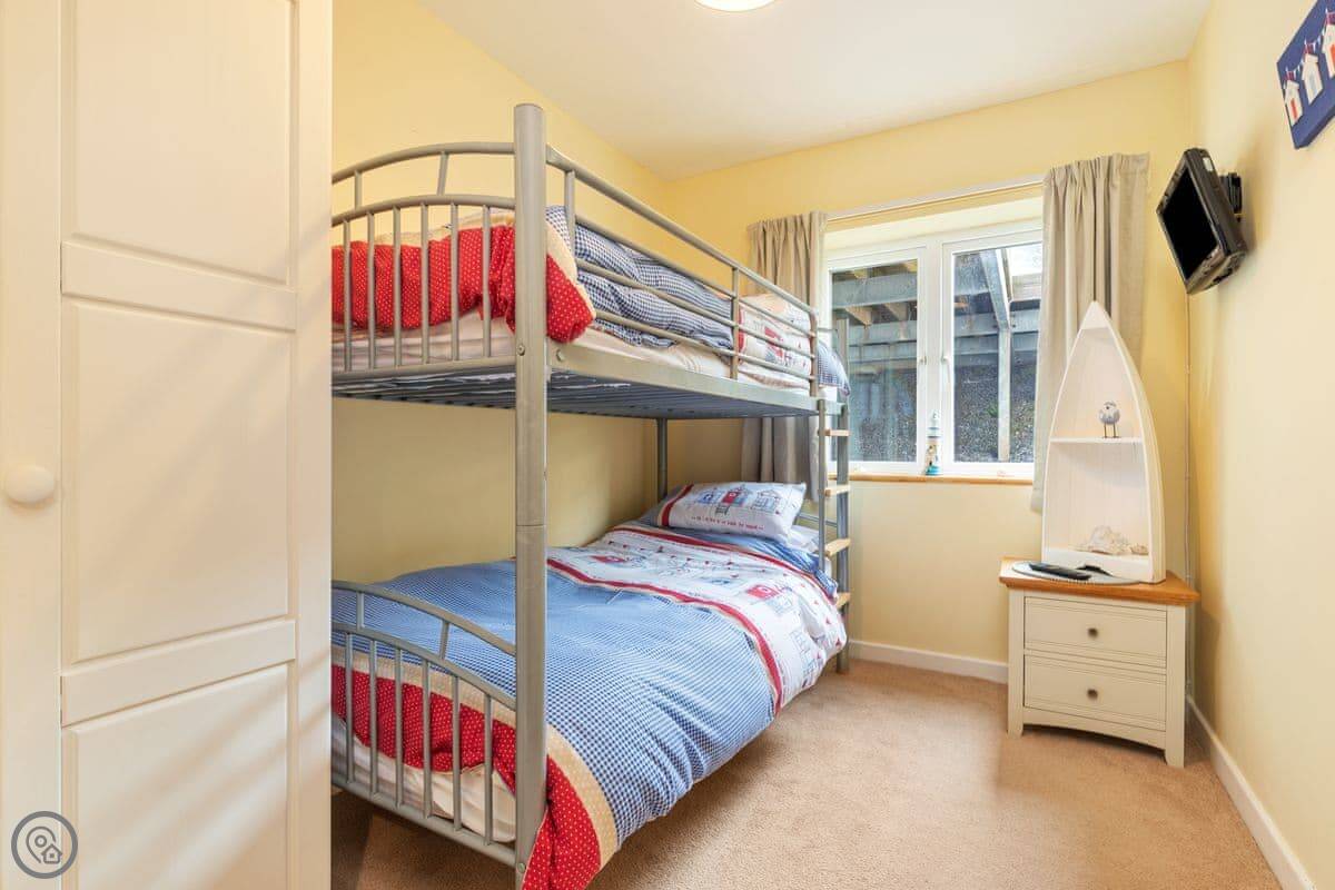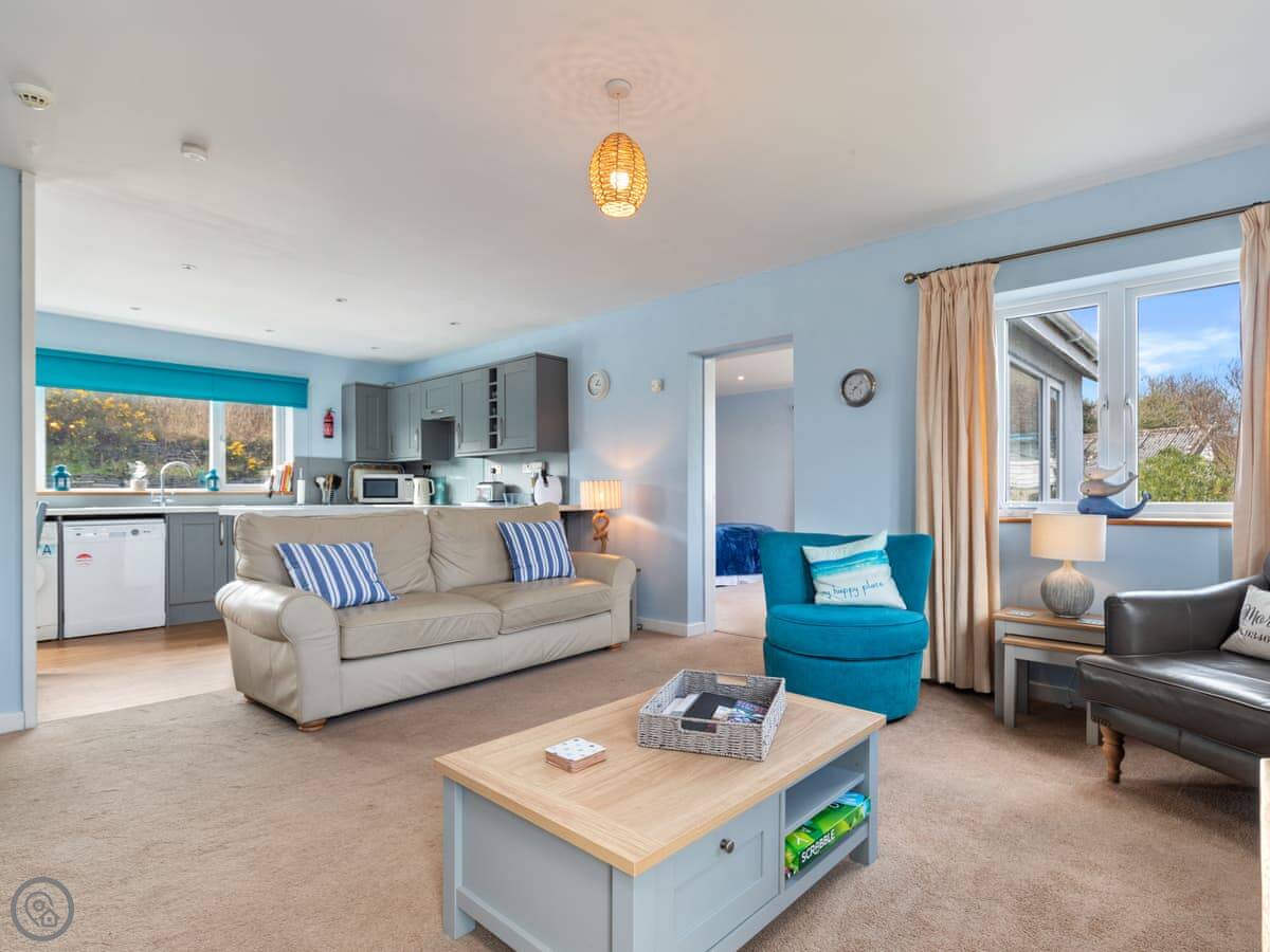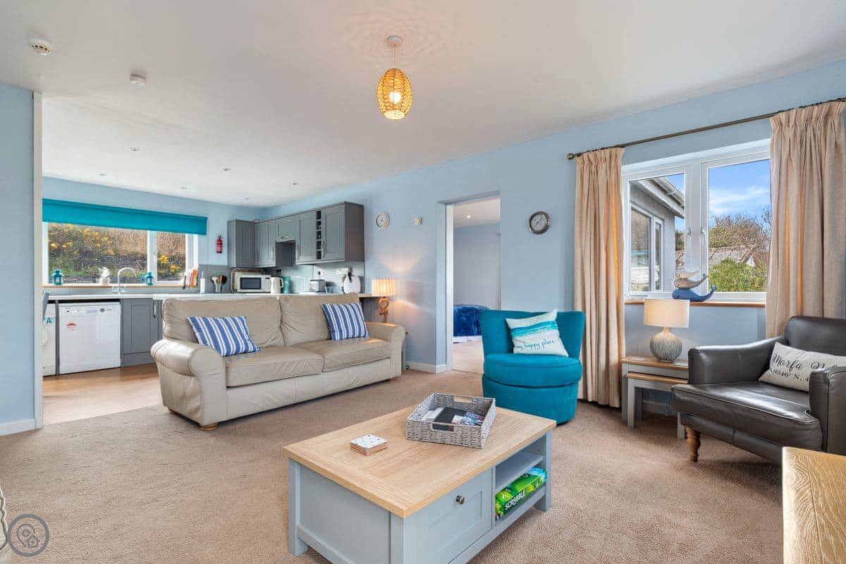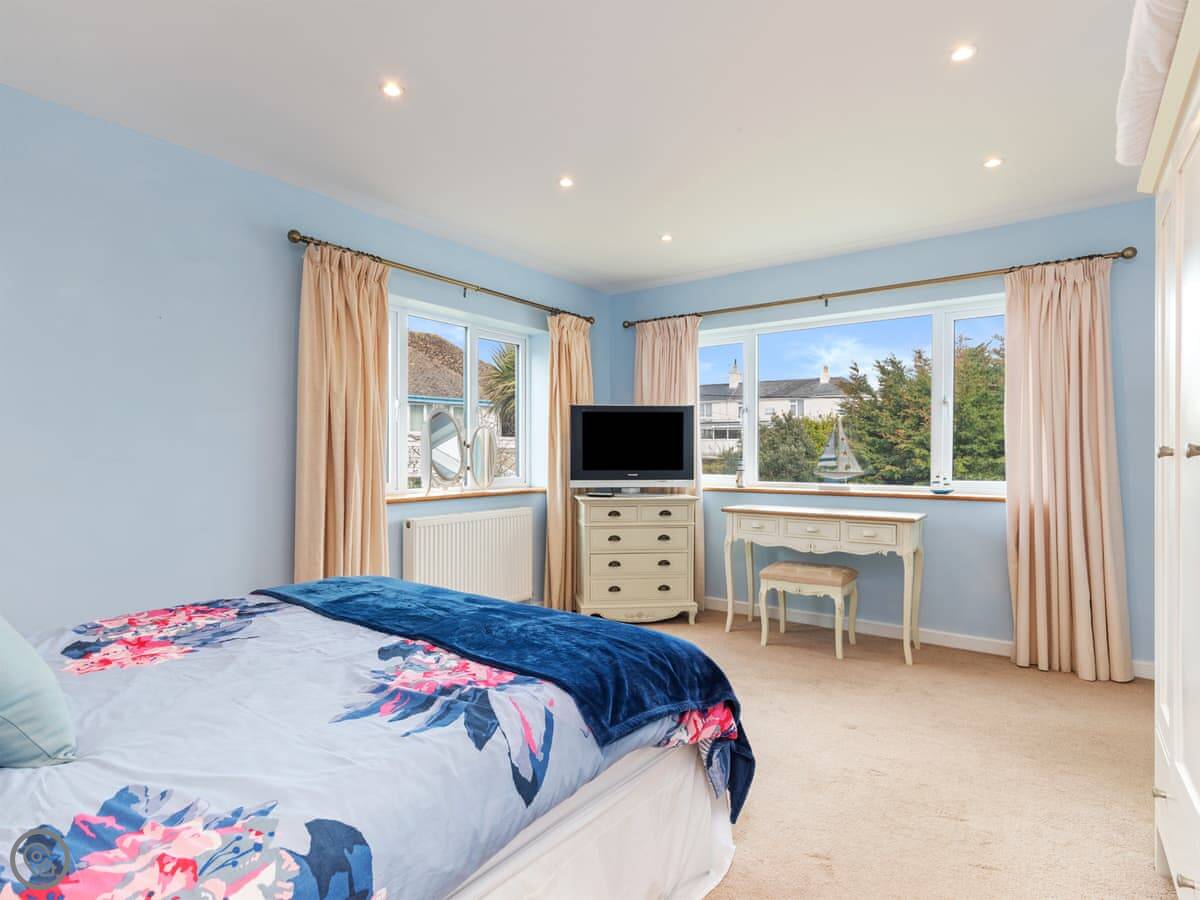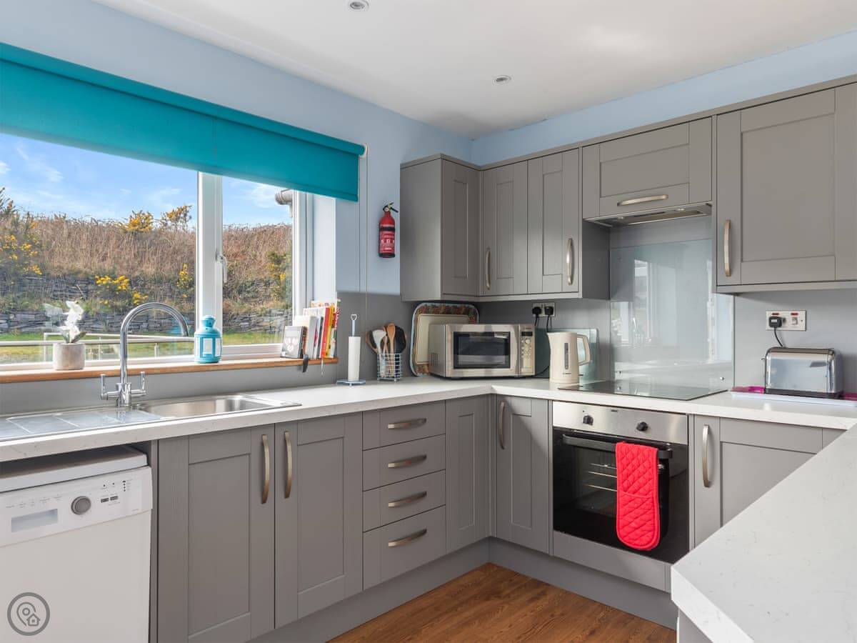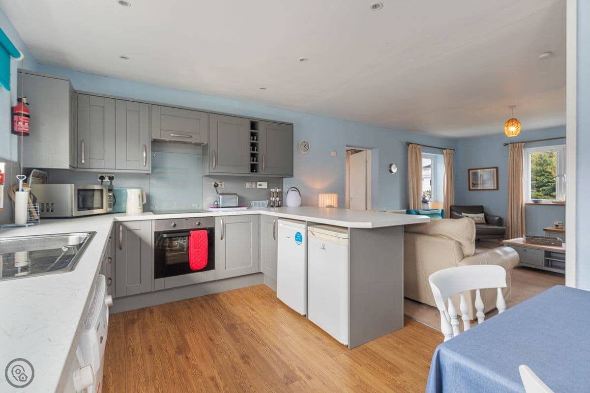 Yards from the beautiful sweeping sandy bay of Morfa Nefyn this spacious beachside property, sleeping 8, has been renovated in September 2021 to provide a beautifully appointed open plan 1st-floor living area with an adjoining master bedroom with en-suite facilities. The further three bedrooms, located on the ground floor, are stylishly decorated and consist of one double room with a kingsize bed and en-suite with bath and shower cubicle, one twin room and one room with bunks. The family bathroom can also be found on the ground floor, perfect for a relaxing bubble bath at the end of a day exploring the local area. The open plan living area is the perfect place for the family to gather over breakfast or dinner, to plan the day ahead or relax with some music in the evening. Outside is decking with dining table and chairs for eight and barbecue, is a great place for alfresco dining and unwinding at any time of day. A balcony at the front equipped with a bistro set is the perfect place to enjoy the morning sun with a coffee and watch the world go by. One well behaved dog is welcome at this wonderful, family-friendly property.