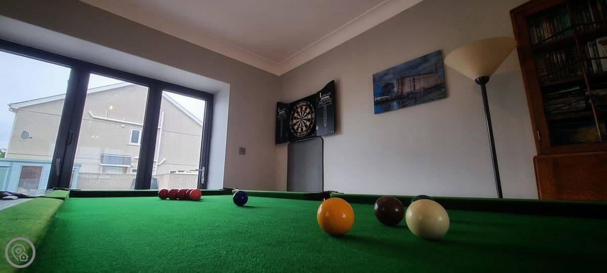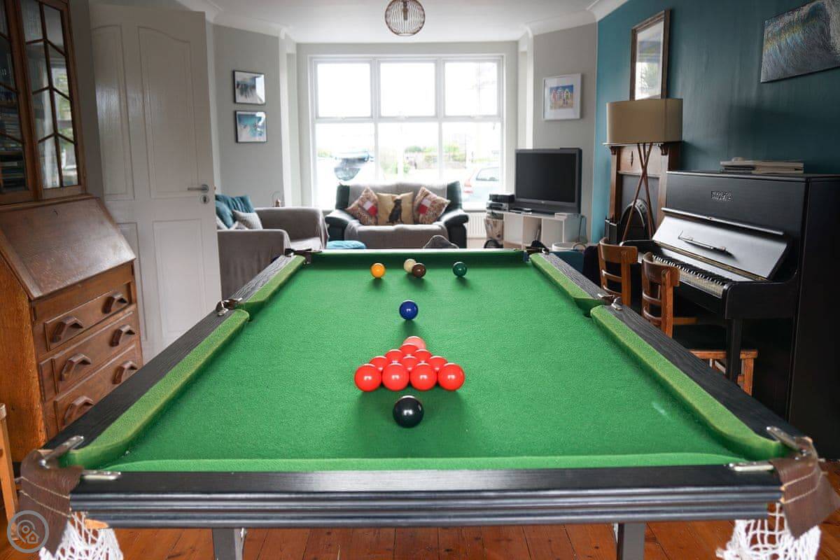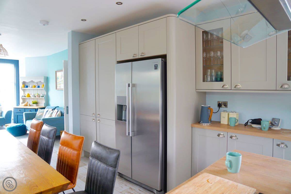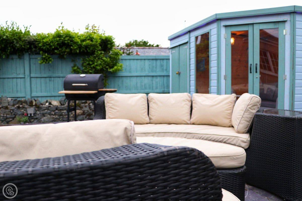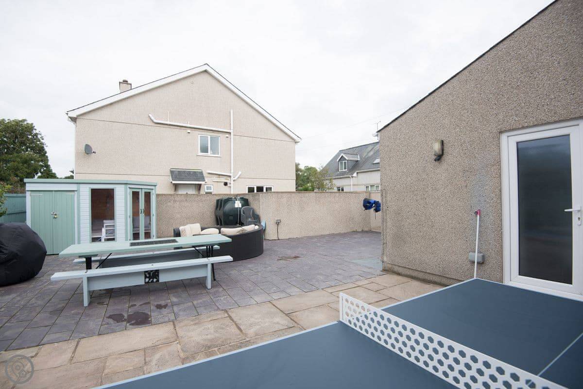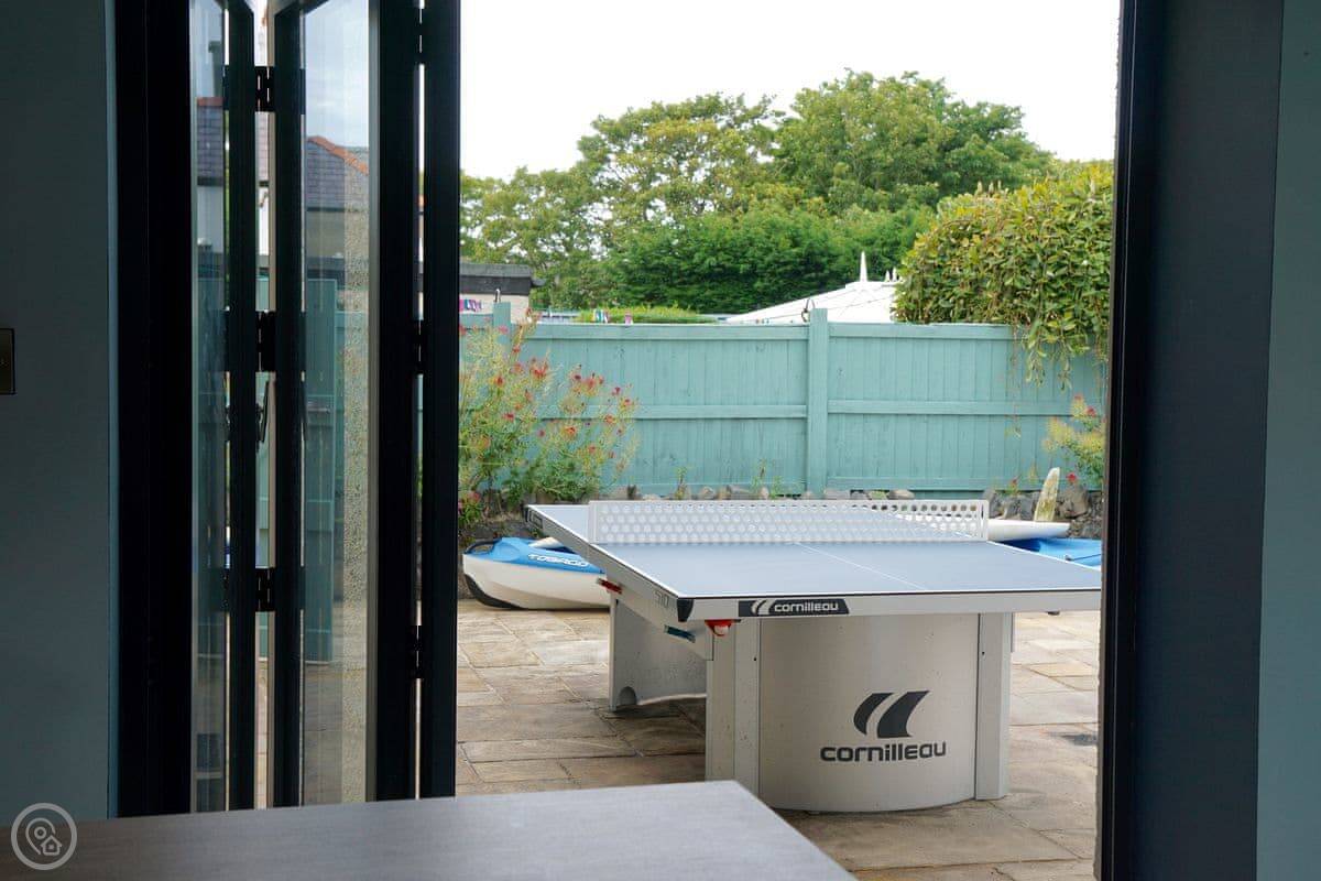 The property has five generous bedrooms, three bathrooms, a downstairs toilet and living room with open fire. The well-appointed kitchen mixes modern Neff appliances with a 5 oven Aga, perfect for rustling up everything from beach picnics to elaborate holiday dinners for friends and family. Outside, you’ll find parking for up to four cars and an electric 7kW car charging point. The large paved garden area at the back of the property includes an outdoor shower, summerhouse, rattan seating, a large dining table and outdoor table tennis table; however if the rain interrupts your outdoor plans, there is a 6ft snooker table and dart board, karaoke machine, two real fires, free Wi-Fi, TVs, Netflix and plenty of DVDs and books indoors, to keep you entertained every day and evening.