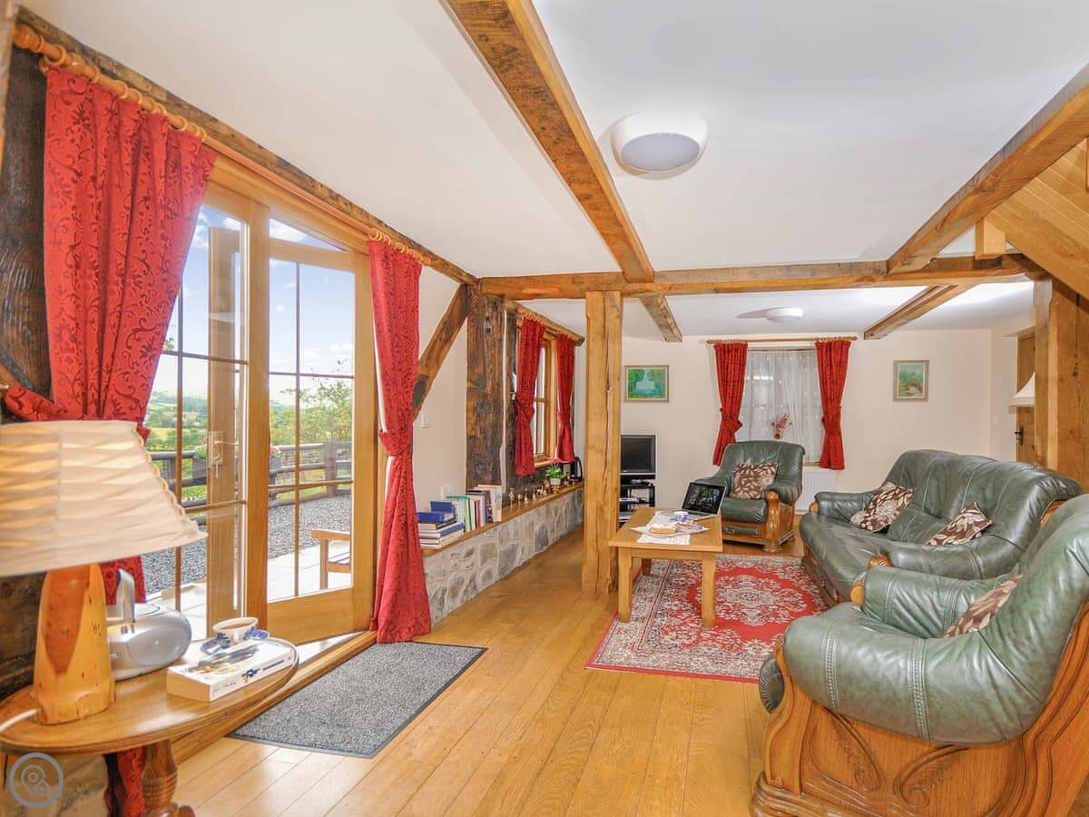 Llwyn Coppa Barn is in Adfa, near Newtown. It’s an 18th century stone barn we restored ourselves. It’s on its own, down a private drive off a lane. The views are good, out over the fields towards the Kerry Ridgeway.