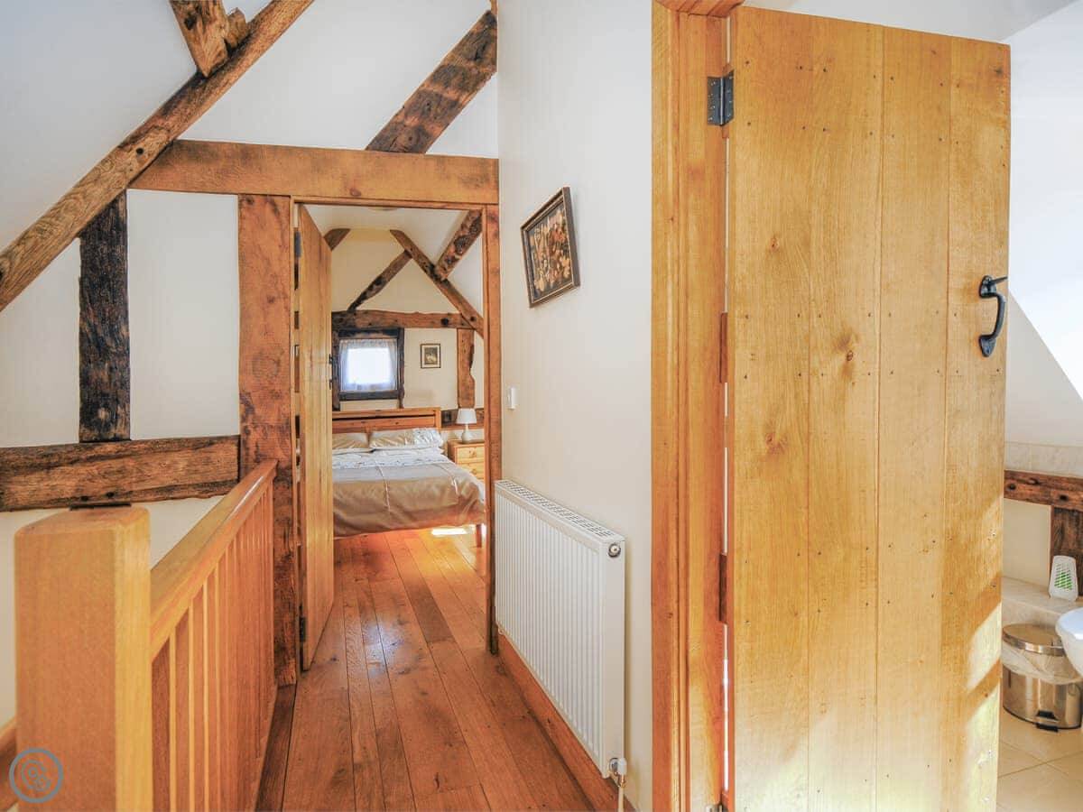 It sleeps four in two bedrooms and has a family bathroom. It has a 4 Star rating. That means the finish is good, with proper Welsh oak floors and a lot of original beams left in. The doors are all Suffolk latches, which we made here. It feels solid.
