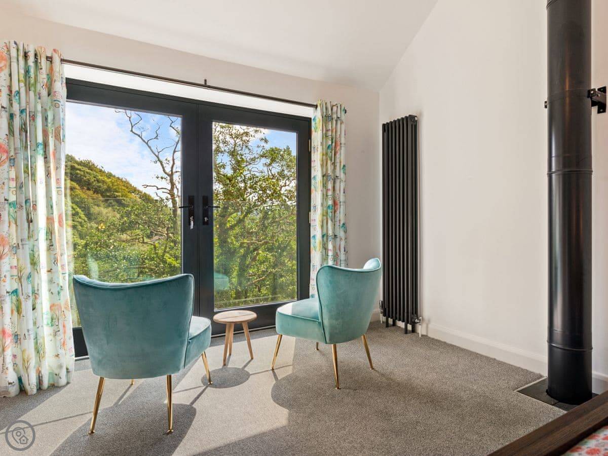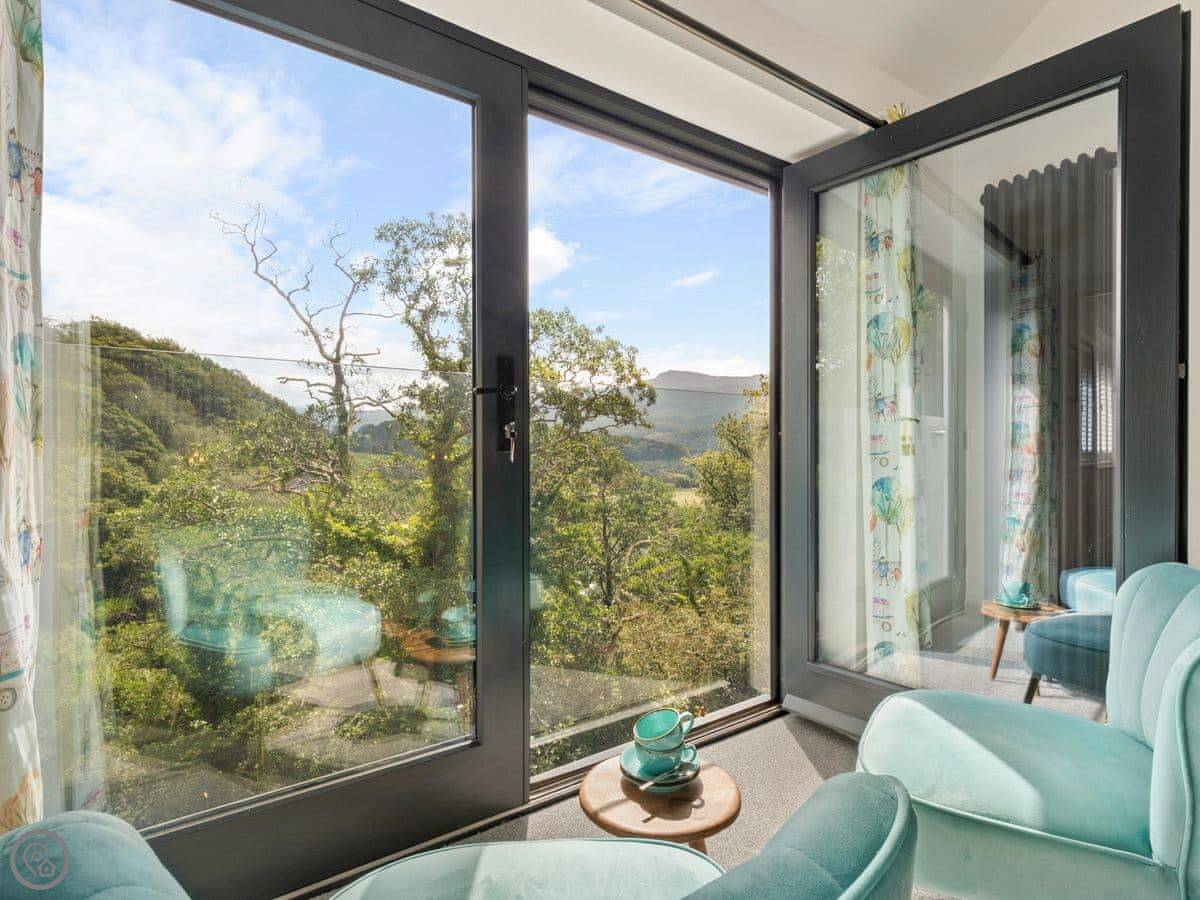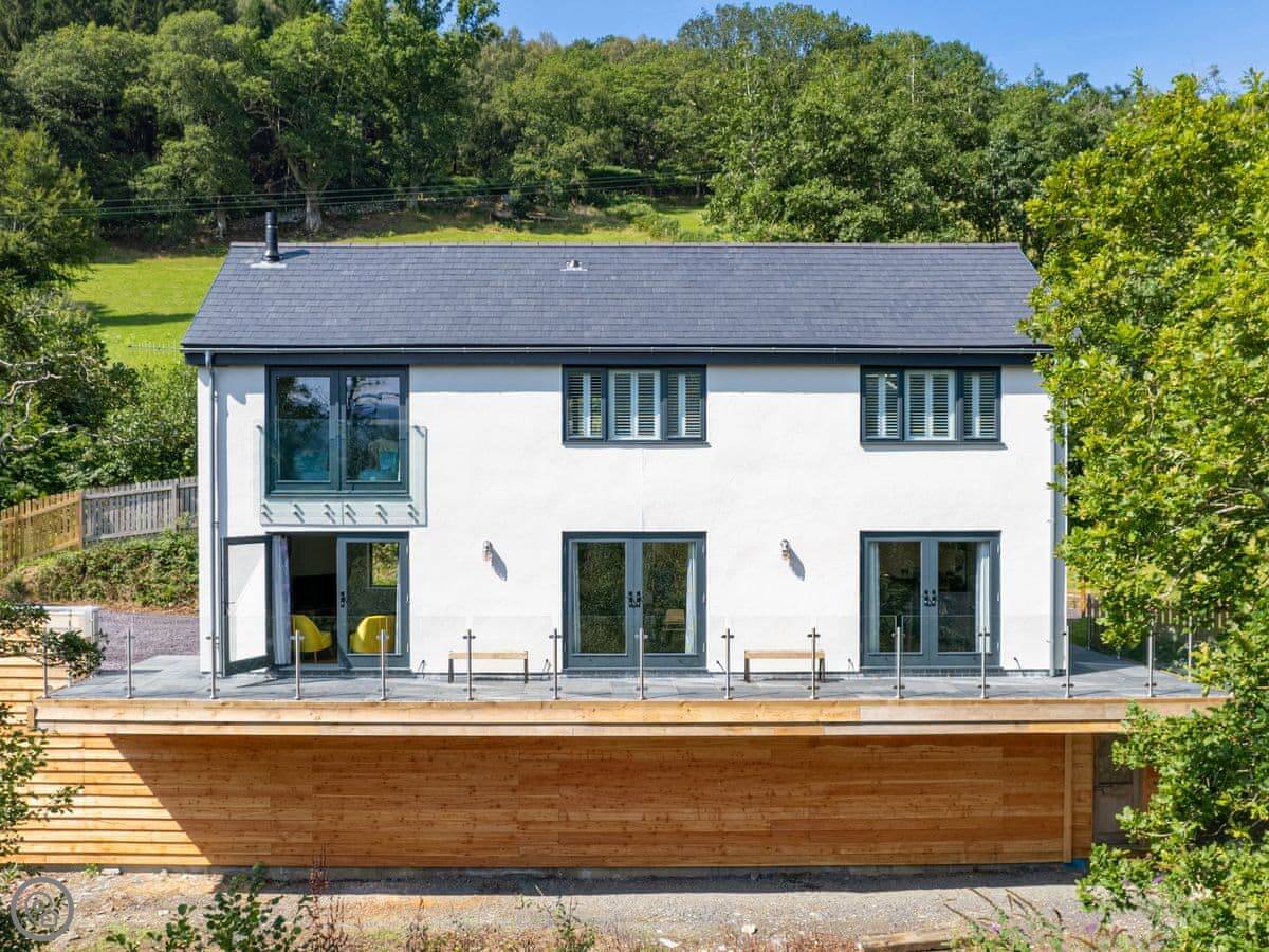 All the downstairs rooms have big double patio doors leading onto a full-length balcony with outside benches. In the lounge, the Nordic log burner is the focal point once the light fades outside and there’s plenty to do indoors when you’re not out exploring. A large open plan kitchen, dining and living space has the wow factor, it’s filled with light, creating a truly relaxing space to gather for a meal. All the modern features provide all the needs after a day playing in the Snowdonia mountains or coastal beach walks at nearby Barmouth. The contemporary property design blends seamlessly with its elevated position taking full advantage of the breath-taking views from the three sets of patio doors that open out onto a full-length balcony. The property is enclosed and is child and pet friendly.