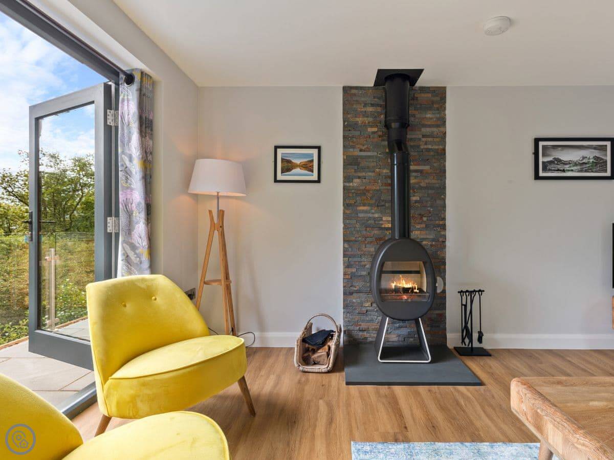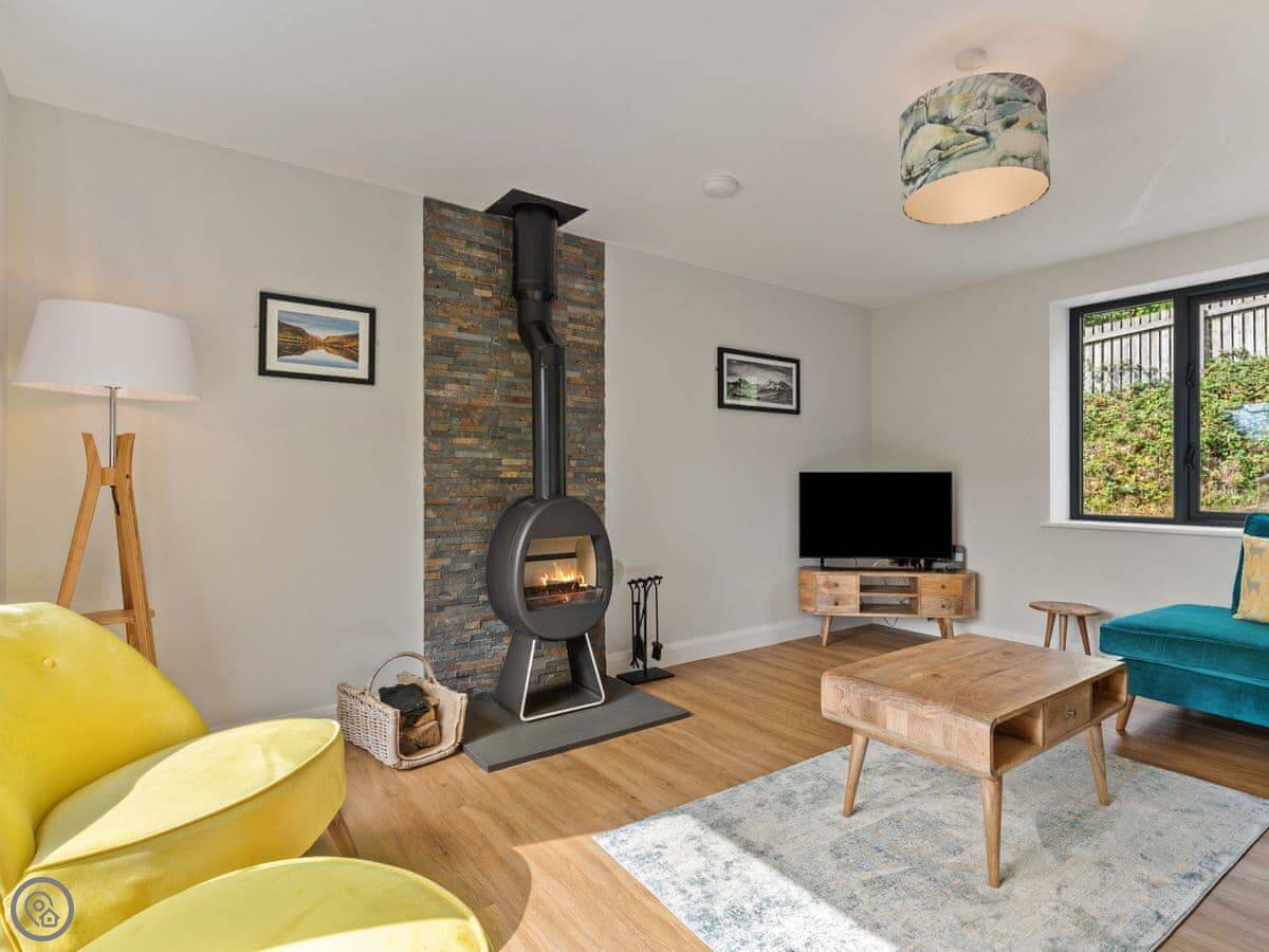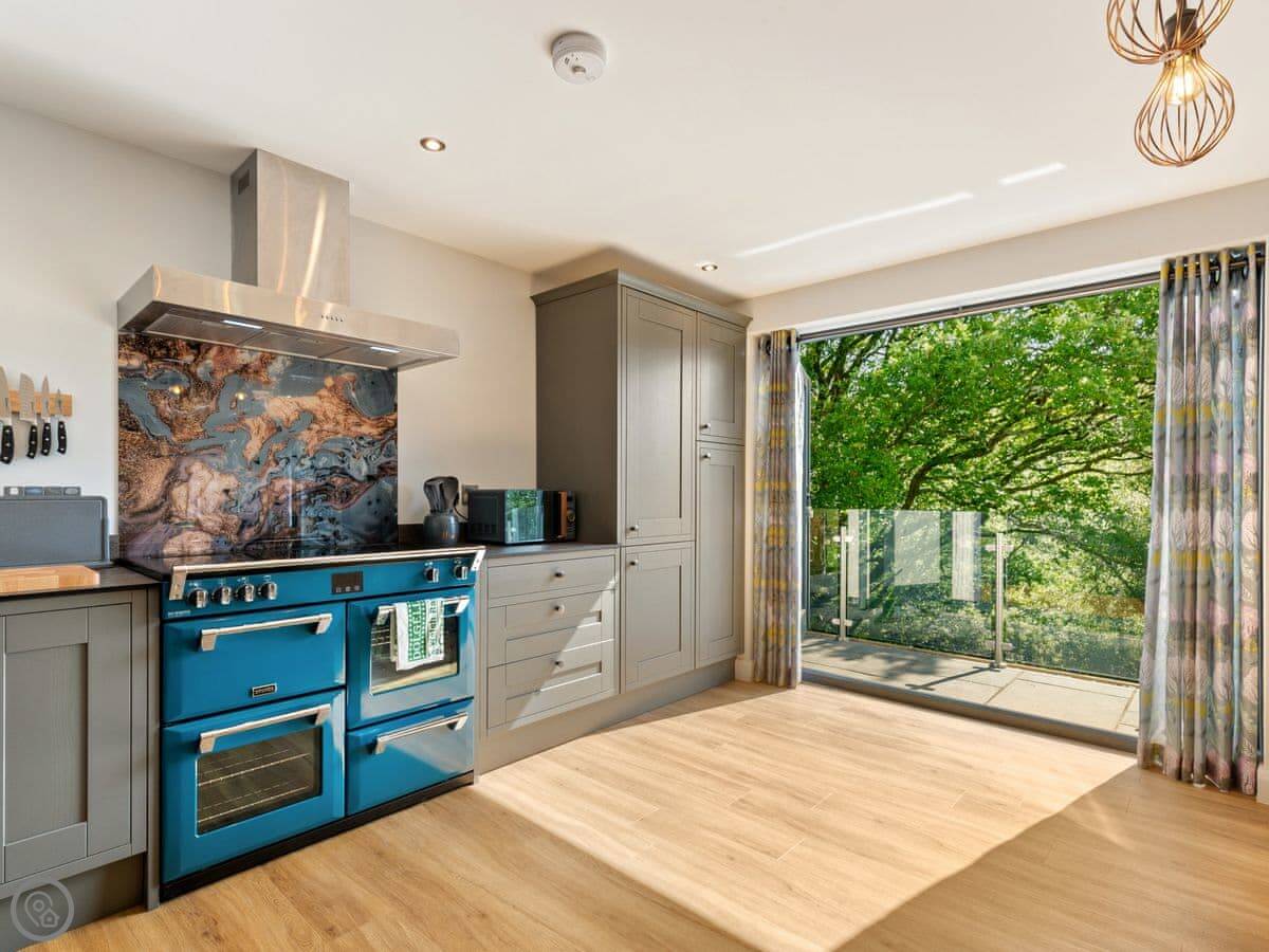 All the downstairs rooms have big double patio doors leading onto a full-length balcony with outside benches. In the lounge, the Nordic log burner is the focal point once the light fades outside and there’s plenty to do indoors when you’re not out exploring. A large open plan kitchen, dining and living space has the wow factor, it’s filled with light, creating a truly relaxing space to gather for a meal. All the modern features provide all the needs after a day playing in the Snowdonia mountains or coastal beach walks at nearby Barmouth. The contemporary property design blends seamlessly with its elevated position taking full advantage of the breath-taking views from the three sets of patio doors that open out onto a full-length balcony. The property is enclosed and is child and pet friendly.