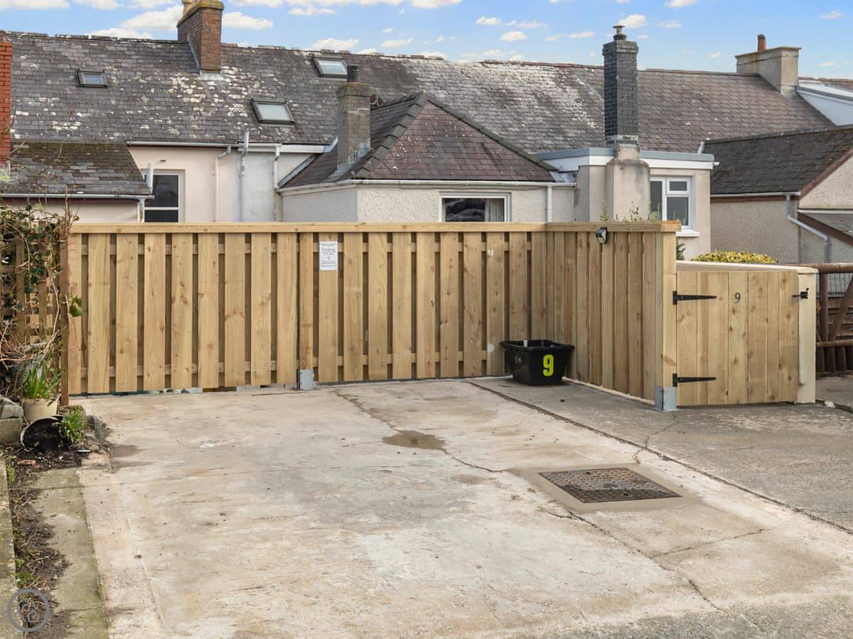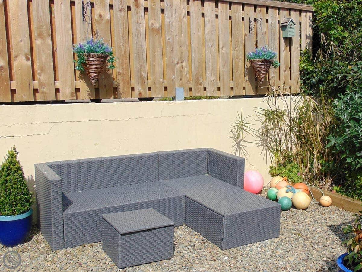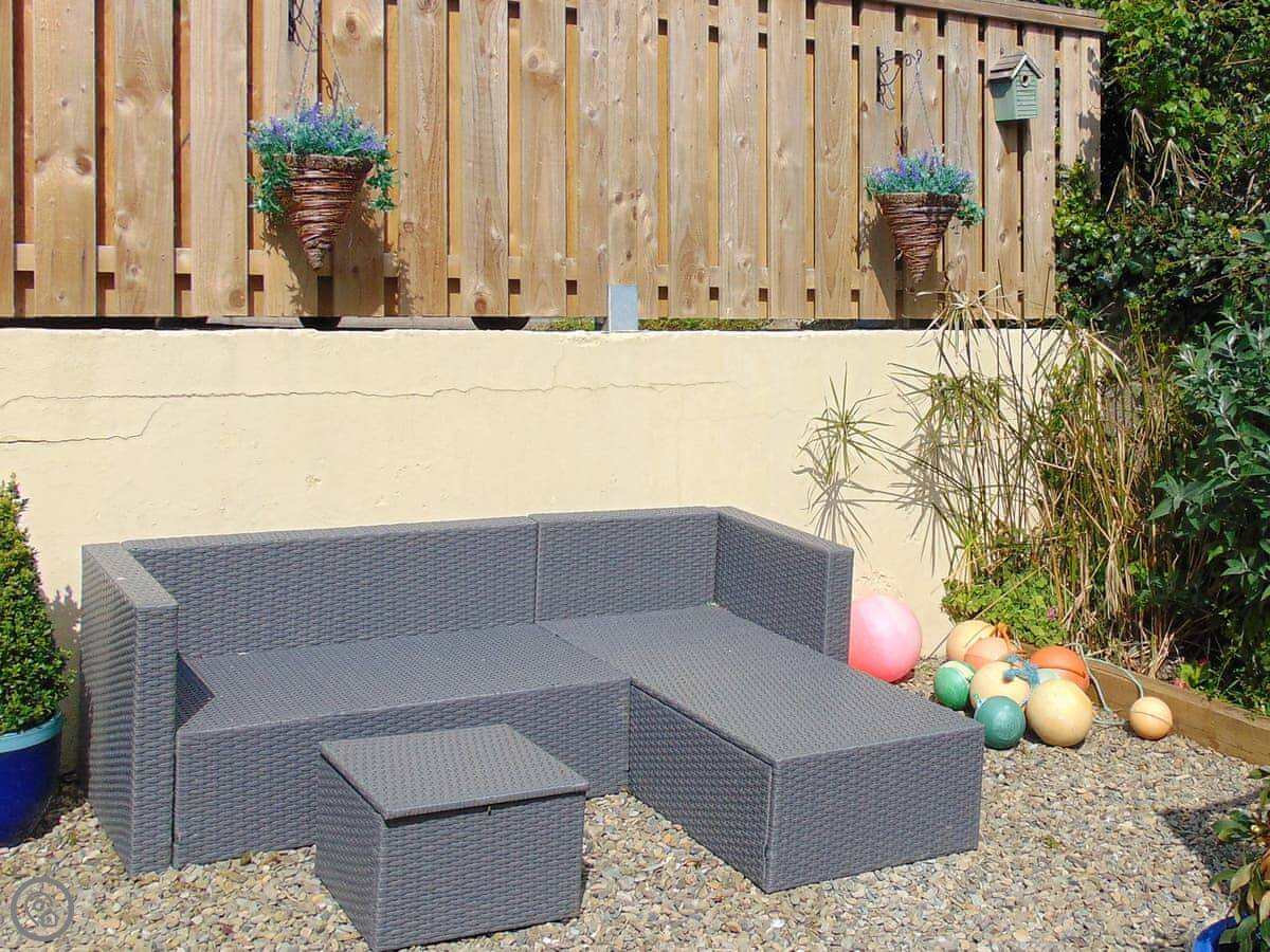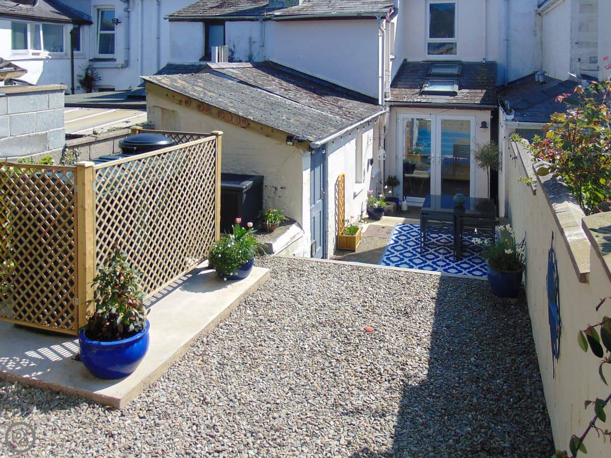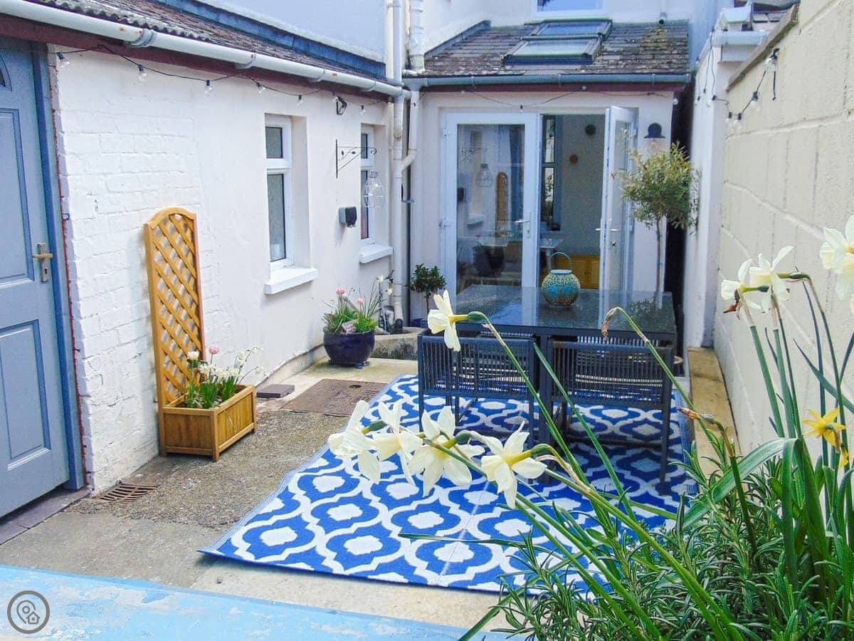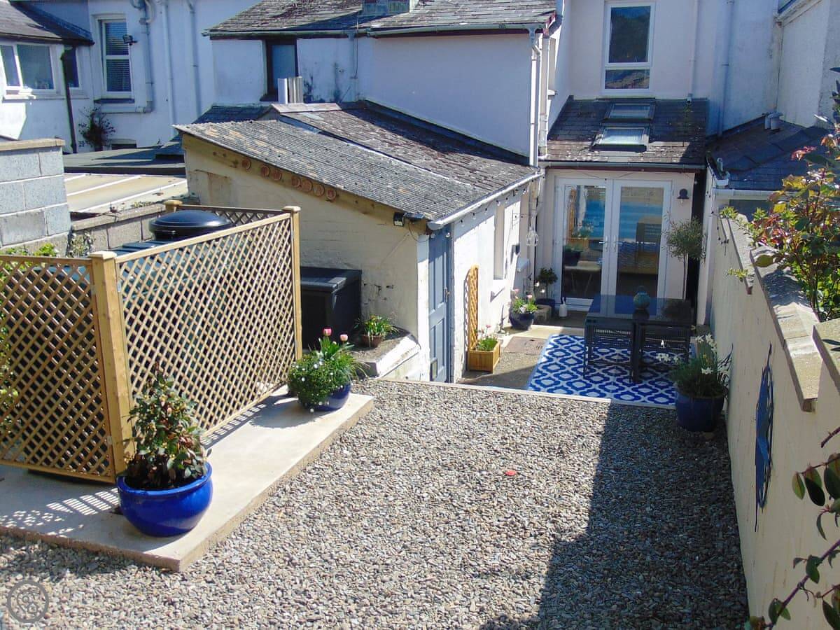 Y Ty Glas is in New Quay, a few minutes walk up from the harbour. It's a terraced cottage, painted the slate grey-blue colour it's named after. You've got your own courtyard garden out the back. It's a suntrap and it's enclosed, which is good if you've got kids or a dog.