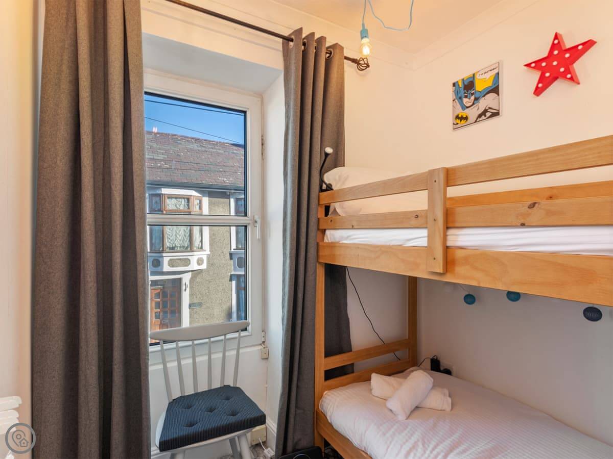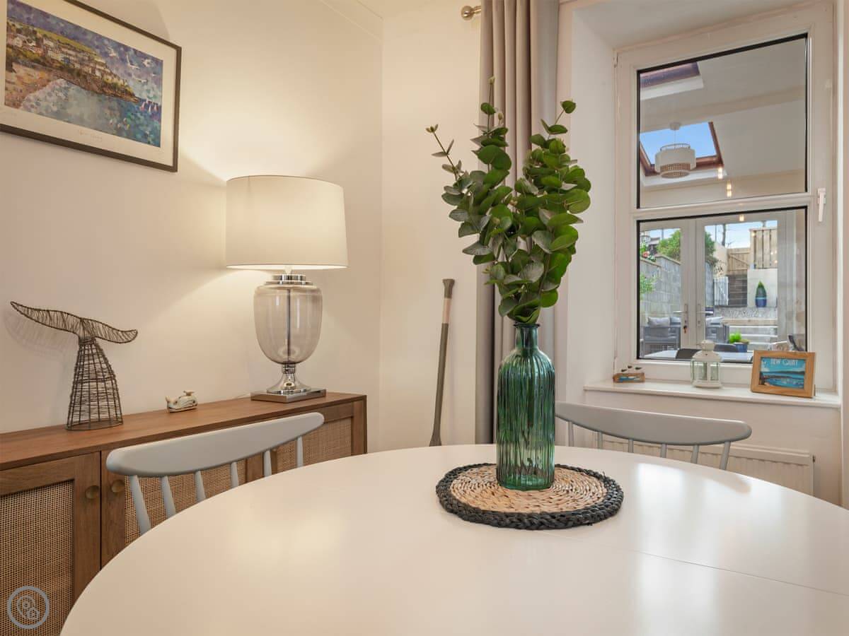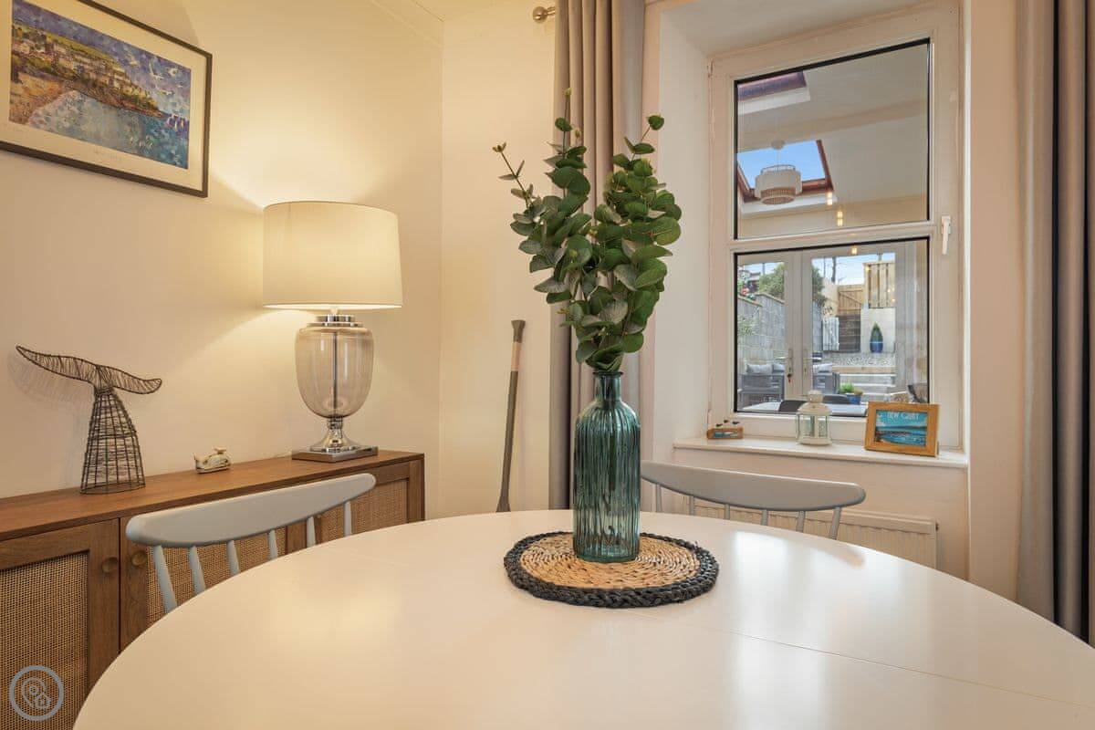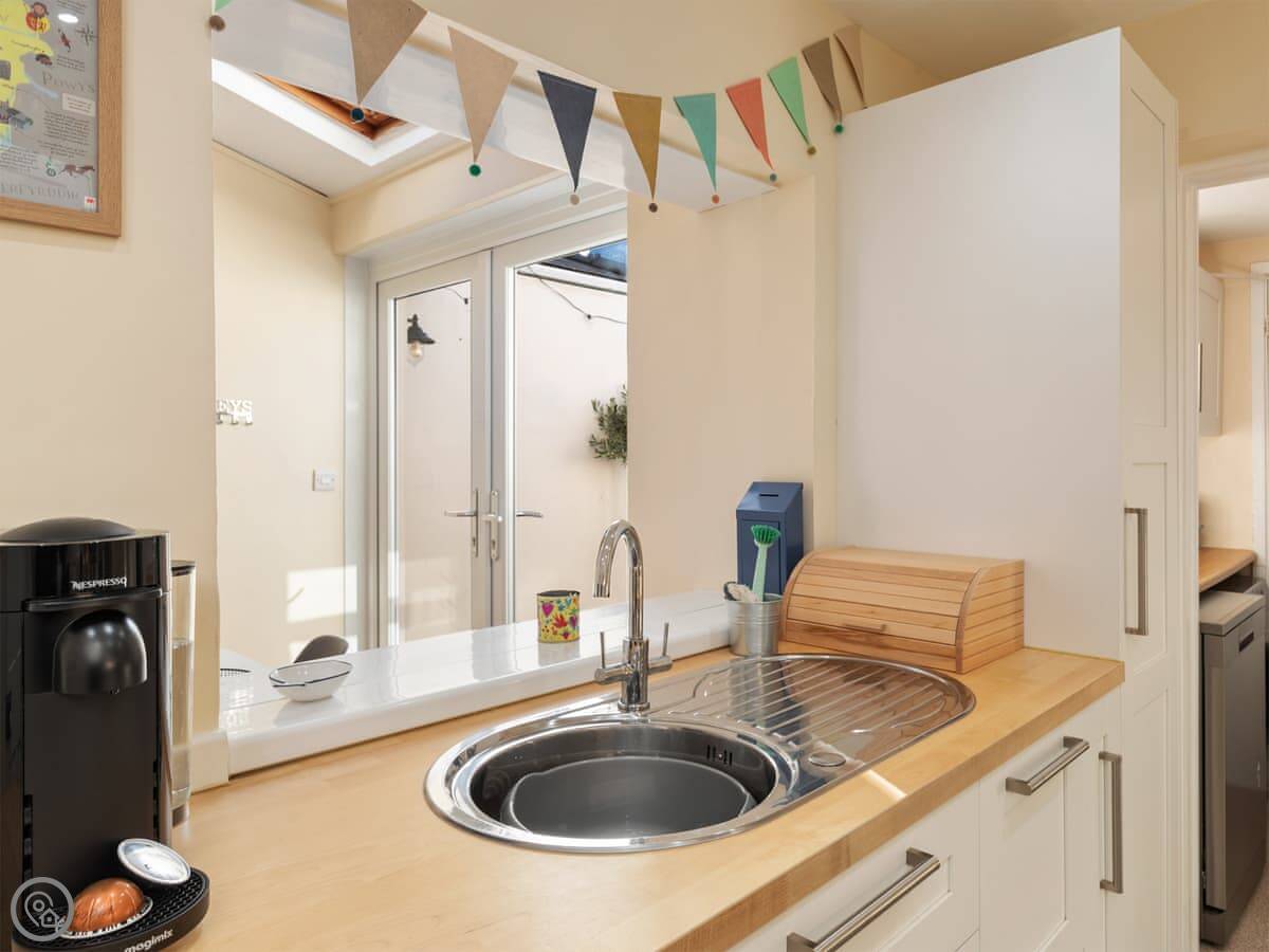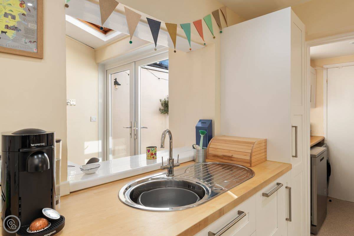 Y Ty Glas is in New Quay, a few minutes walk up from the harbour. It's a terraced cottage, painted the slate grey-blue colour it's named after. You've got your own courtyard garden out the back. It's a suntrap and it's enclosed, which is good if you've got kids or a dog.