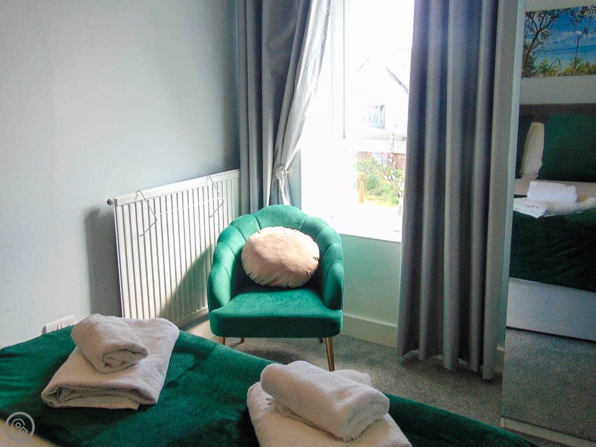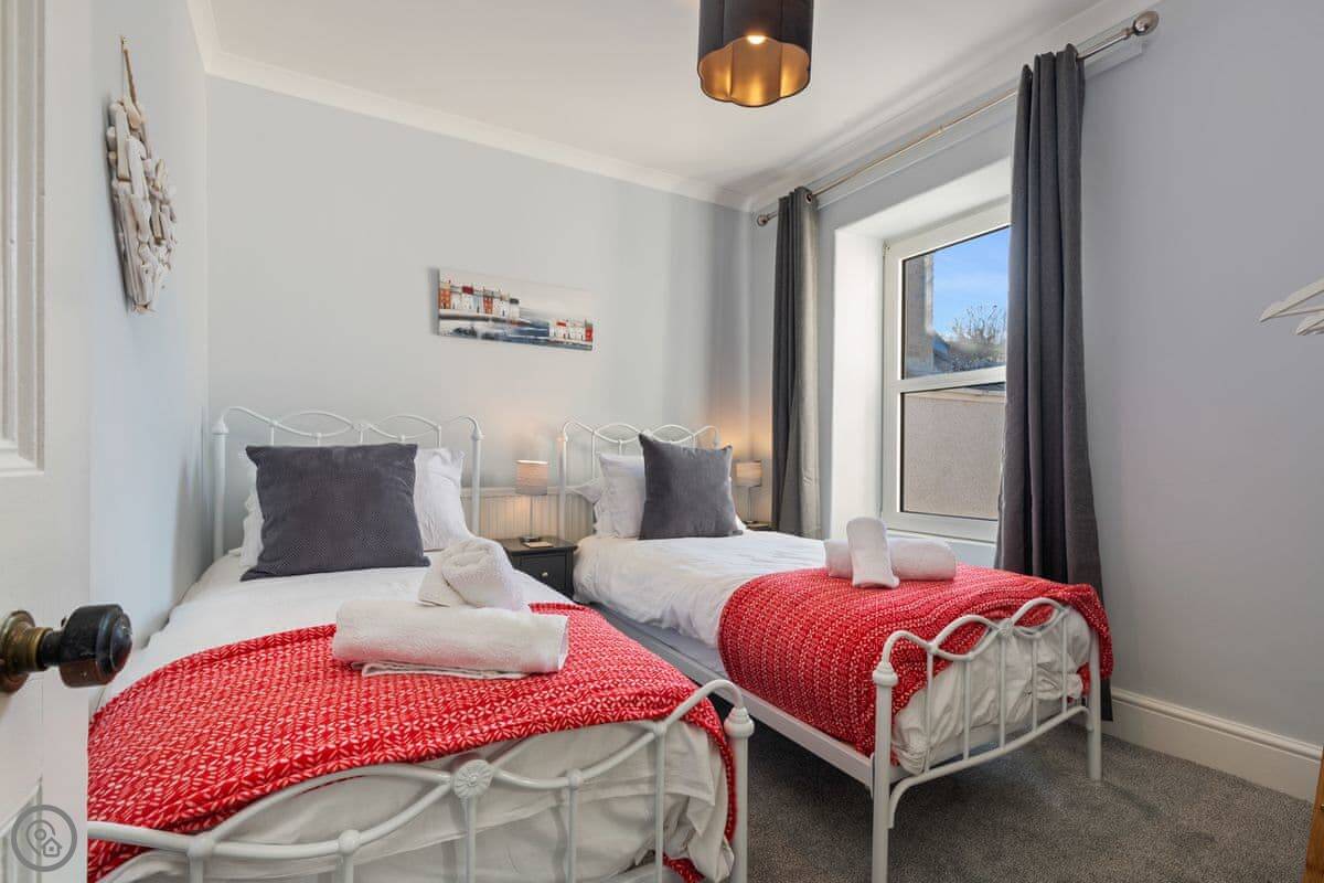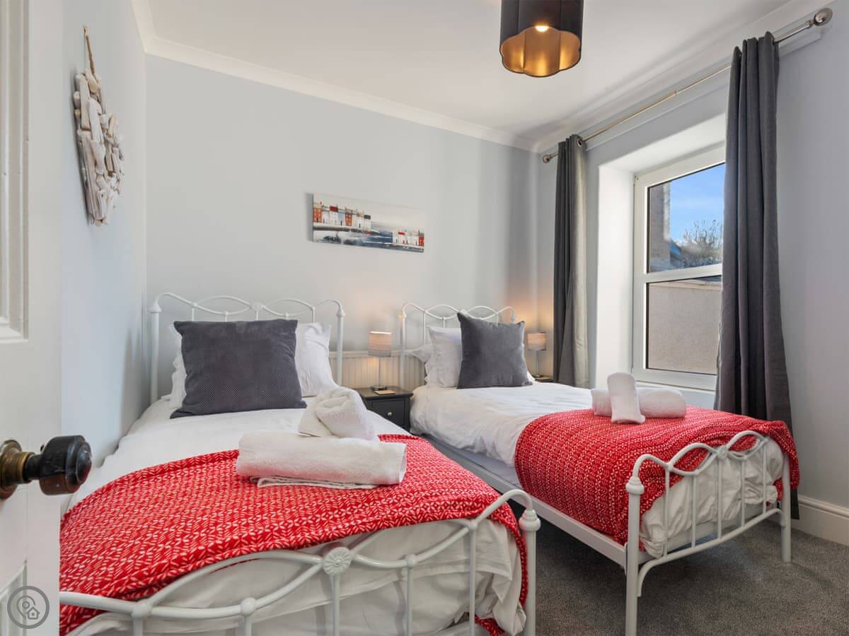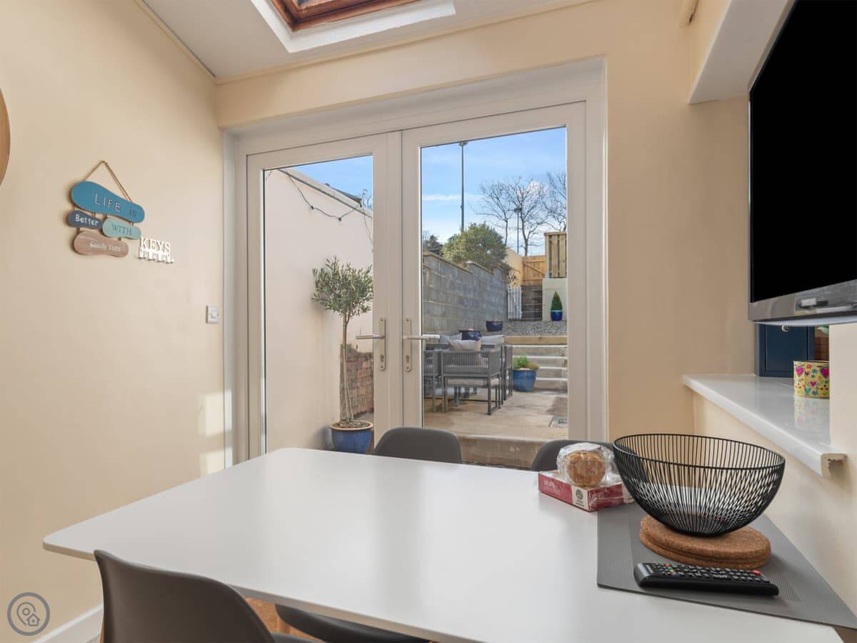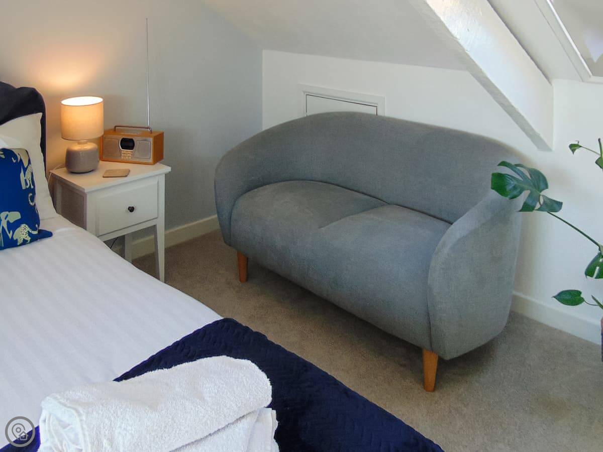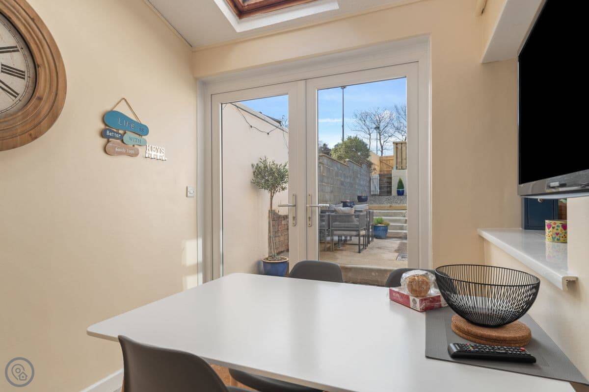 Y Ty Glas is in New Quay, a few minutes walk up from the harbour. It's a terraced cottage, painted the slate grey-blue colour it's named after. You've got your own courtyard garden out the back. It's a suntrap and it's enclosed, which is good if you've got kids or a dog.