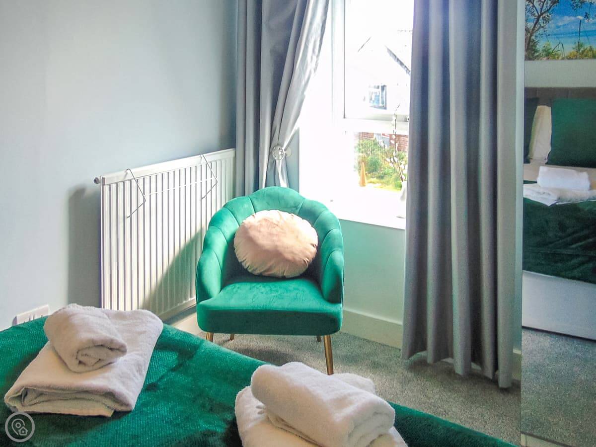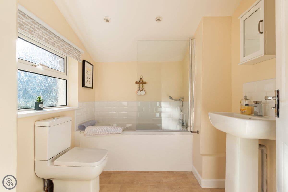 The cottage sleeps six in four bedrooms, with two bathrooms. It's got a 4 Star rating, which means it's well equipped and comfortable. It was done up not too long ago, so it's fresh. There's a woodburner in the living room for chilly evenings. The kitchen opens into a sun room, which is a nice bright spot.