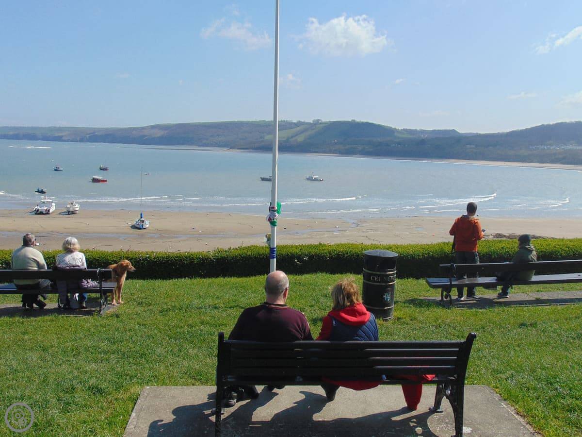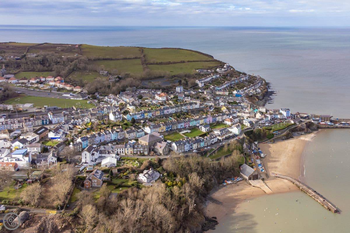 New Quay itself is right there. It's a five minute walk down to the beach and the harbour. There are pubs, restaurants, and shops. It gets busy in summer with boat trips and people. The bus stop is almost opposite the cottage if you fancy going to Aberystwyth or Cardigan without driving.
