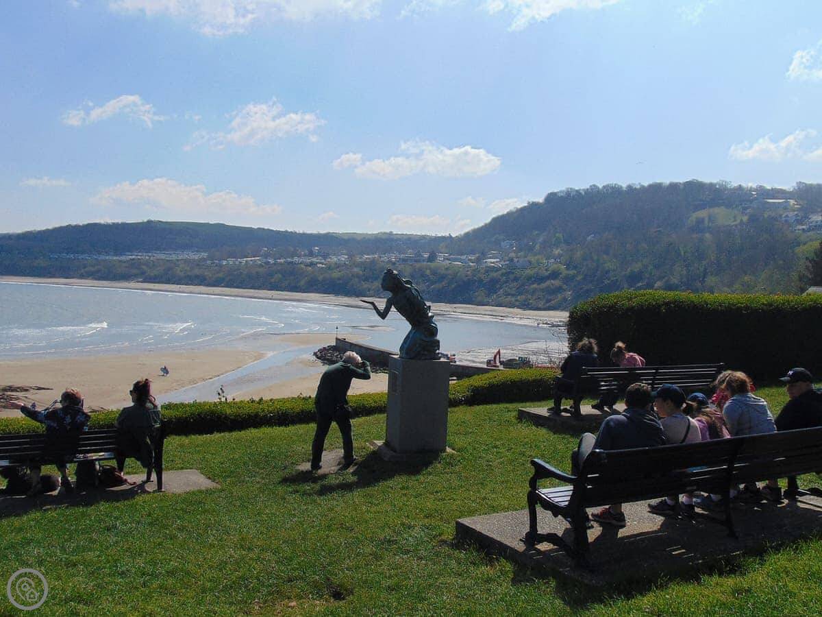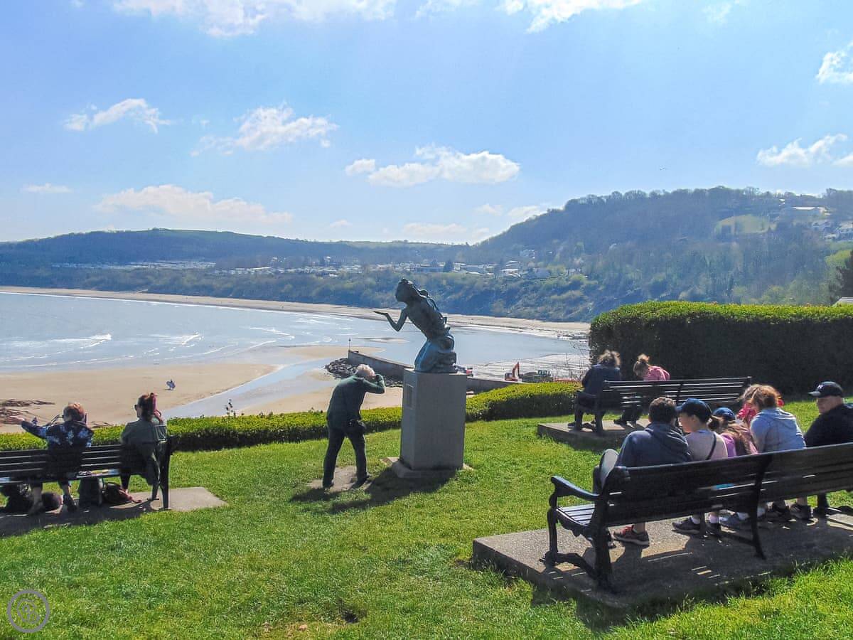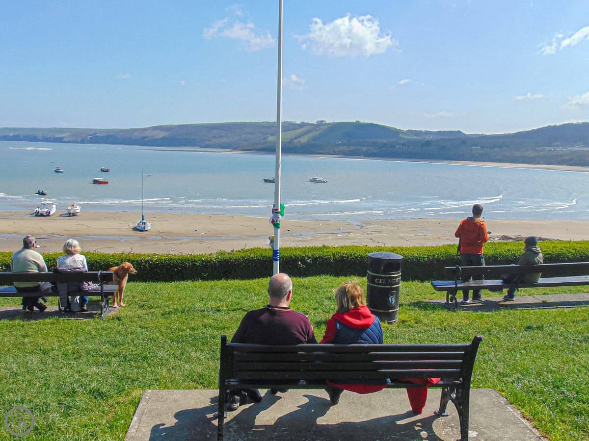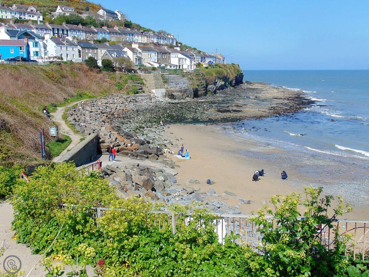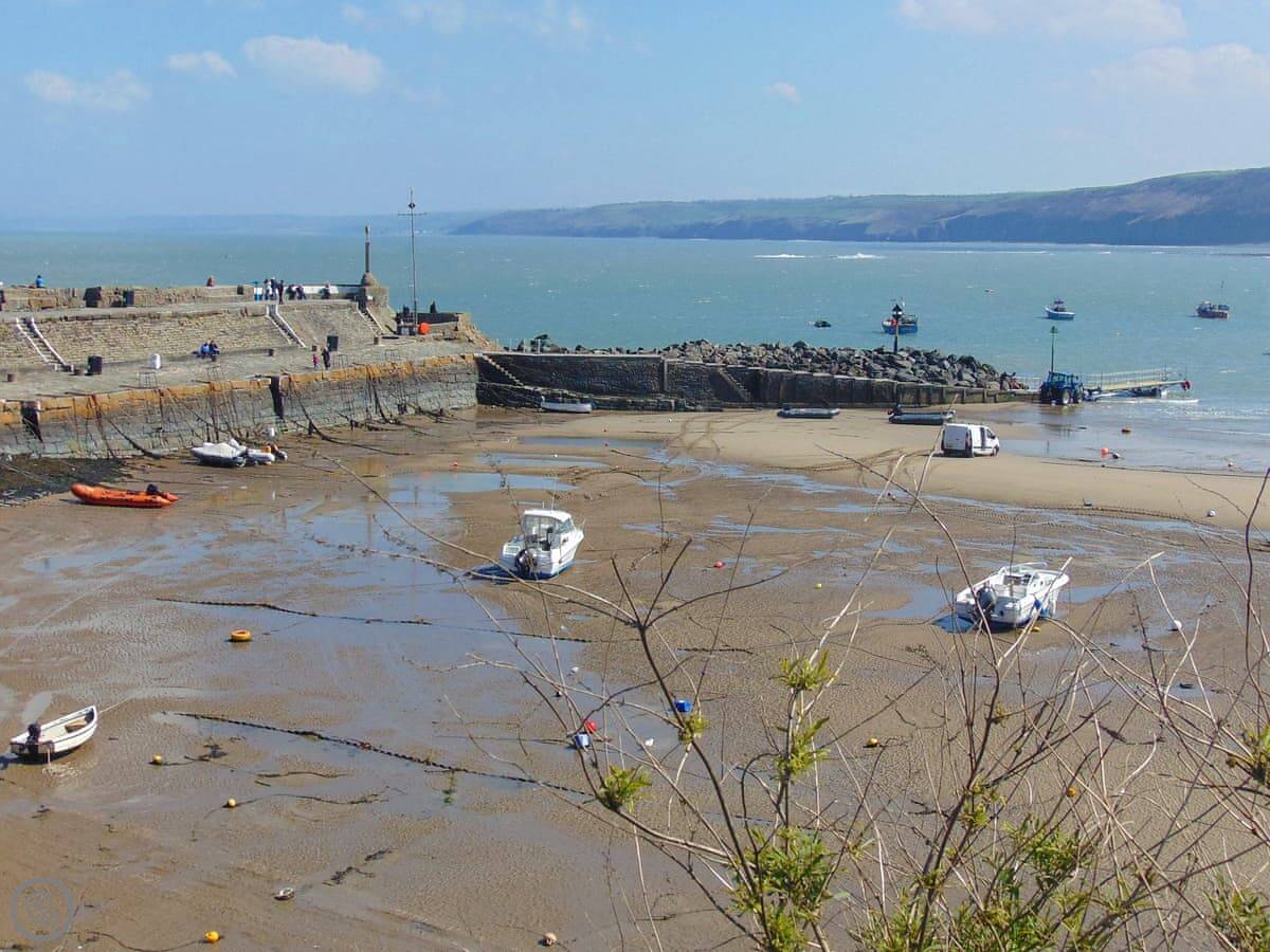 You can walk onto the Wales Coast Path from here. People go on dolphin watching trips from the harbour. The beaches are good, and safe for swimming.