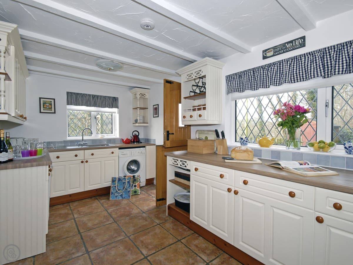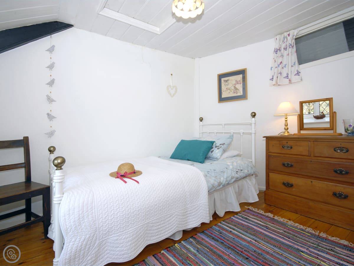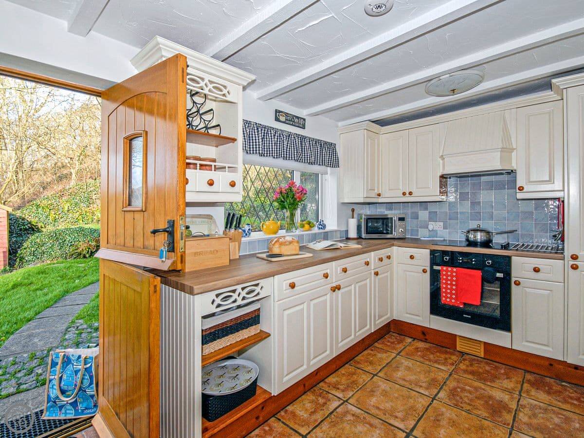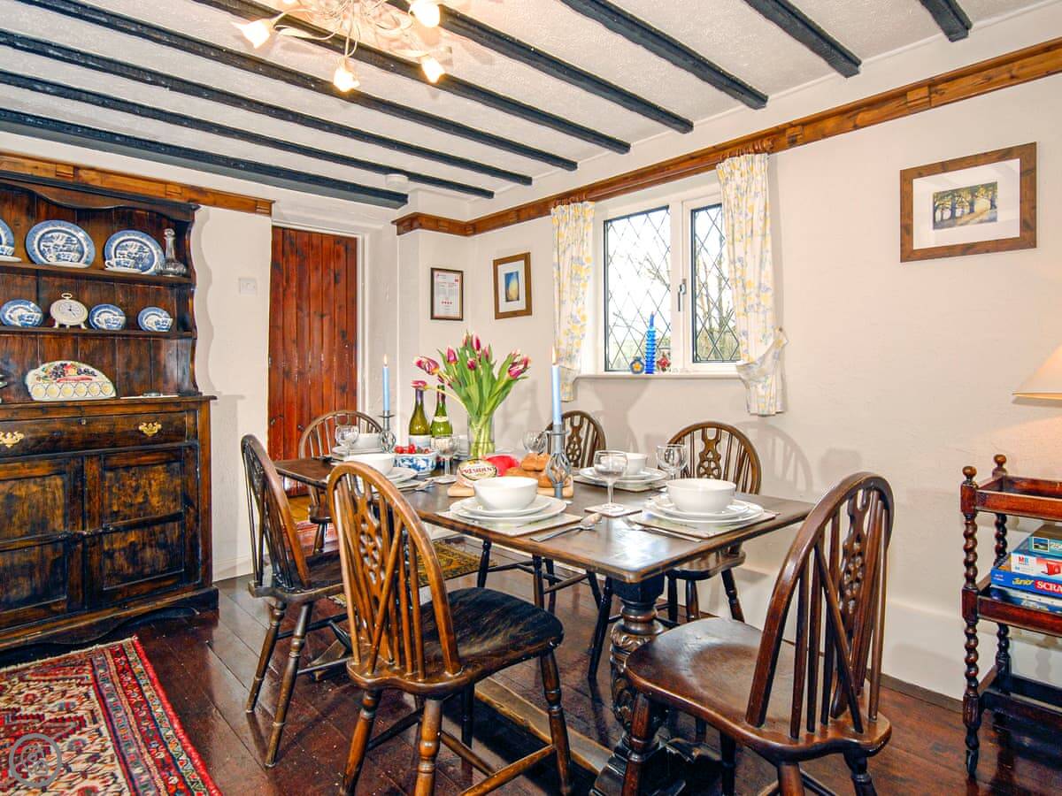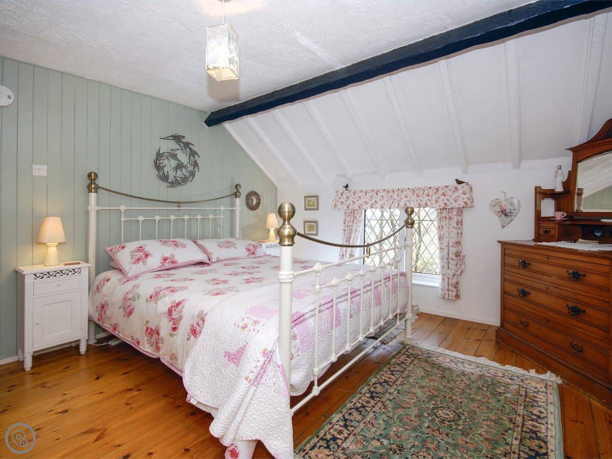 Full of character with beamed ceilings, stripped wooden flooring and is skilfully appointed and colour coordinated throughout. Relax in the comfortable sitting room with upholstered sofa and chairs beside a wood burning stove set into a pretty white washed stone hearth. Enjoy mealtimes in the charming dining room with dark oak refectory table, wheel back chairs and a traditional dresser filled with pretty China. The cosy bedrooms of this secluded holiday cottage have sloped ceilings, exposed beams, leaded windows and some period furniture including an original brass bedstead.
