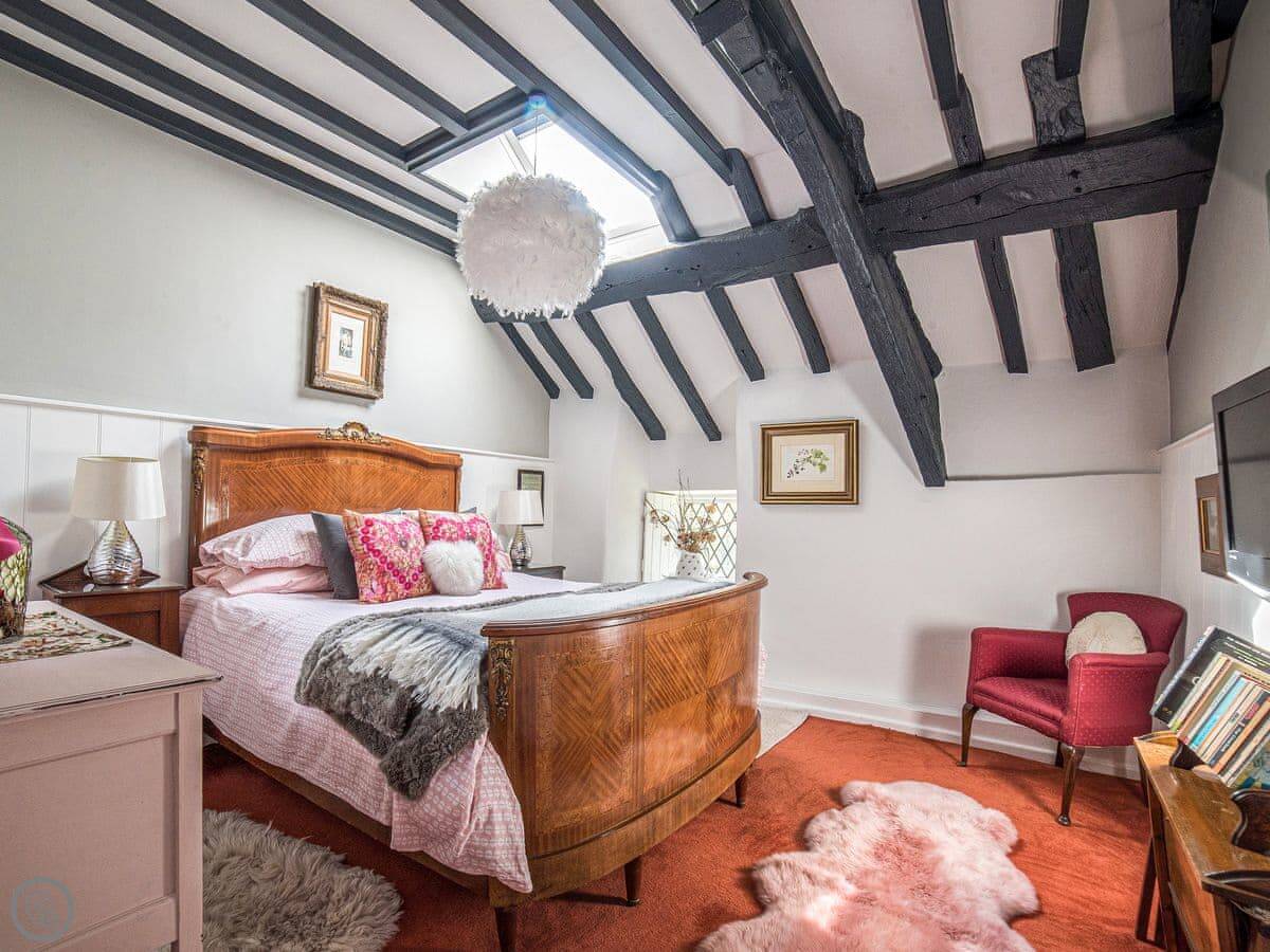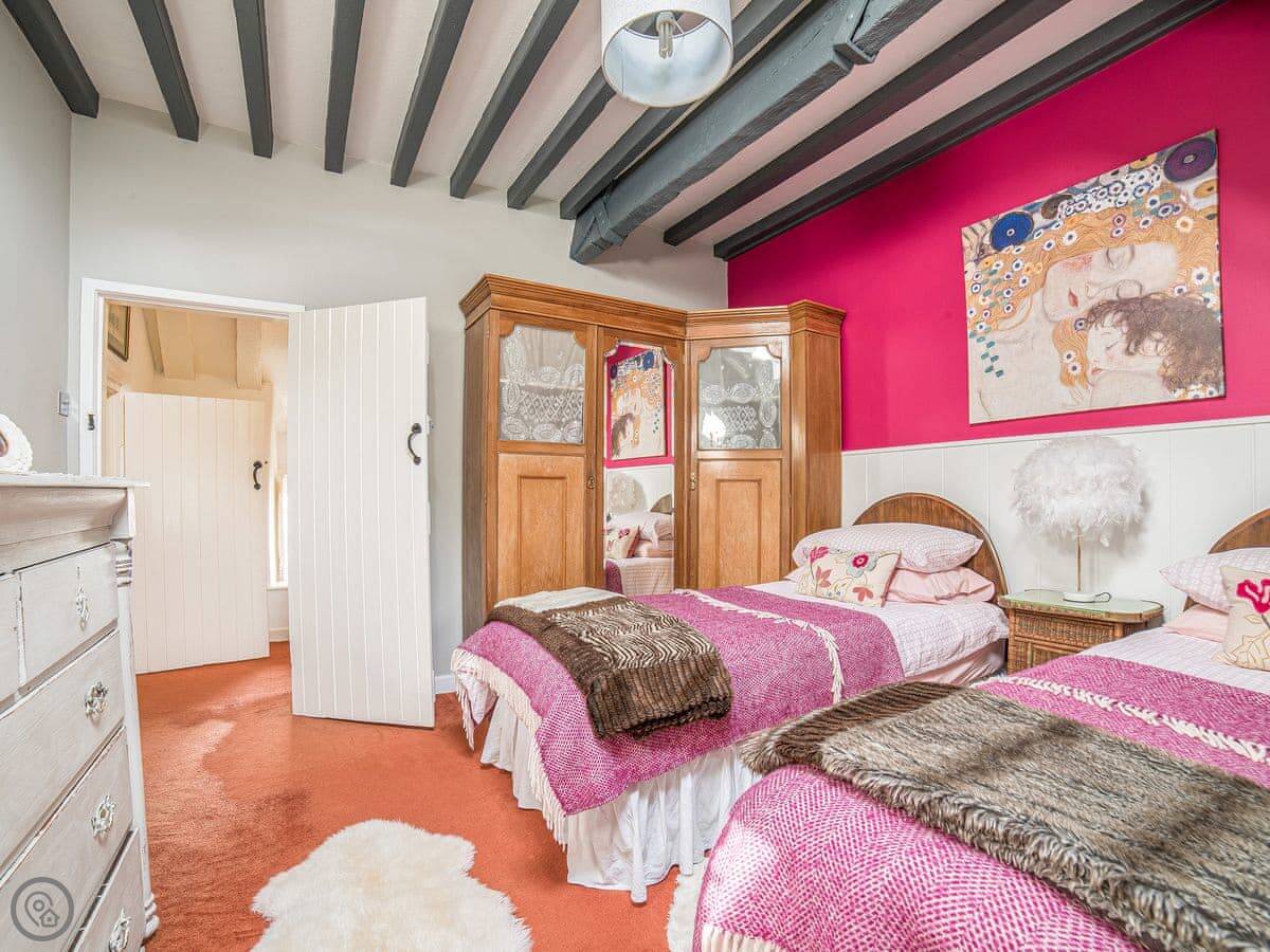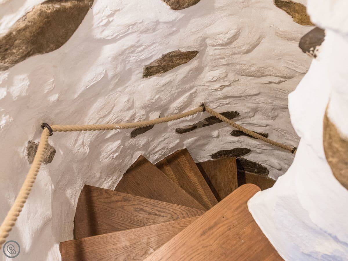 It sleeps four. Two bedrooms upstairs and one bathroom. It's got a 3 Star rating, which means it's clean and comfortable. It's not a show home. The stairs are the original ones. They're steep and a bit narrow. You need to be careful on them.