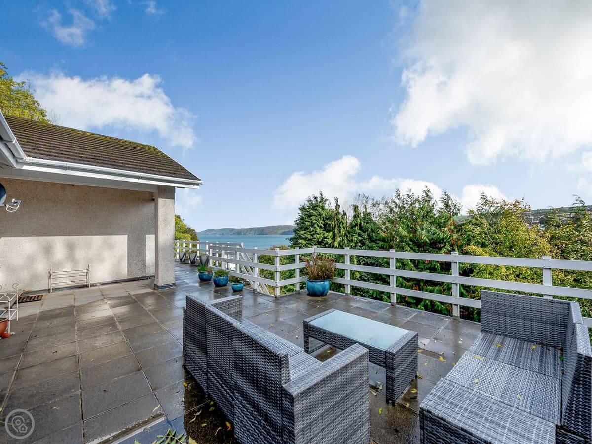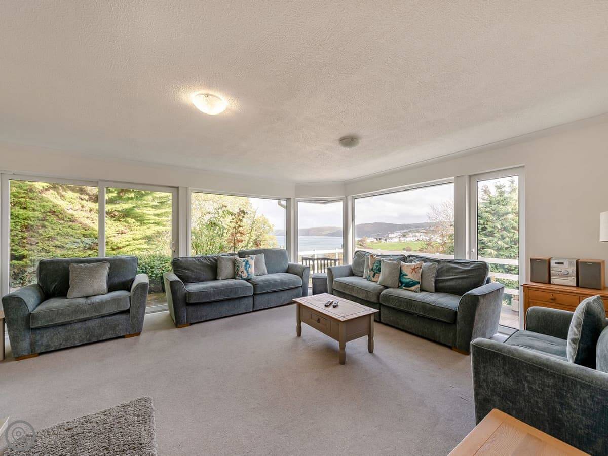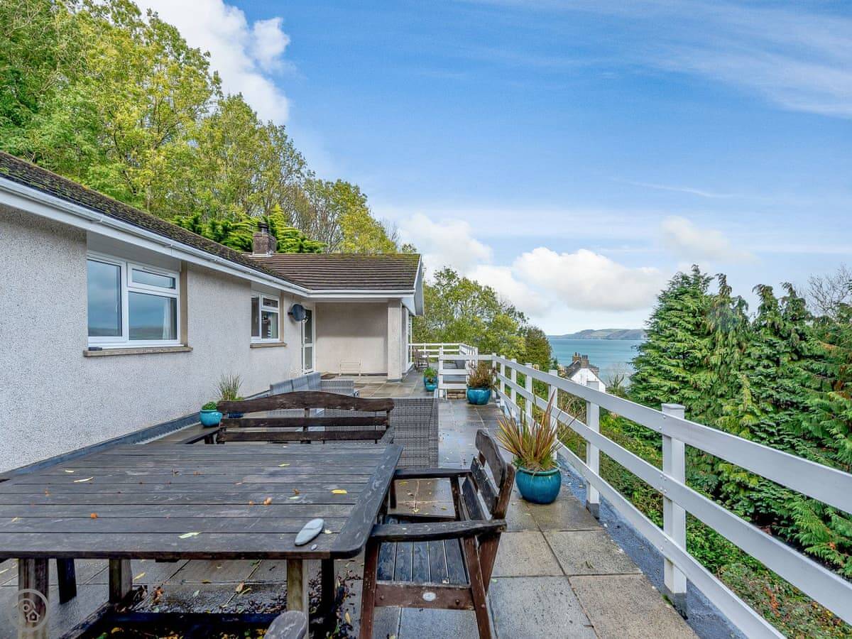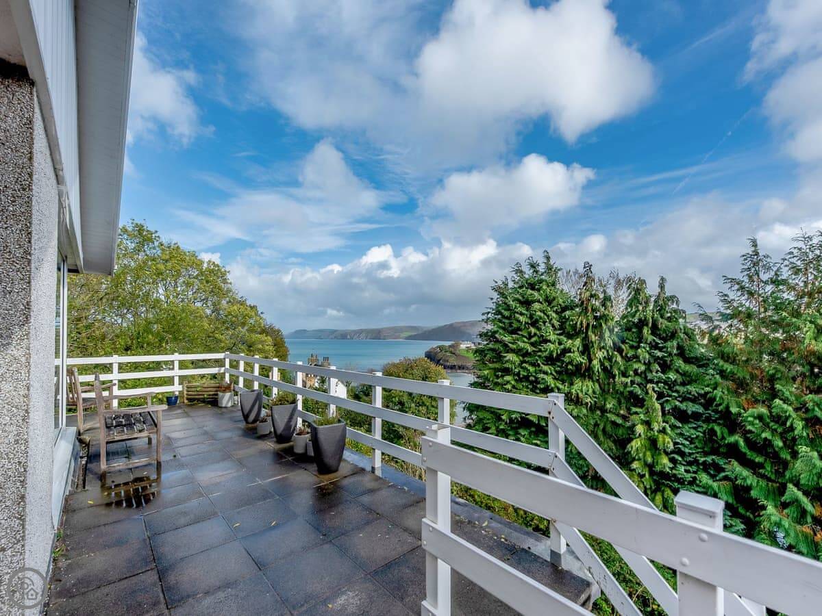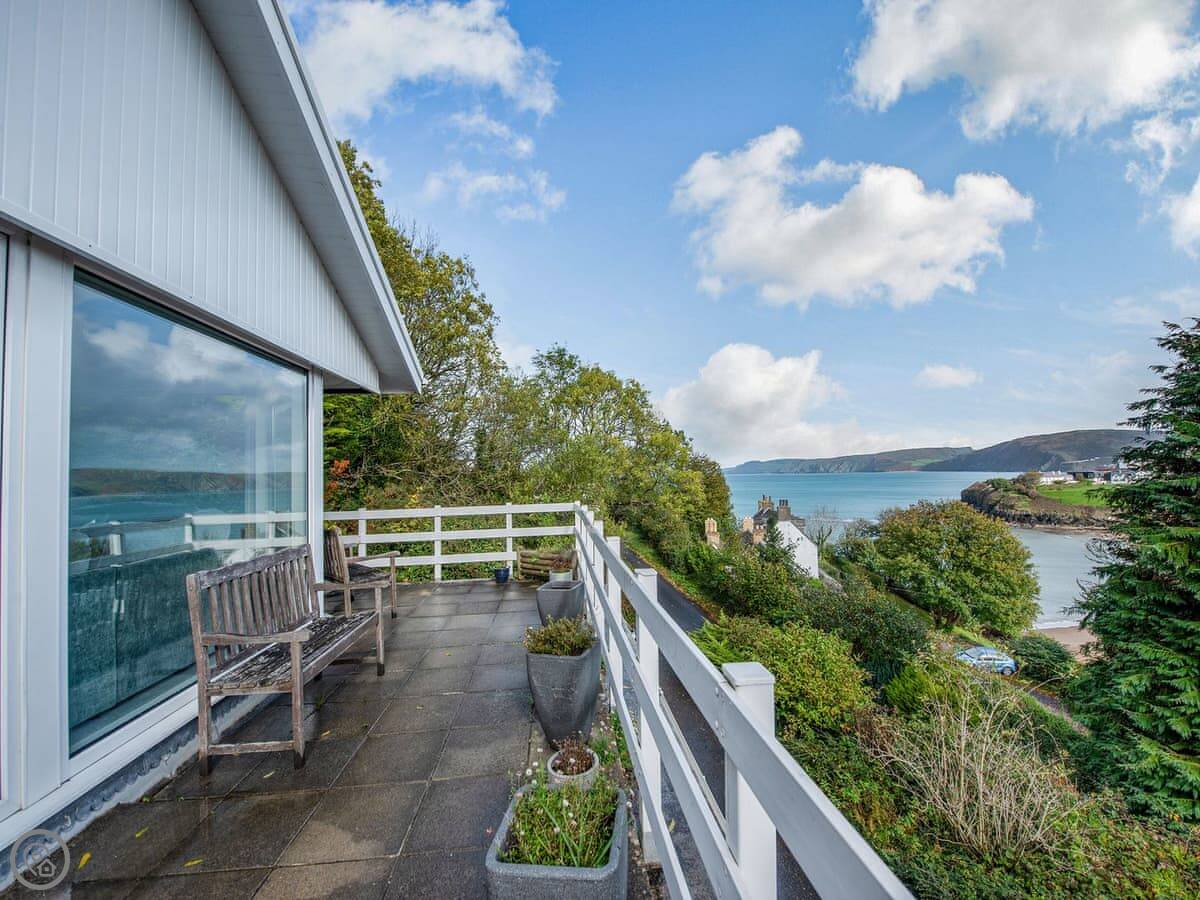 The main thing is the view. You can see five beaches along Cardigan Bay from the front. Aberporth, Tresaith, Penbryn, Cwm Tydu and Llangrannog. The living room and the open plan kitchen-diner face that way. There's a big terrace balcony outside to sit on.