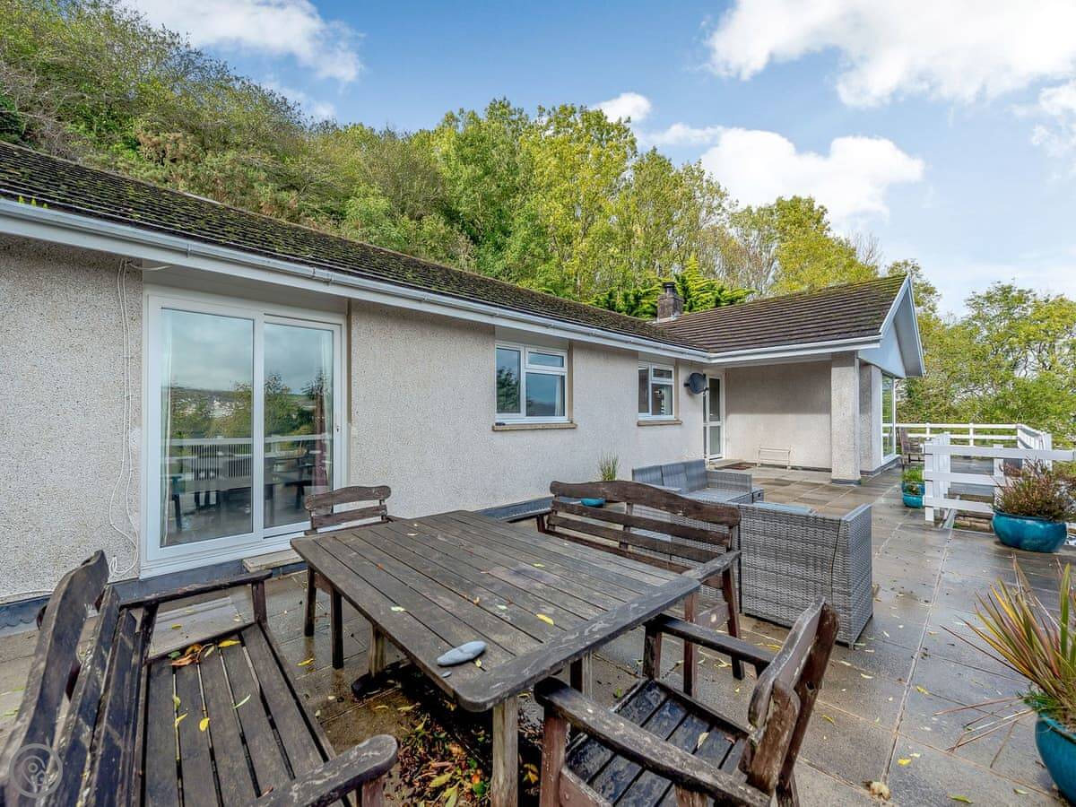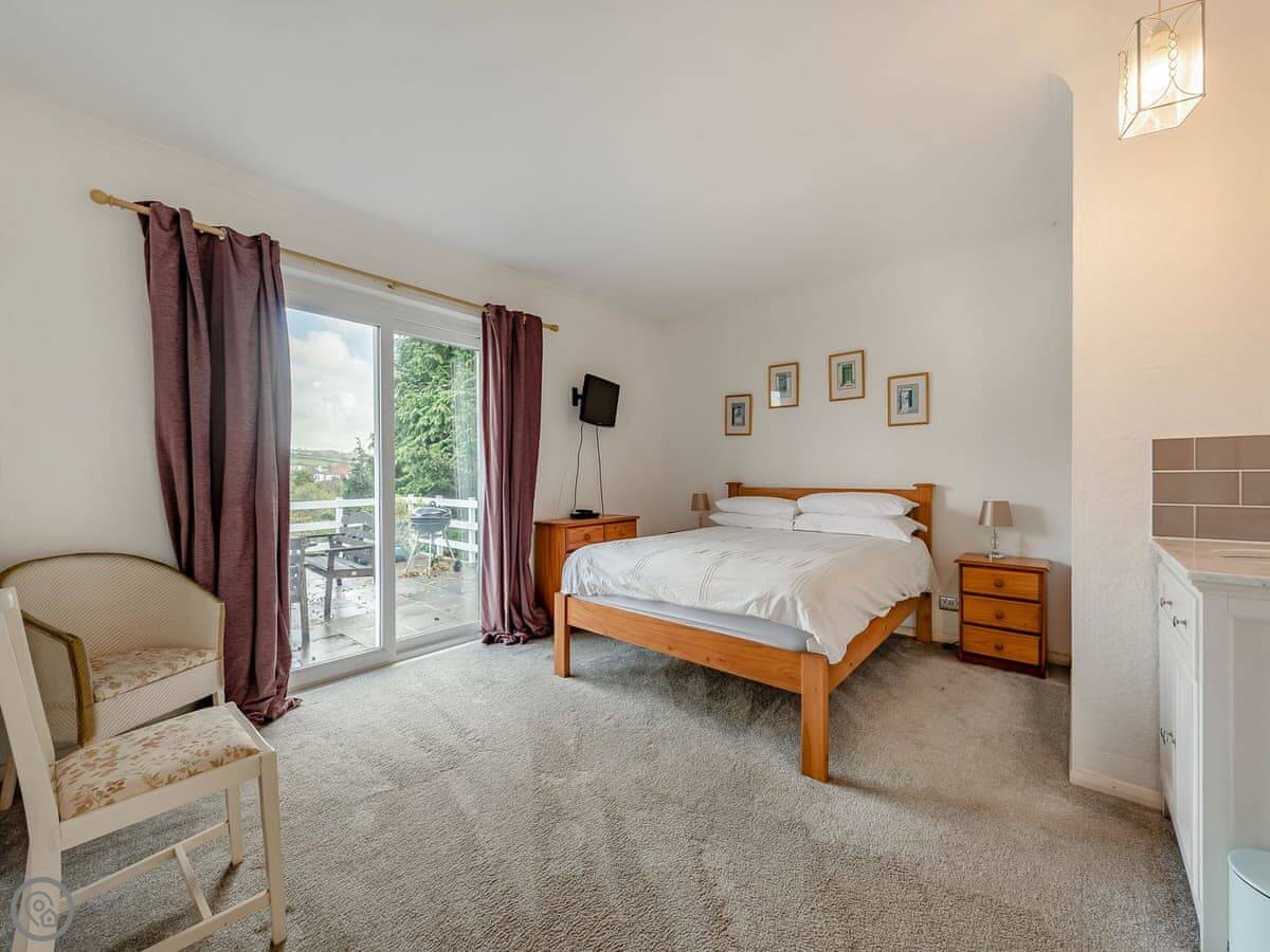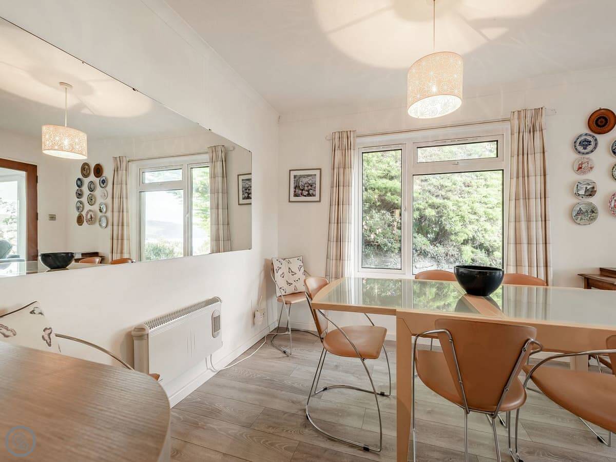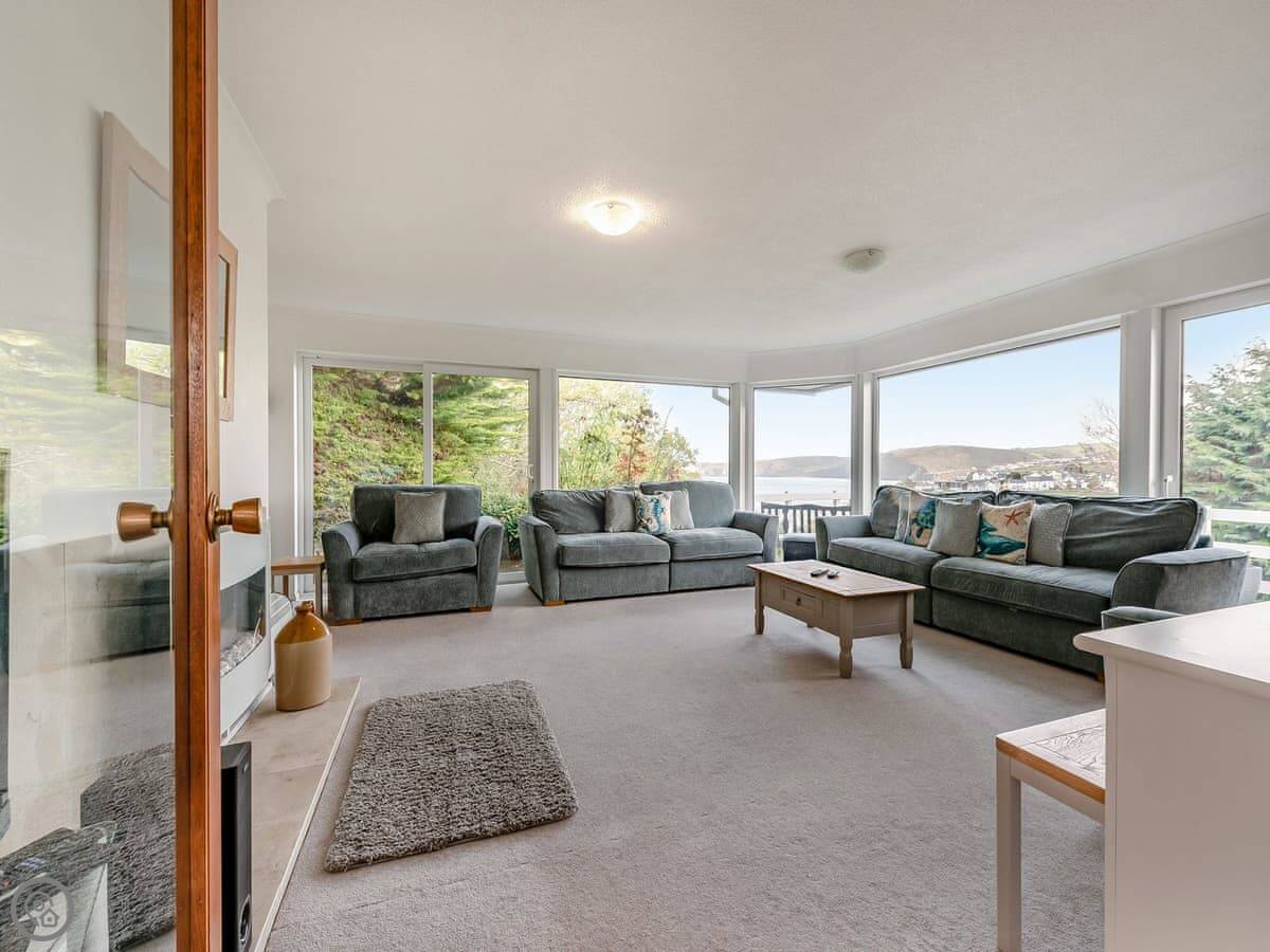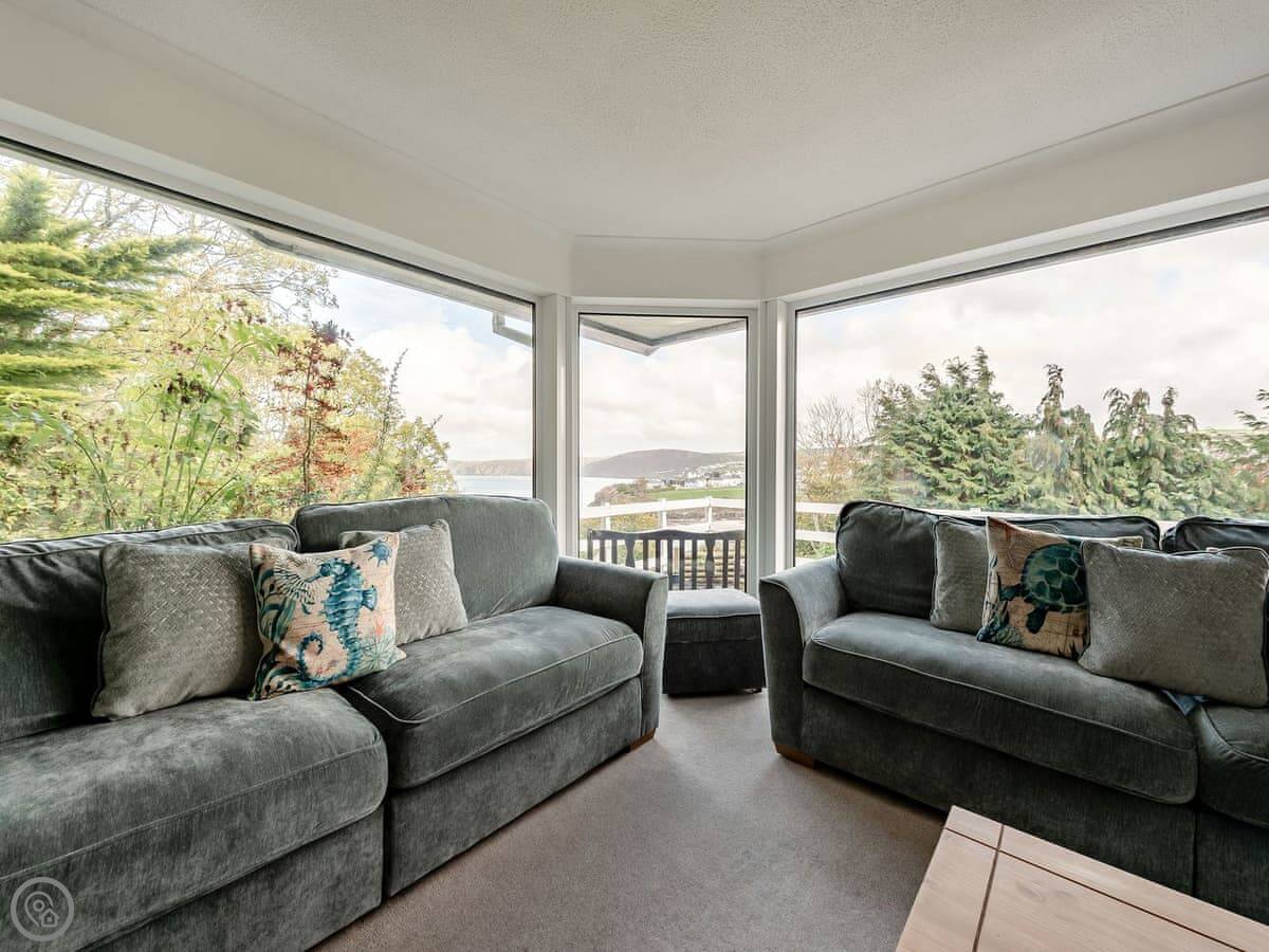 The main thing is the view. You can see five beaches along Cardigan Bay from the front. Aberporth, Tresaith, Penbryn, Cwm Tydu and Llangrannog. The living room and the open plan kitchen-diner face that way. There's a big terrace balcony outside to sit on.