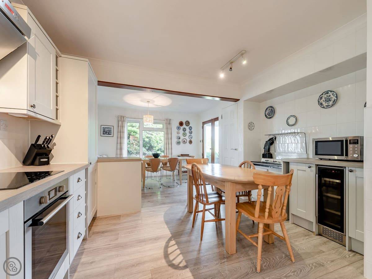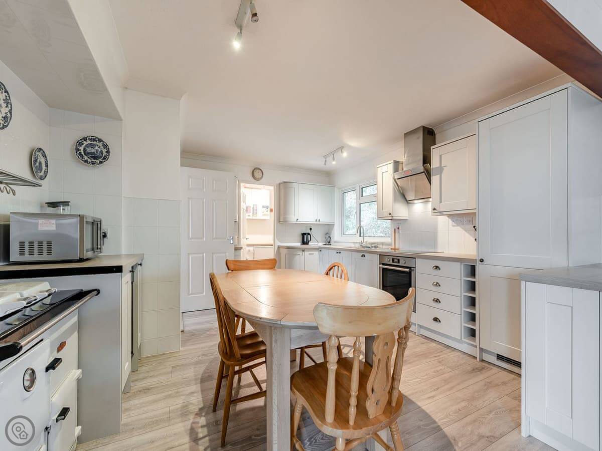 Facilities wise: it's got WiFi, a TV, a washing machine, and a dishwasher. Bedding is included. There's a cot and a highchair. You can bring up to two dogs. There's parking on the drive, and a BBQ.